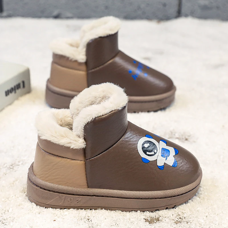 2023 Children Warm Short Boots Winter Boys Plus Thicken Cotton Shoes Girls Waterproof Snow Boots Baby Infant Baby Walking Shoes
