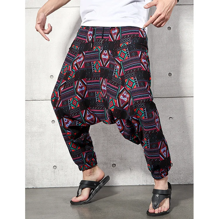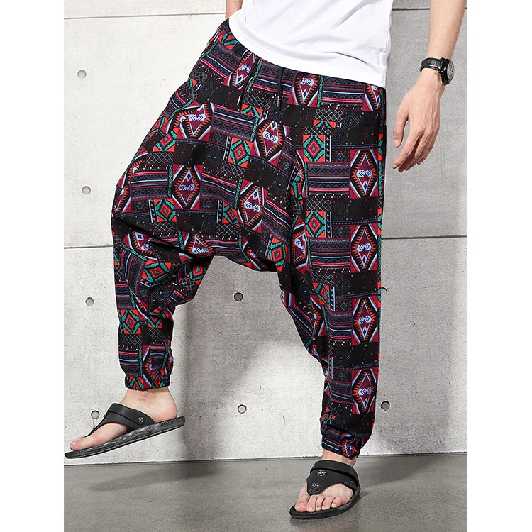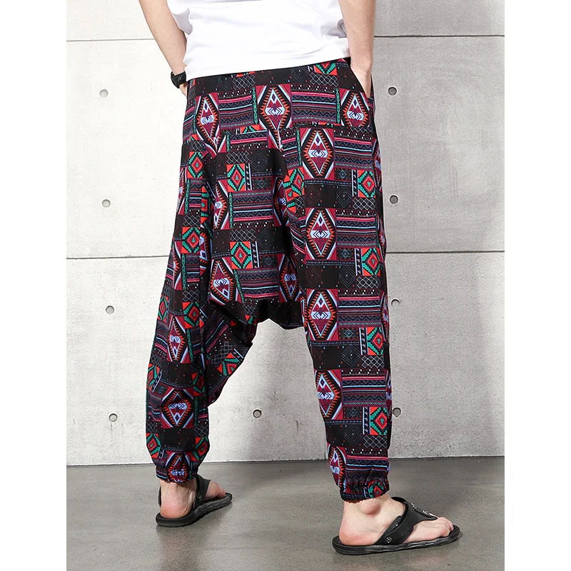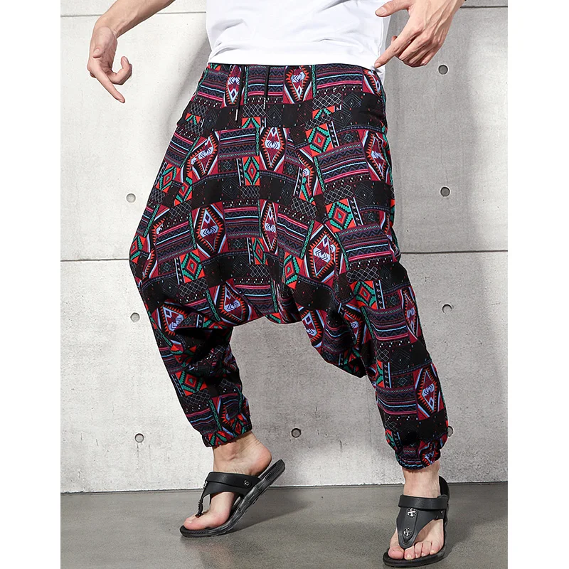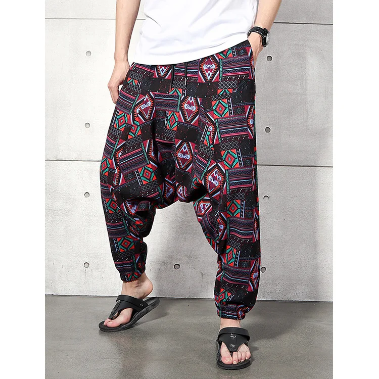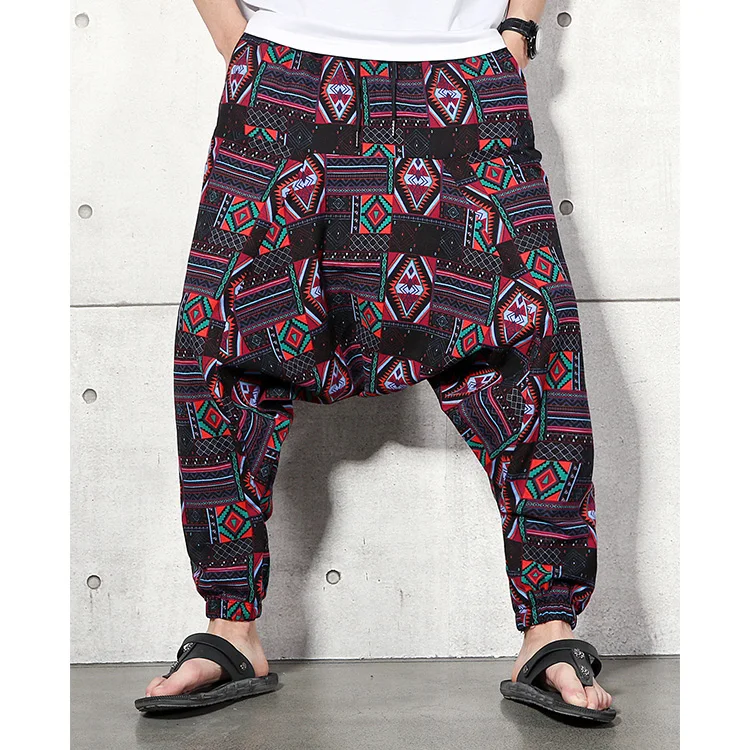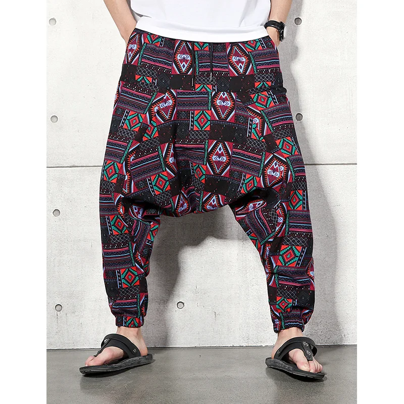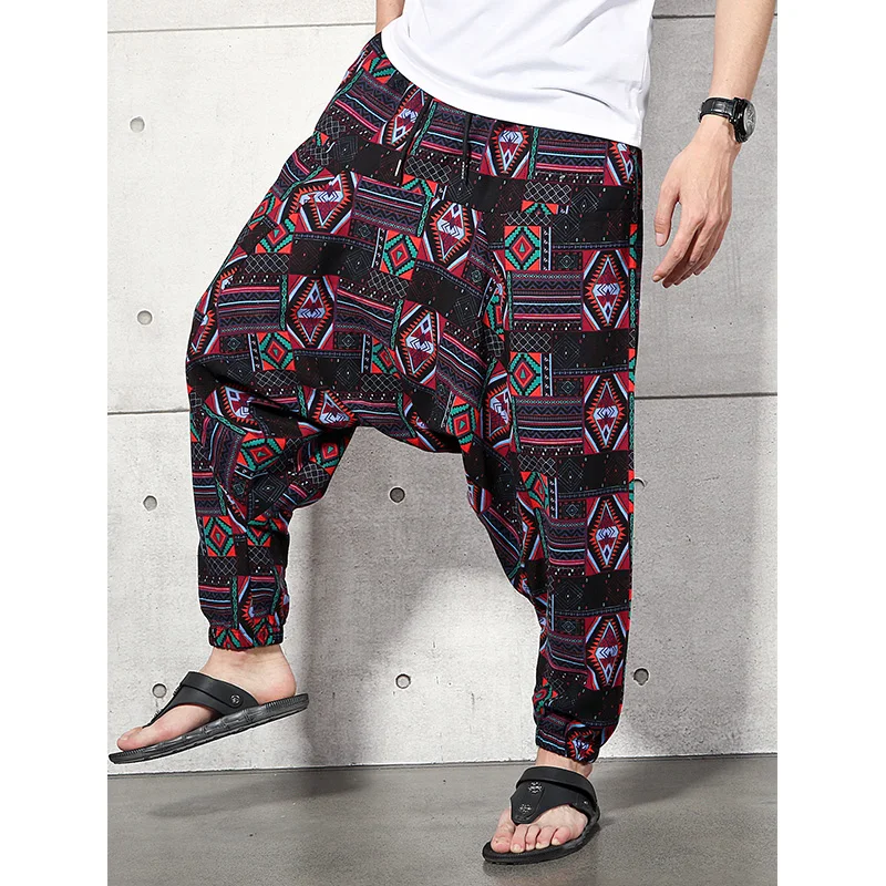 2023 Men Baggy Harem Pants Men Hiphop Joggers Causal Loose Trousers Aladdin Crotch Wide Leg Cotton Linen Pants Pantalones Hombre