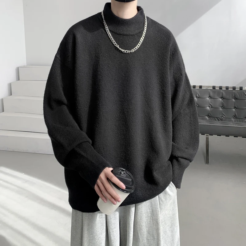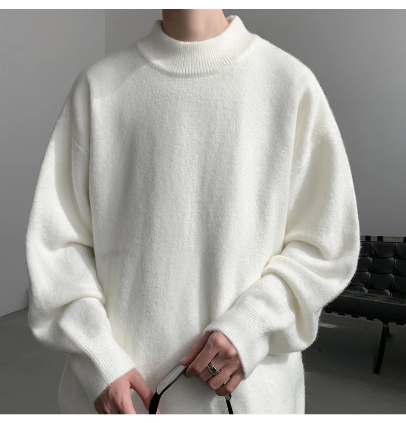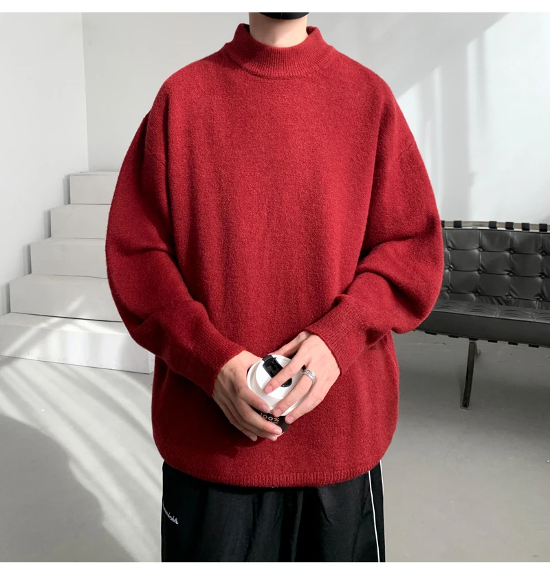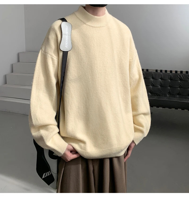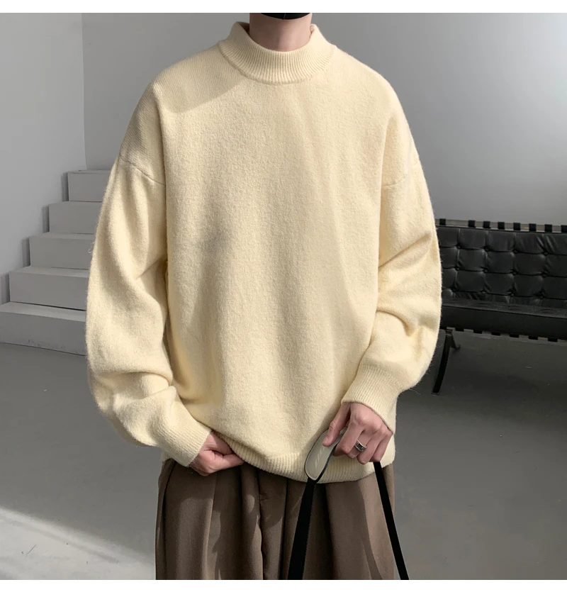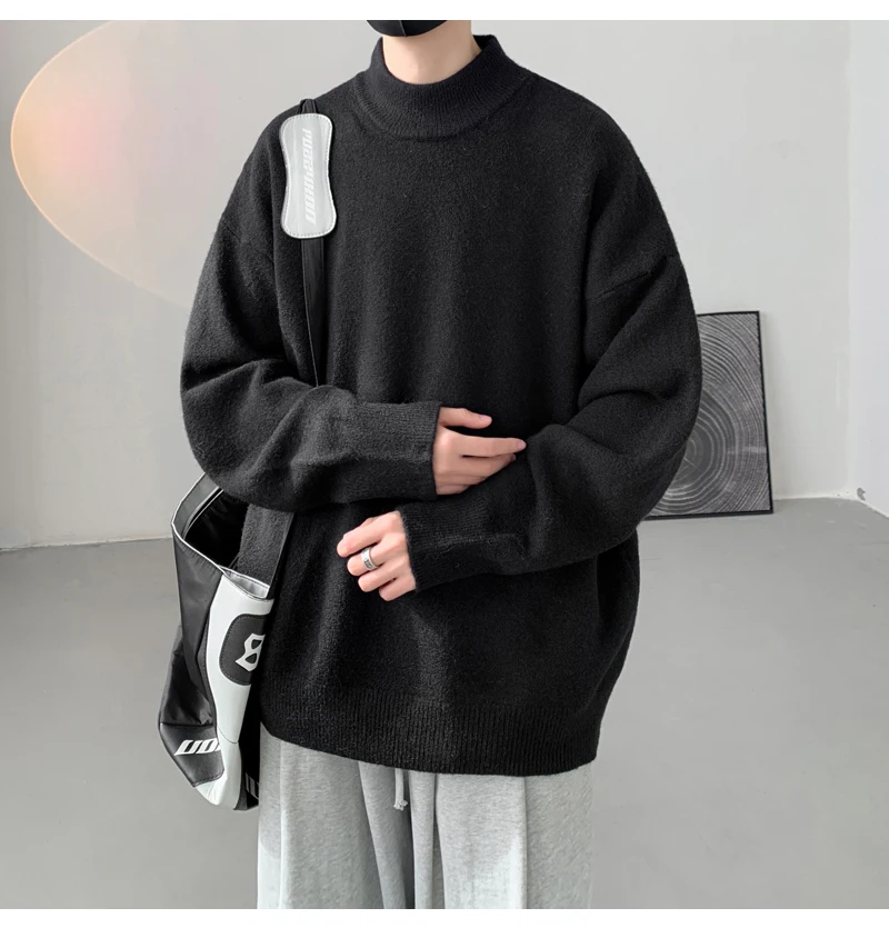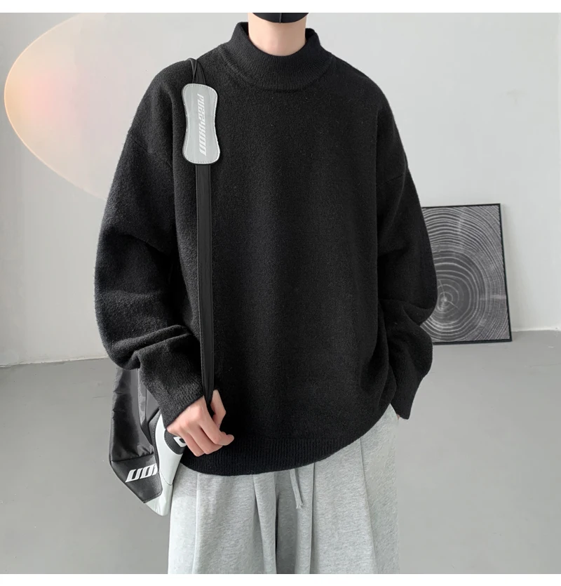 2023 Men Mock Neck Sweater Solid Color Pullovers Autumn Men Knitted Warm Sweater Male Wear Fashion Undershirt Men Clothing