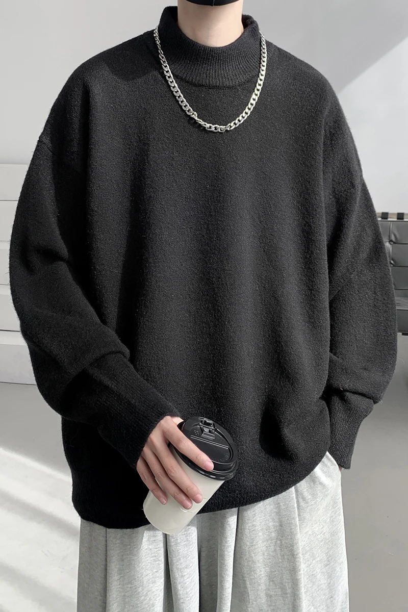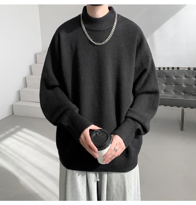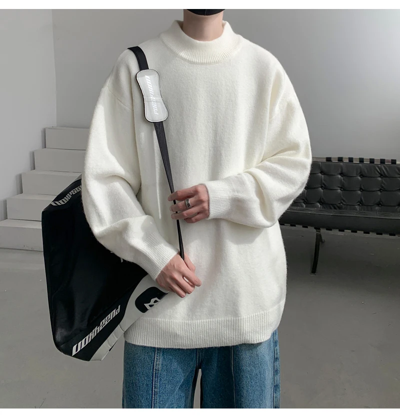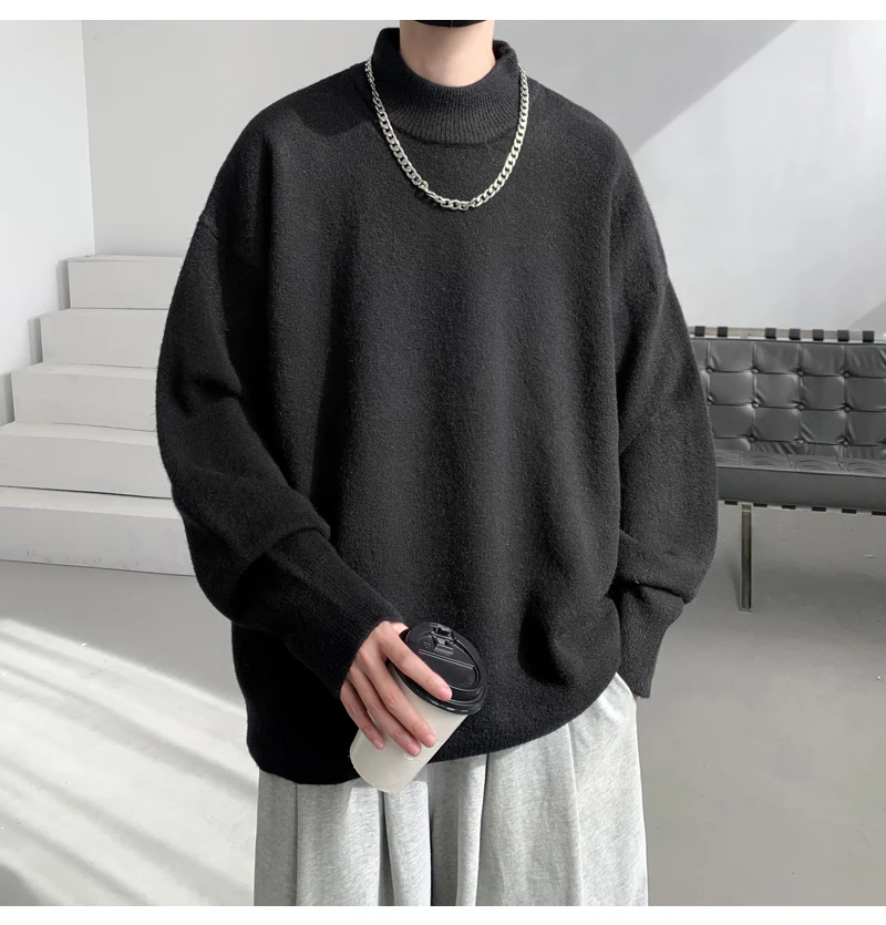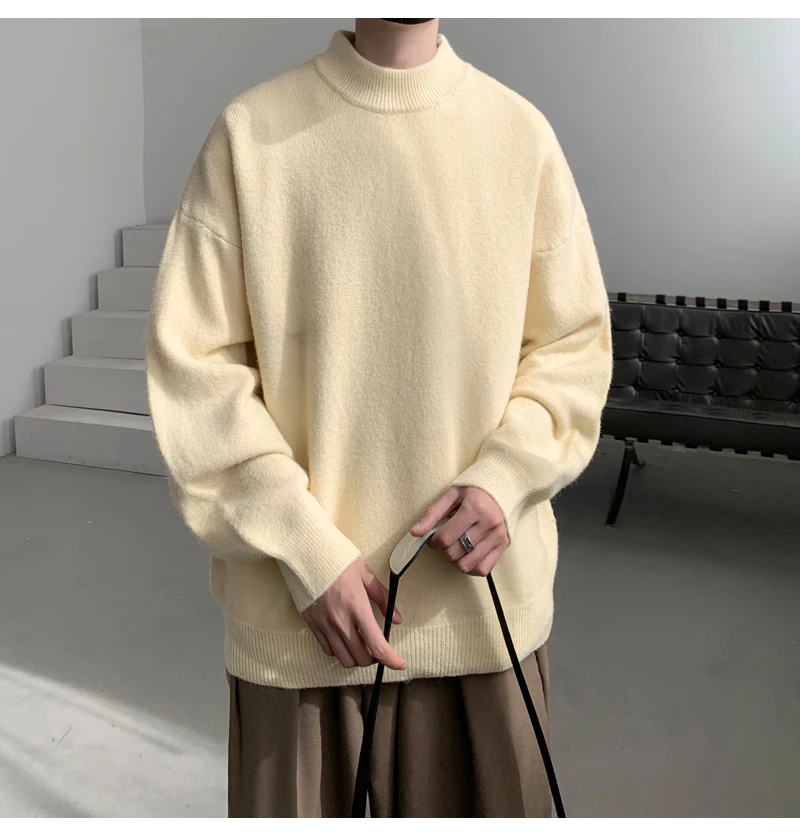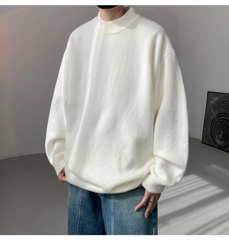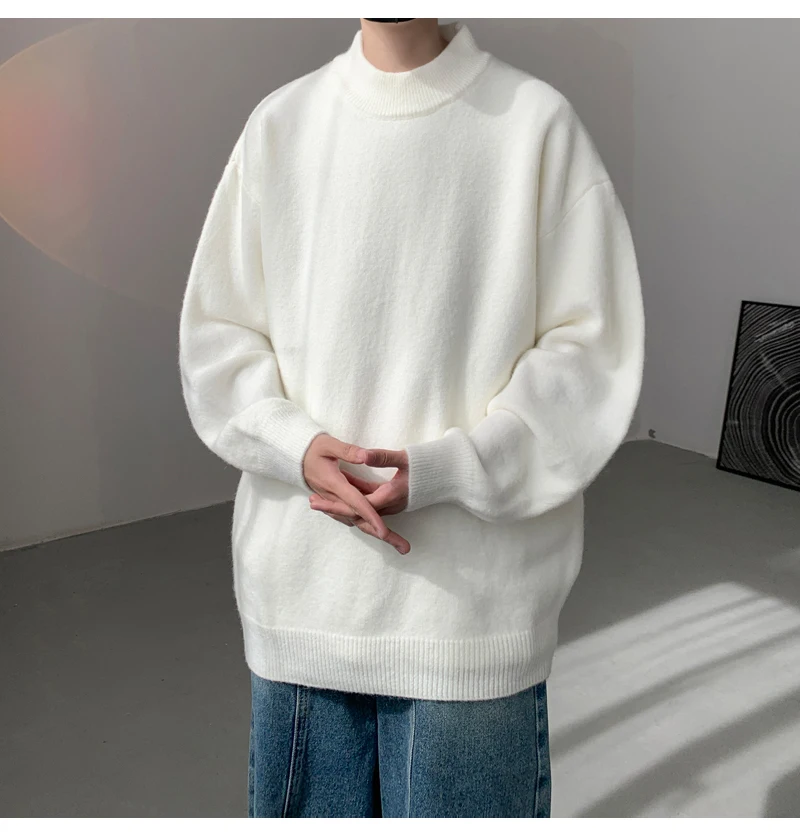 2023 Men Mock Neck Sweater Solid Color Pullovers Autumn Men Knitted Warm Sweater Male Wear Fashion Undershirt Men Clothing