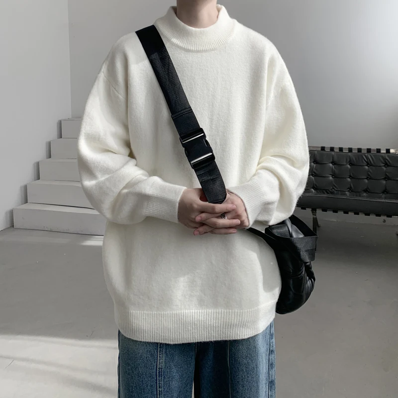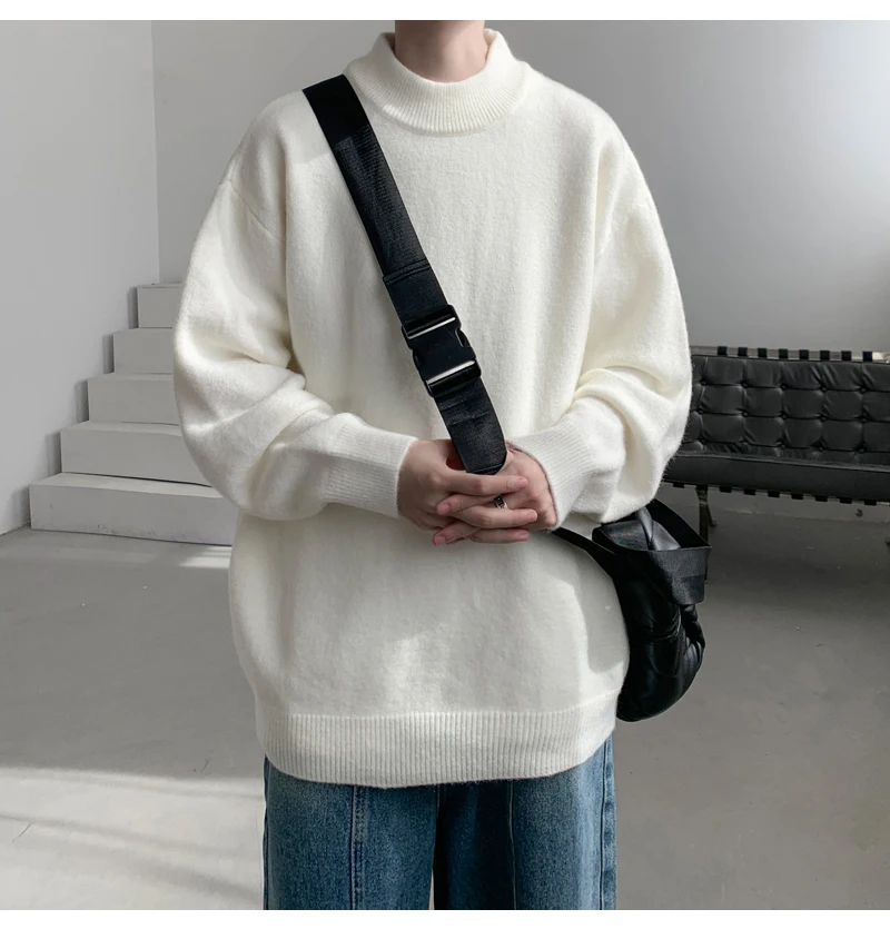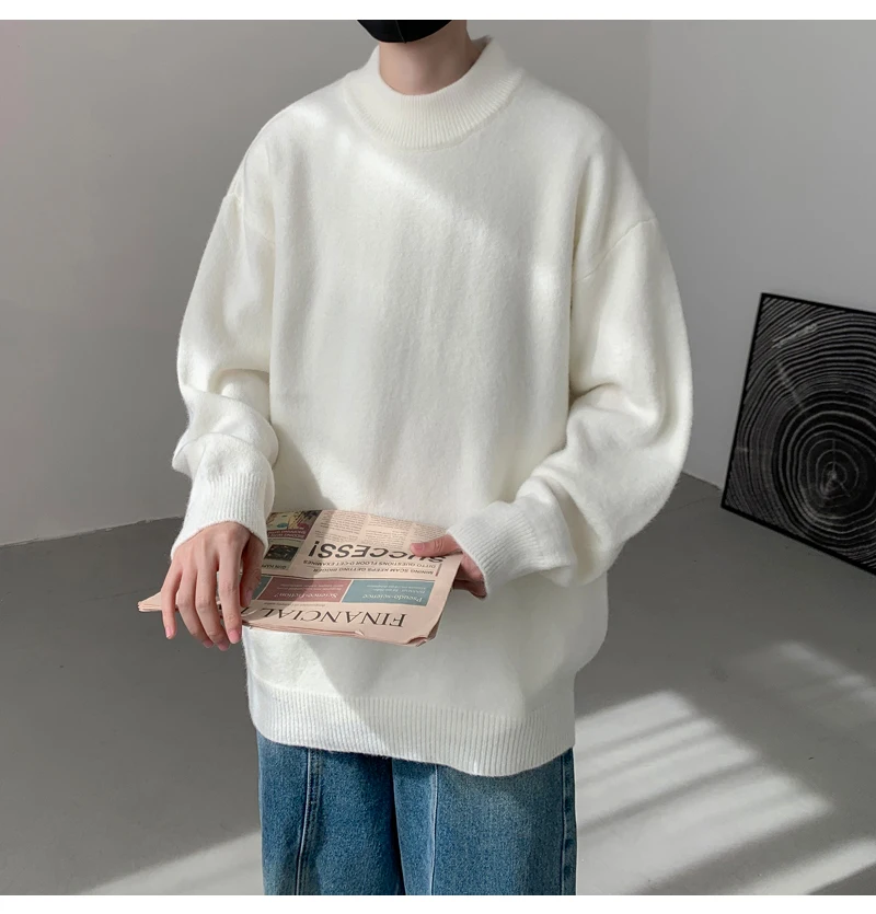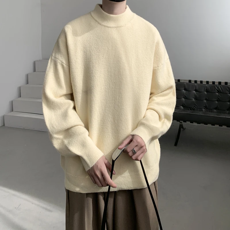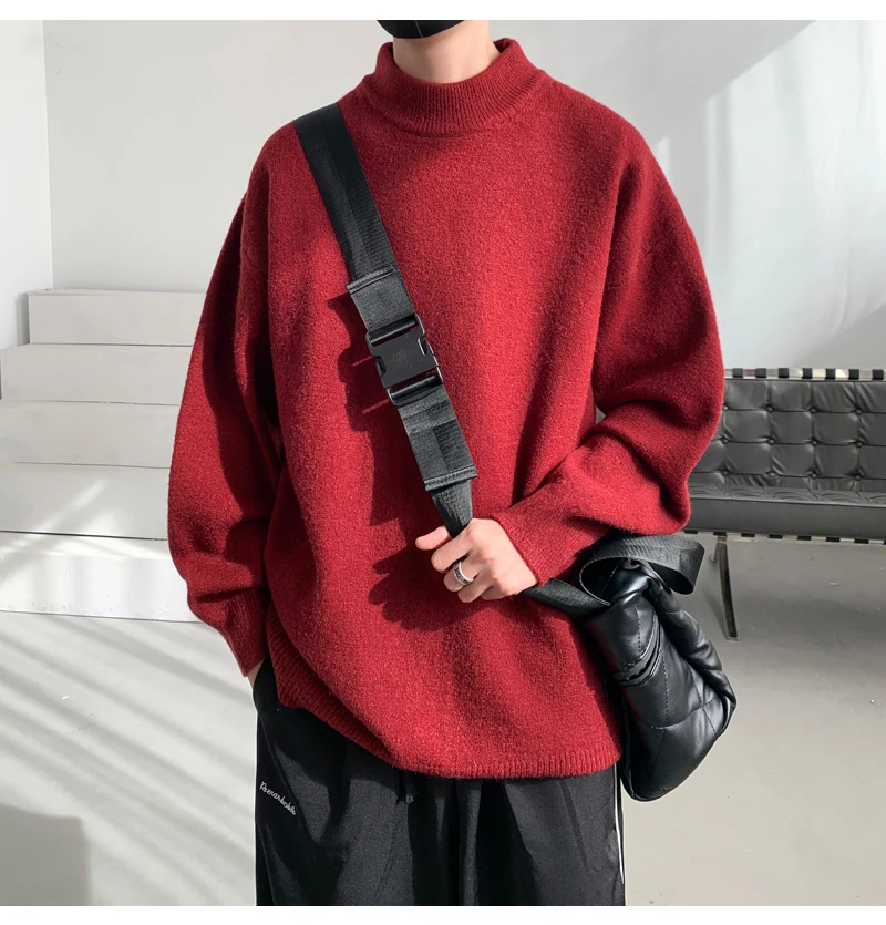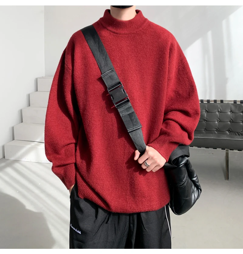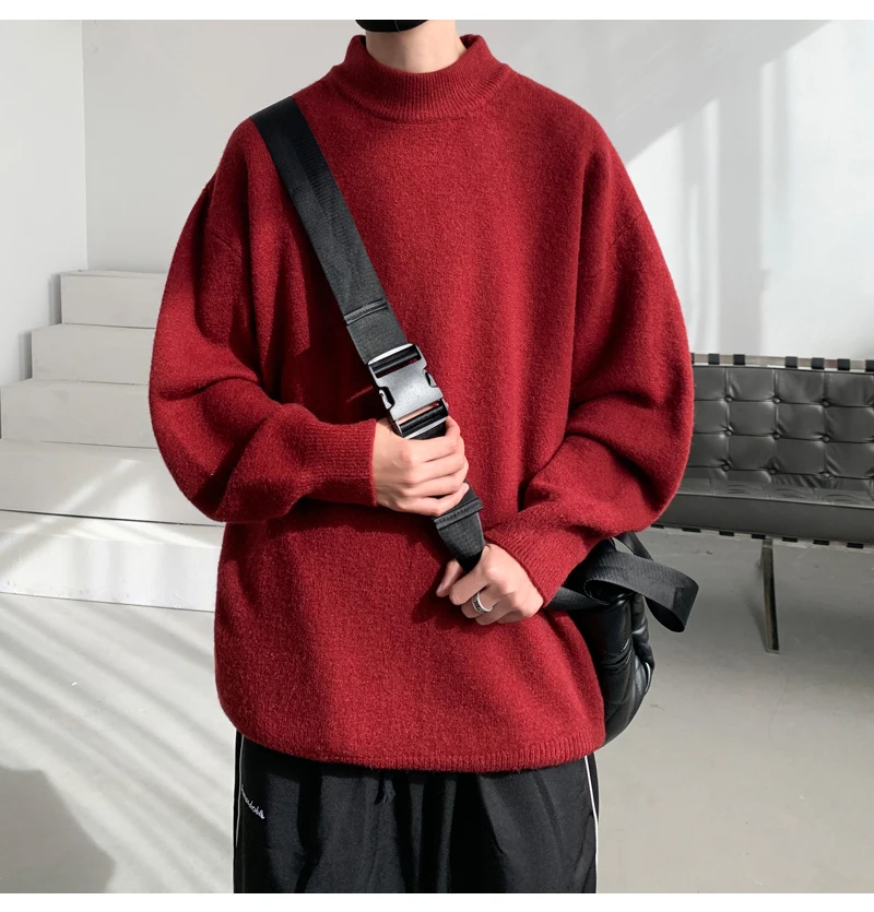 2023 Men Mock Neck Sweater Solid Color Pullovers Autumn Men Knitted Warm Sweater Male Wear Fashion Undershirt Men Clothing