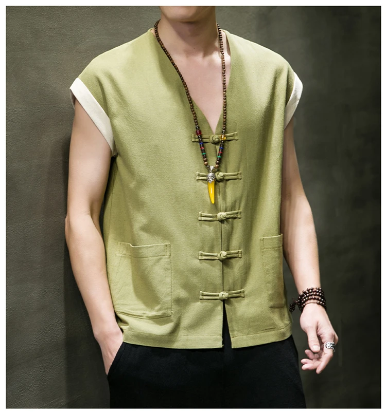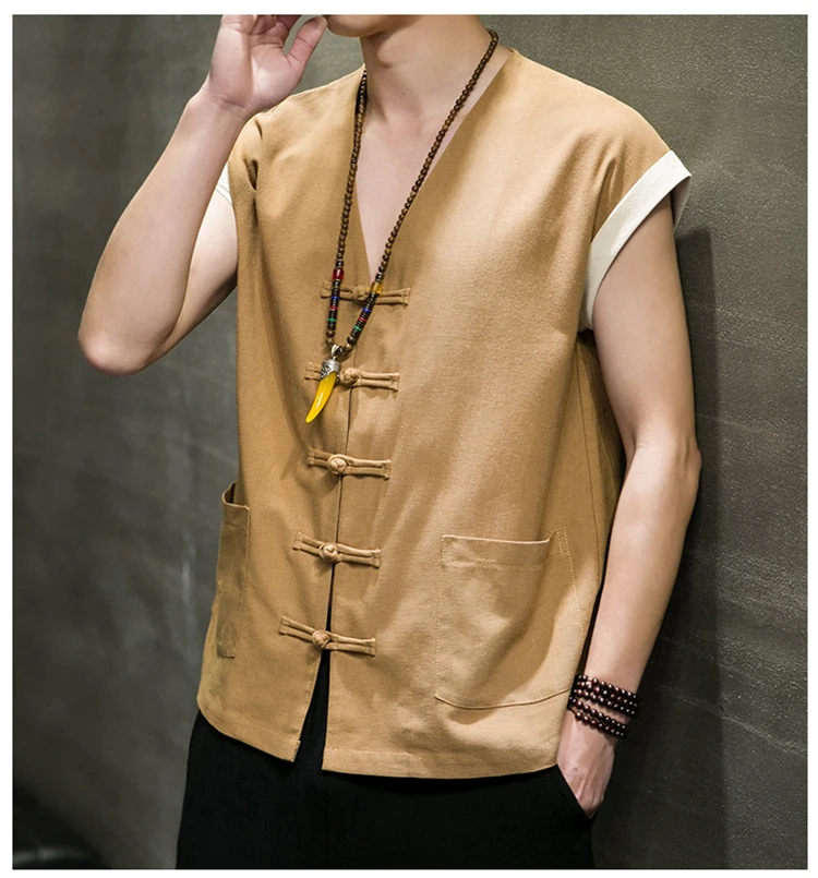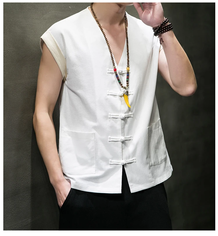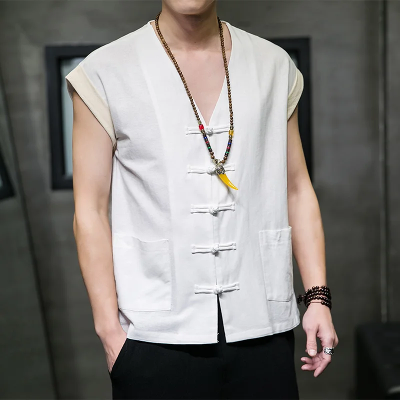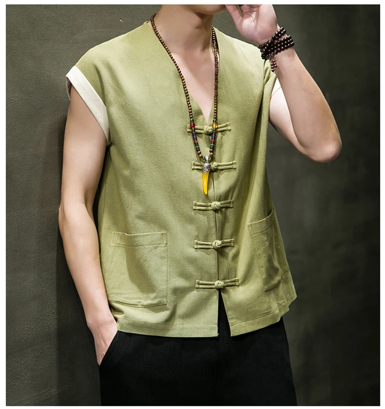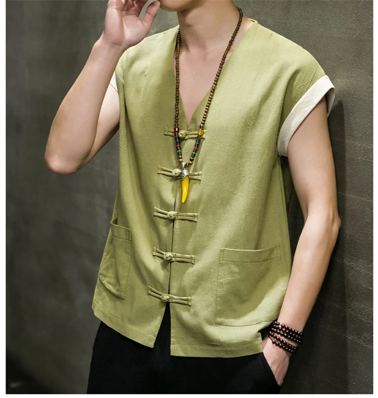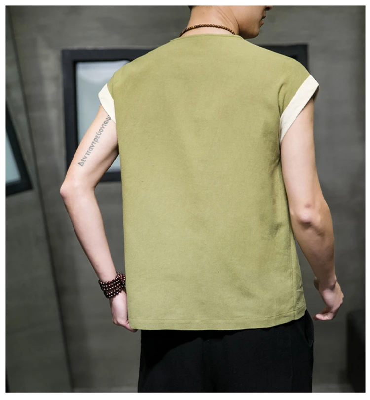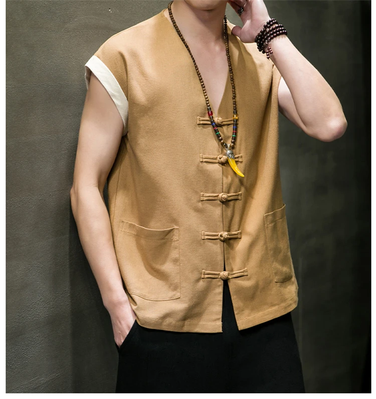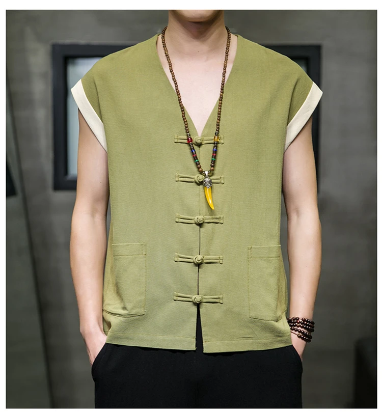 2023 Men Summer Chinese Style Cotton Linen Vest Men Button Vintage Tank Tops Male Breathable Open Stitch Sleeveless Vest