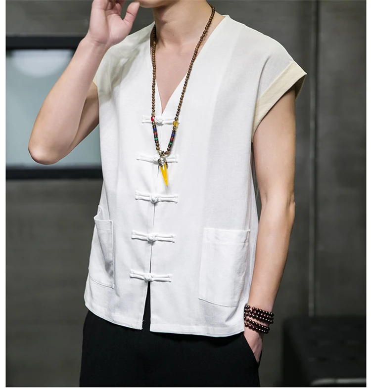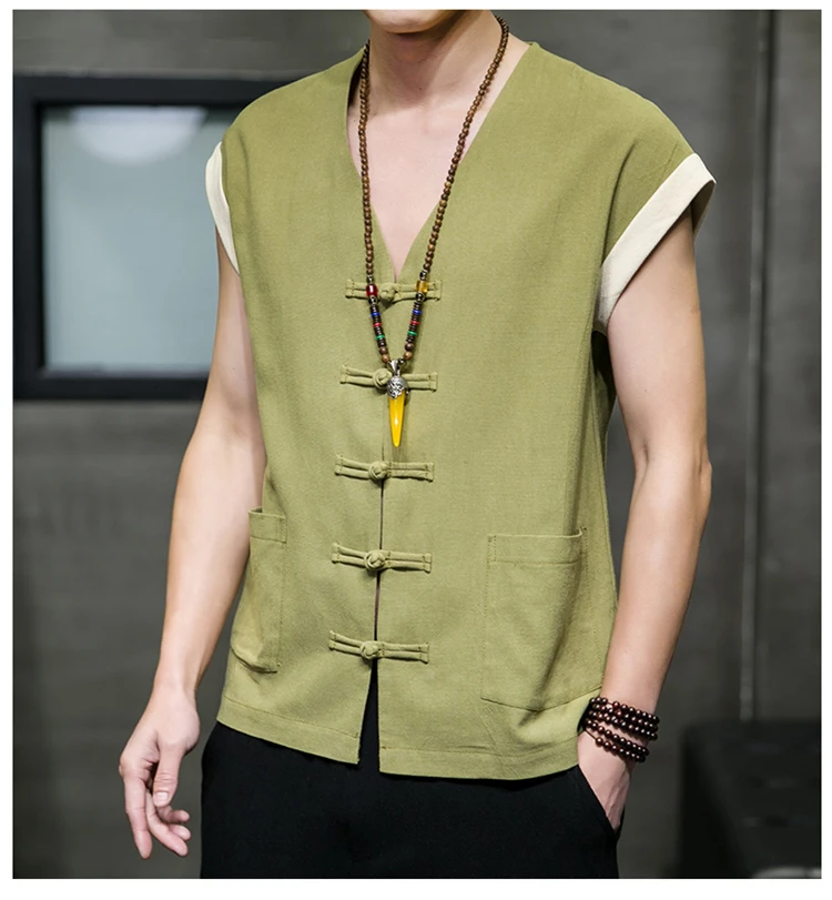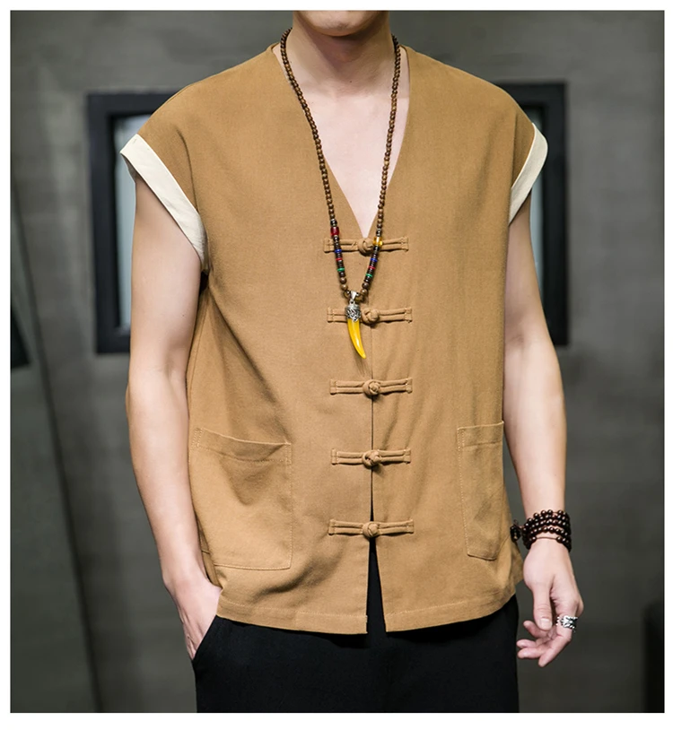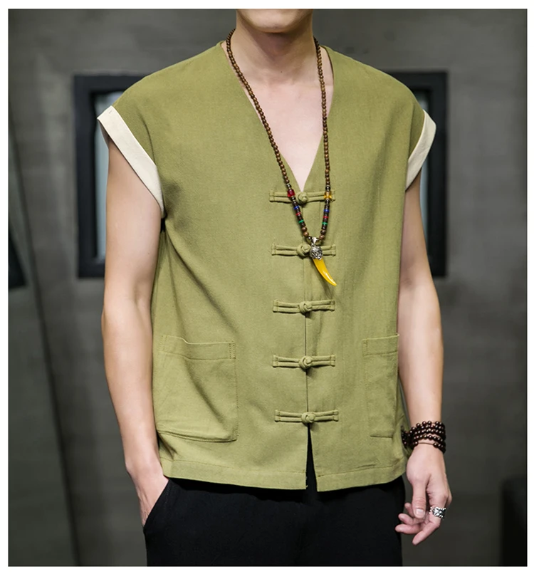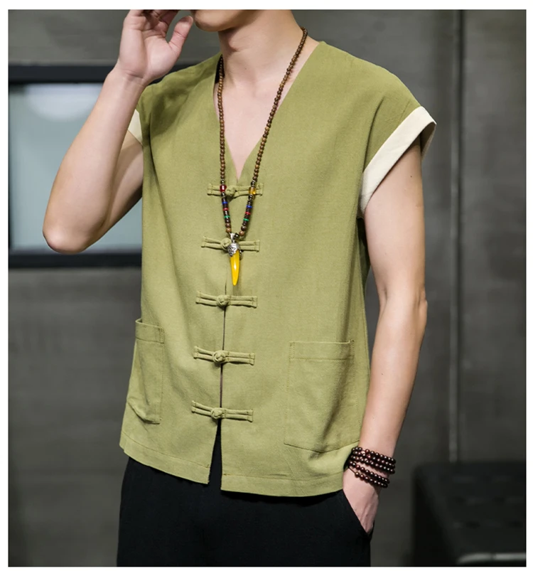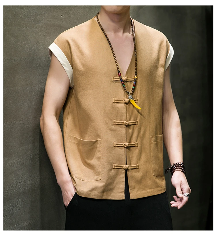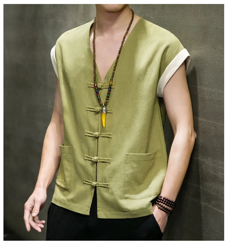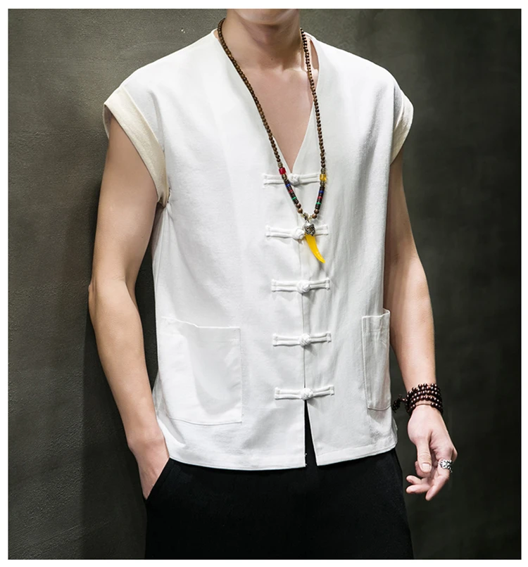 2023 Men Summer Chinese Style Cotton Linen Vest Men Button Vintage Tank Tops Male Breathable Open Stitch Sleeveless Vest