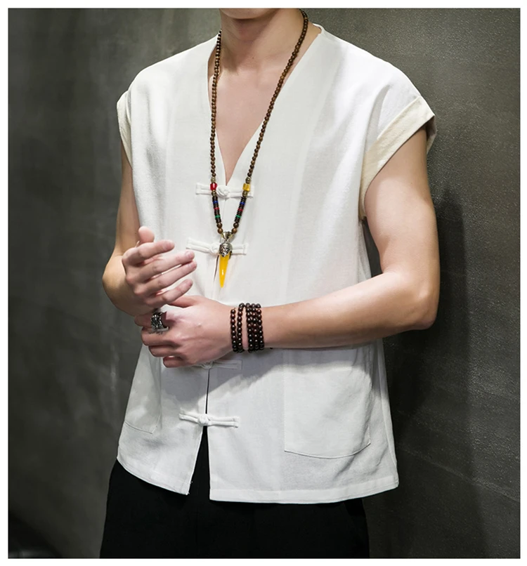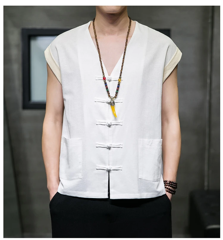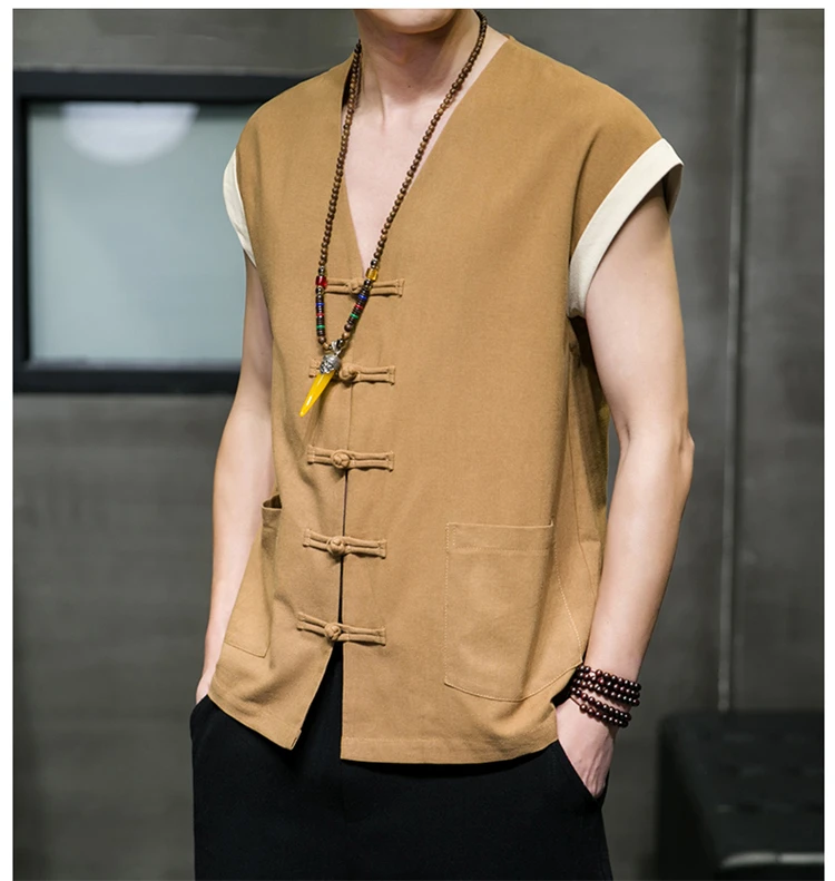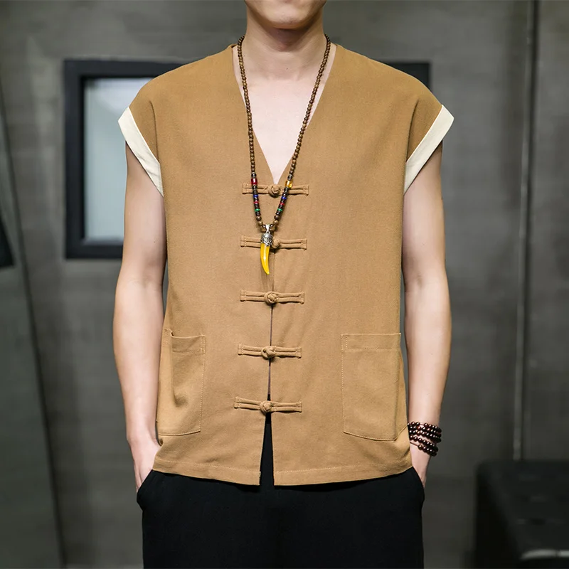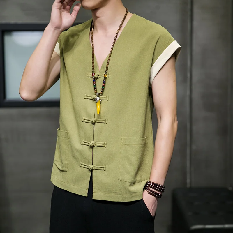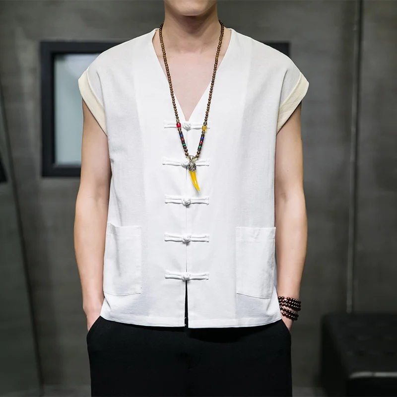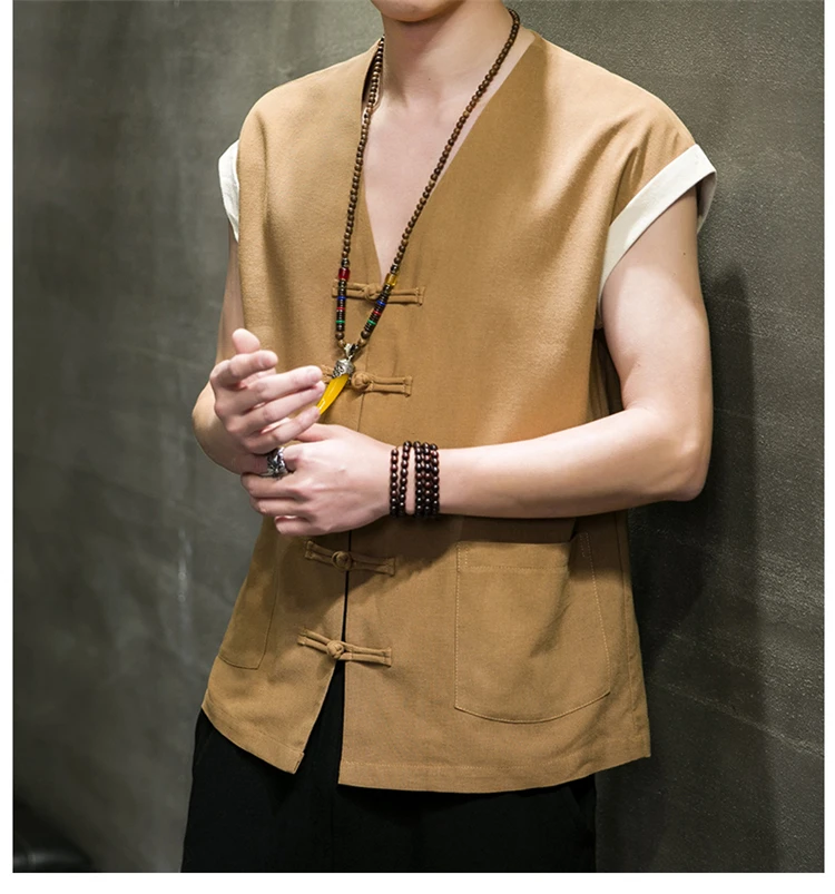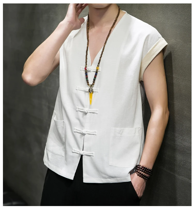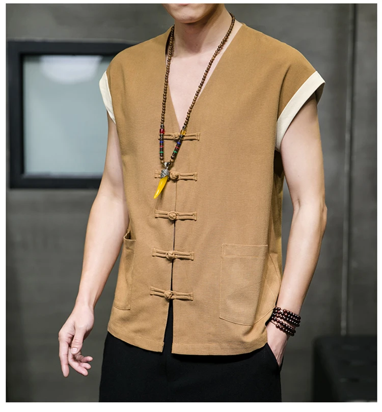 2023 Men Summer Chinese Style Cotton Linen Vest Men Button Vintage Tank Tops Male Breathable Open Stitch Sleeveless Vest