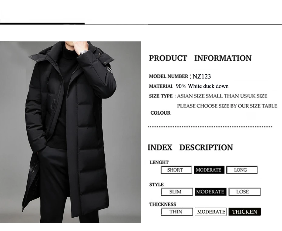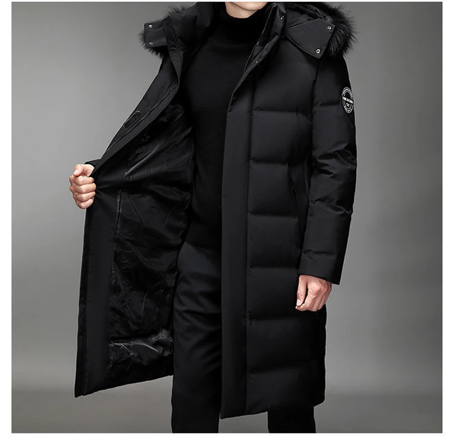 2023 New Men’s Down Jacket Winter Thick Winter Length 90% Down Jacket Fur Hat Windproof Rainproof Winter Trench Coat 123 Coats