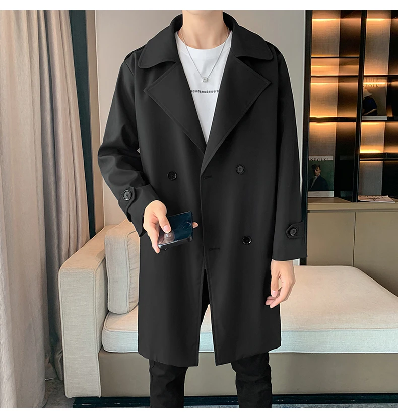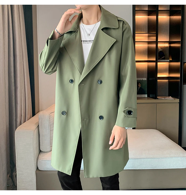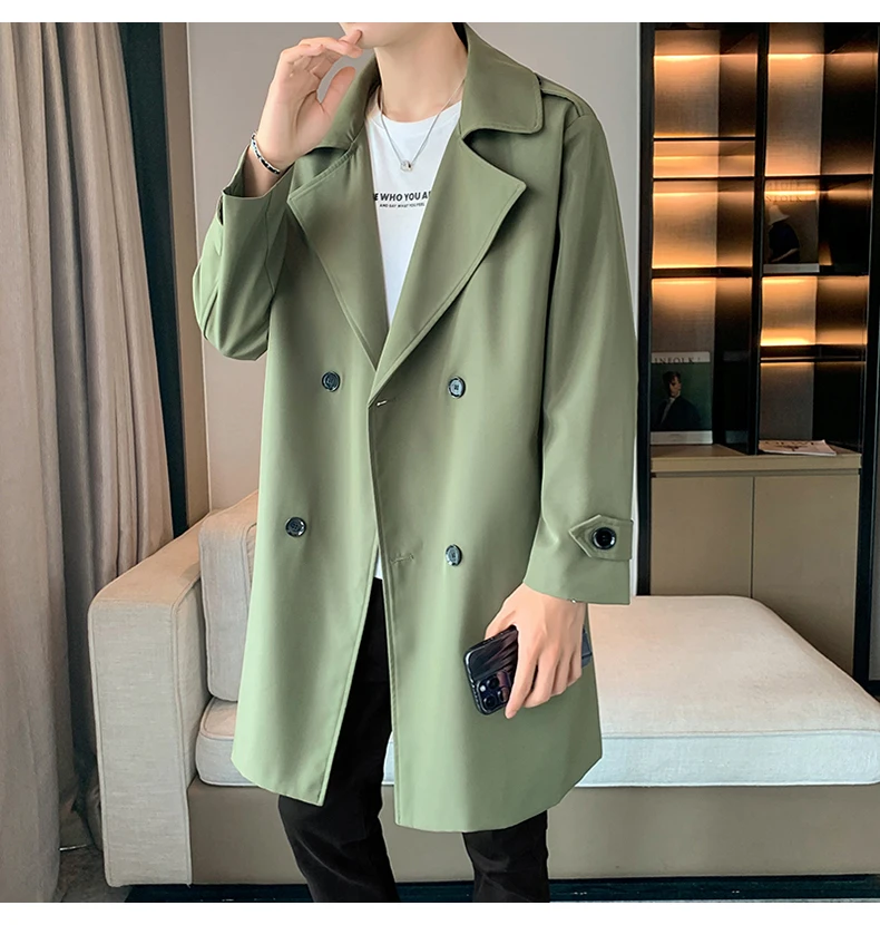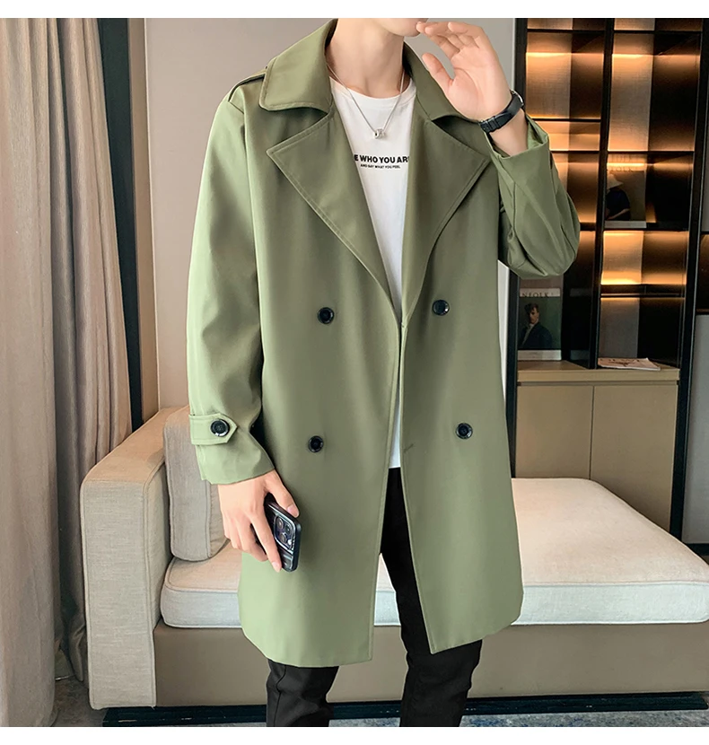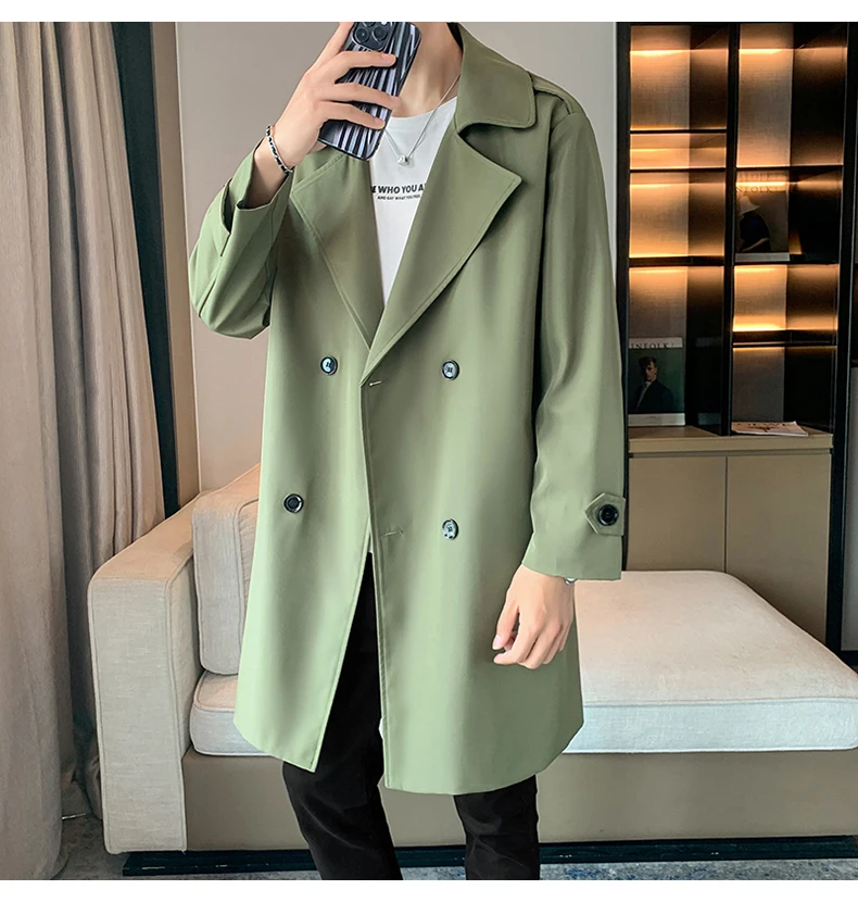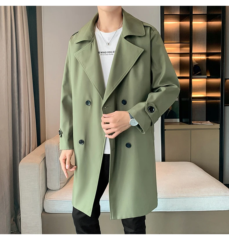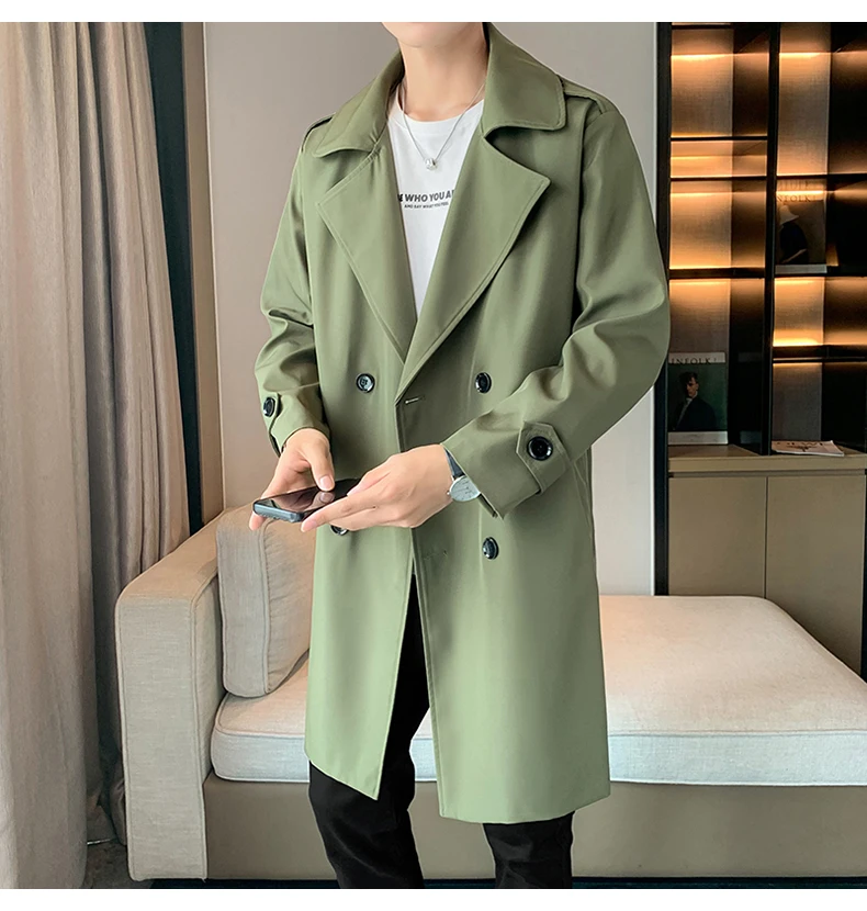 2023 New Spring Men Trench Fashion Korean Style Long Trench Coats Mens Casual Outerwear Jackets Windbreaker Brand Mens Clothing