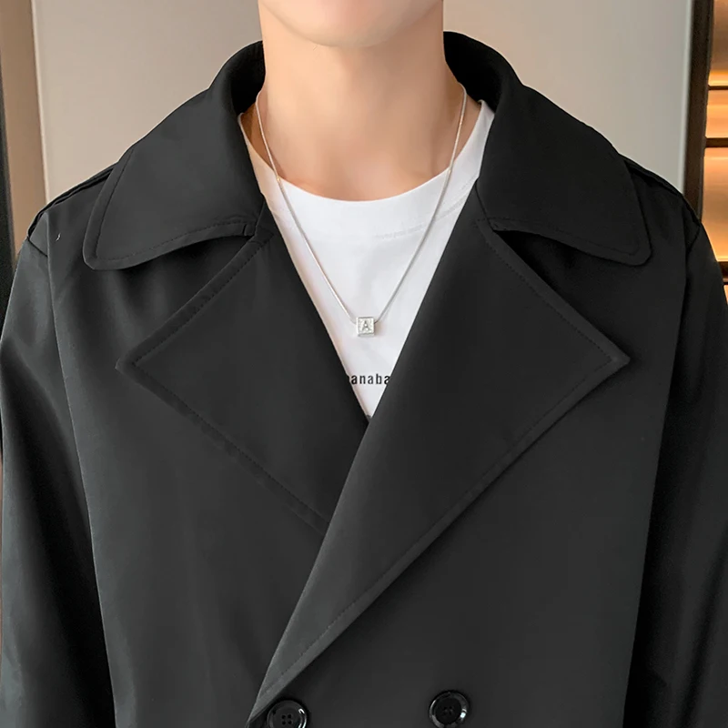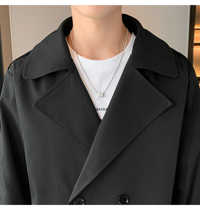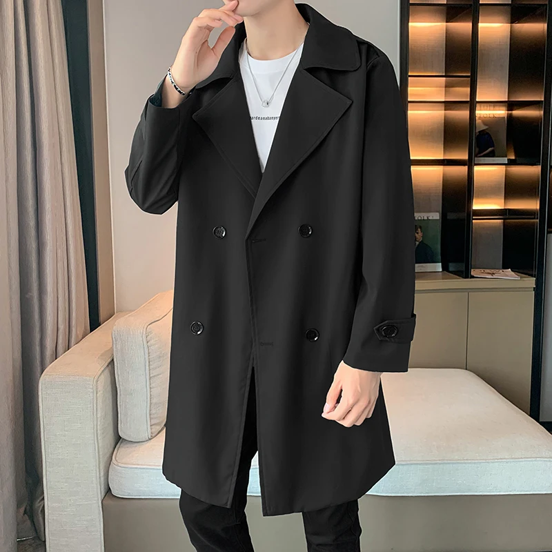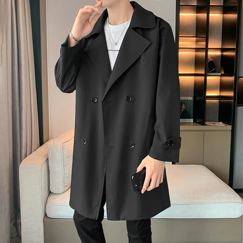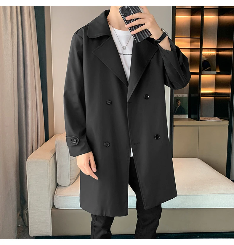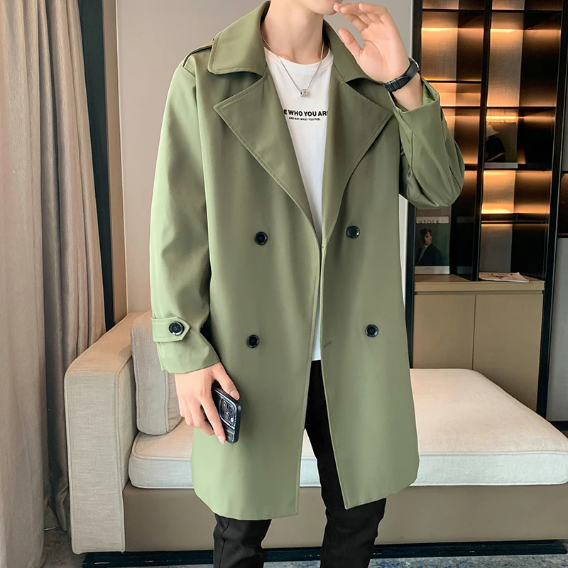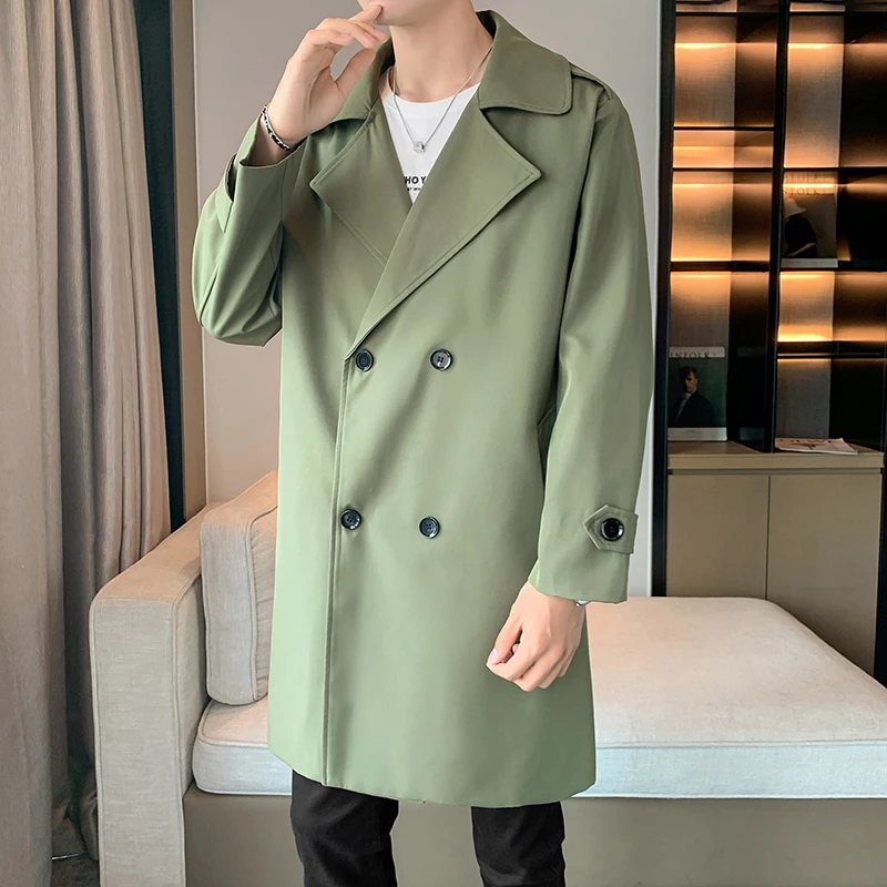 2023 New Spring Men Trench Fashion Korean Style Long Trench Coats Mens Casual Outerwear Jackets Windbreaker Brand Mens Clothing