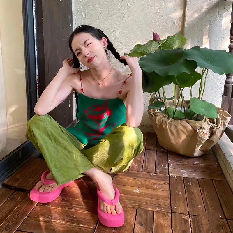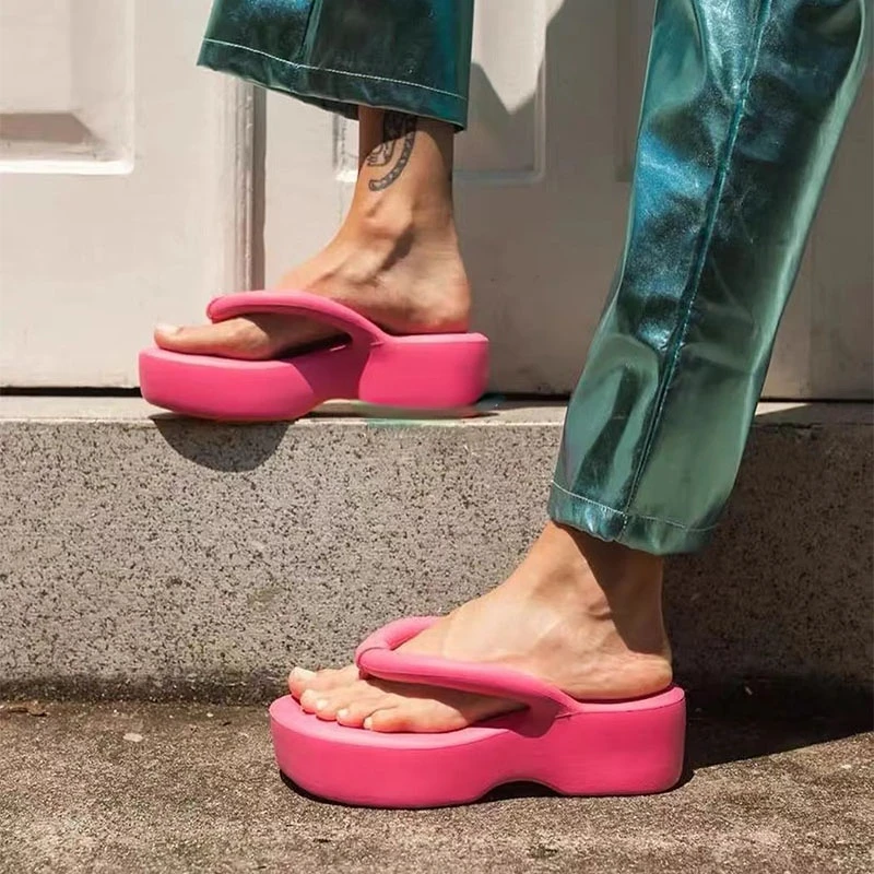 2023 New Summer Women Fashion Holiday Beach Wedge Flip Flops EVA Sole Light Platform Med Heel Casual Sweet Outside Slippers Shoe