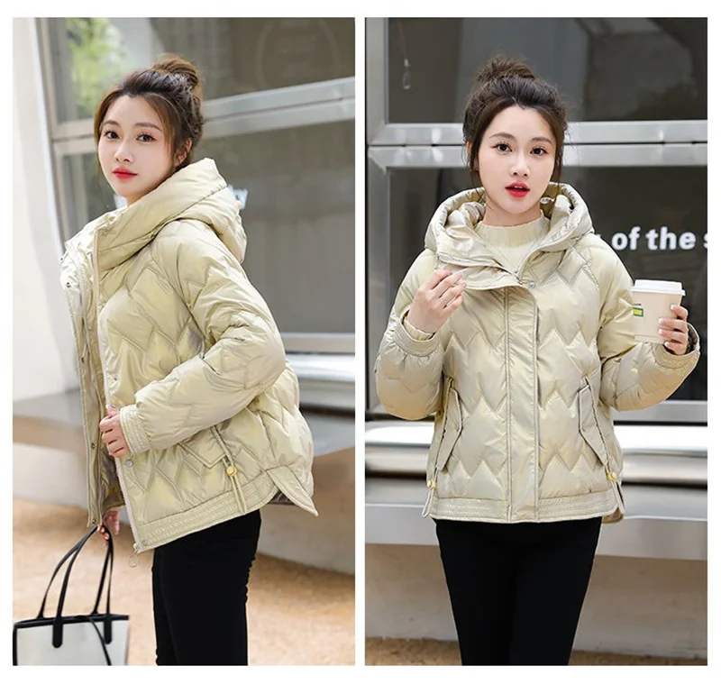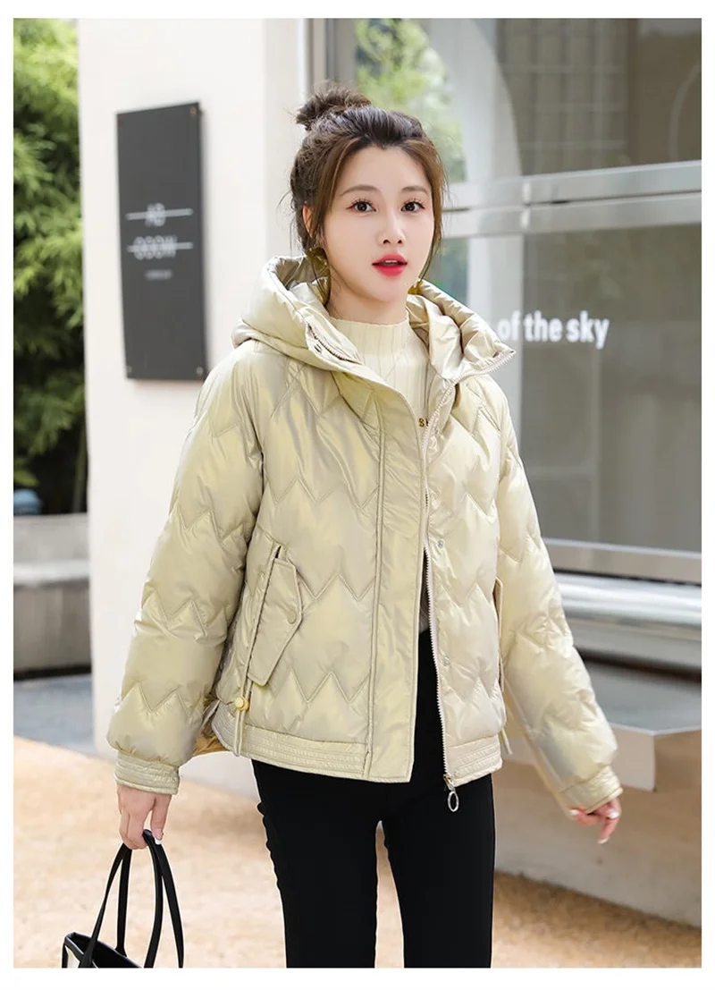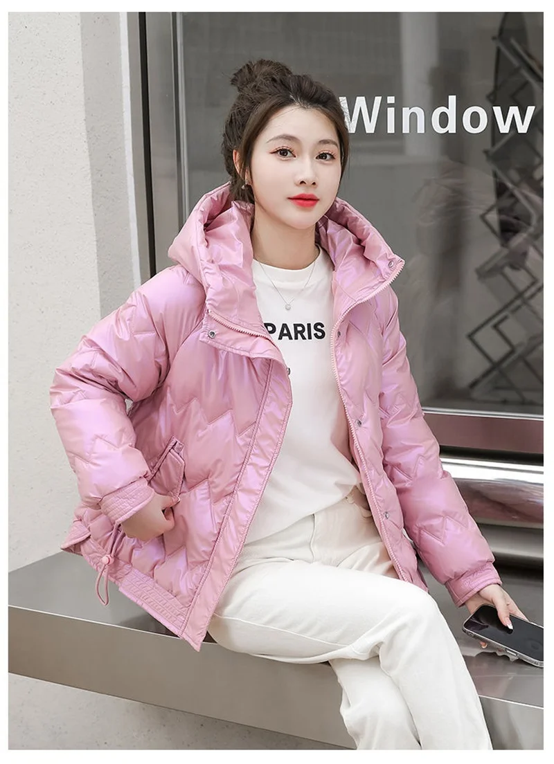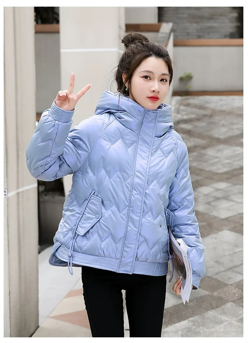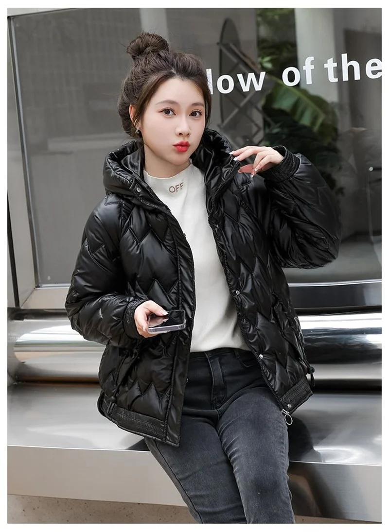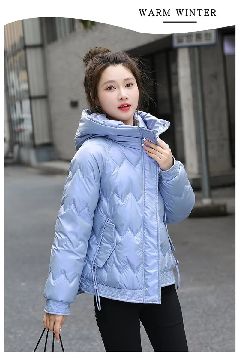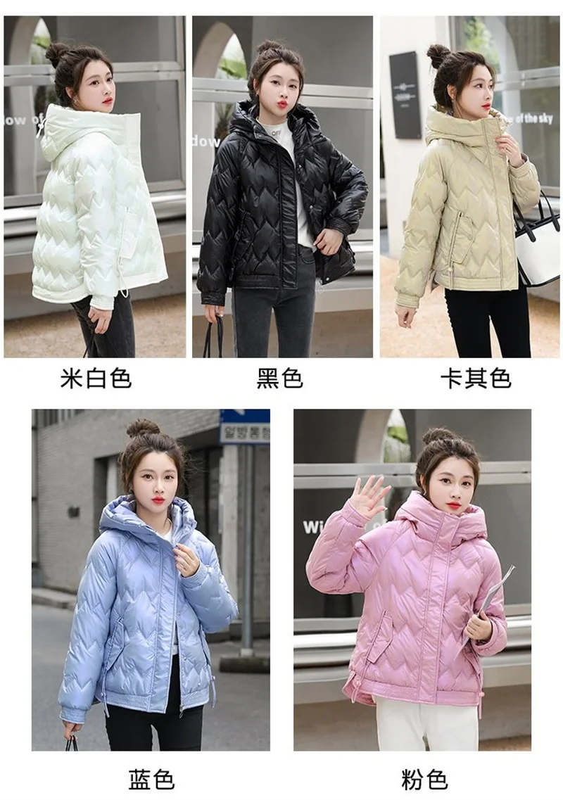 2023 New Winter Women Short Parkas Hooded Down Cotton Padded Jacket Female Overcoat Thick Warm Glossy Outwear Lady Outerwear