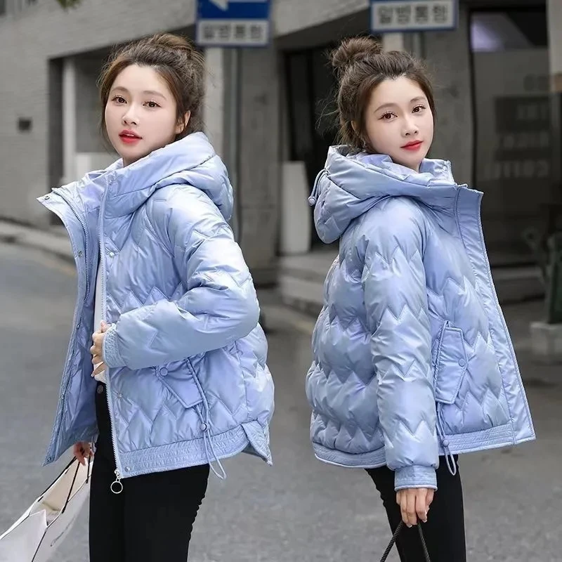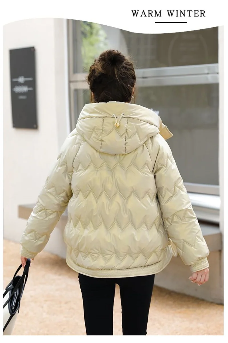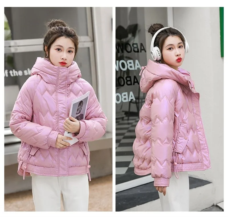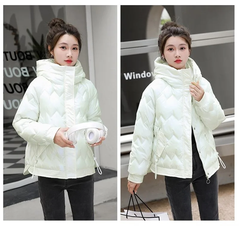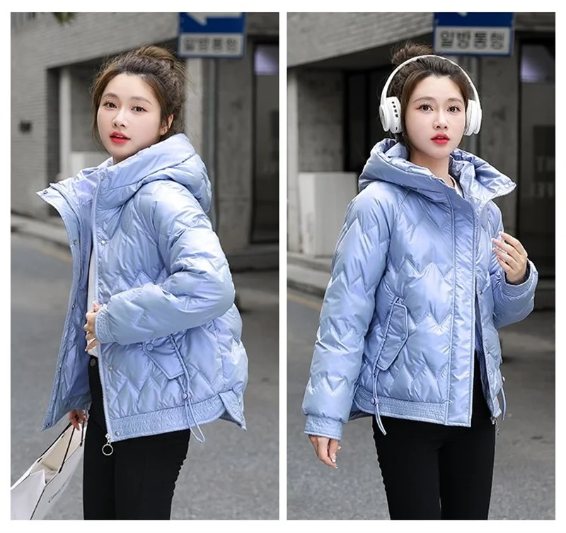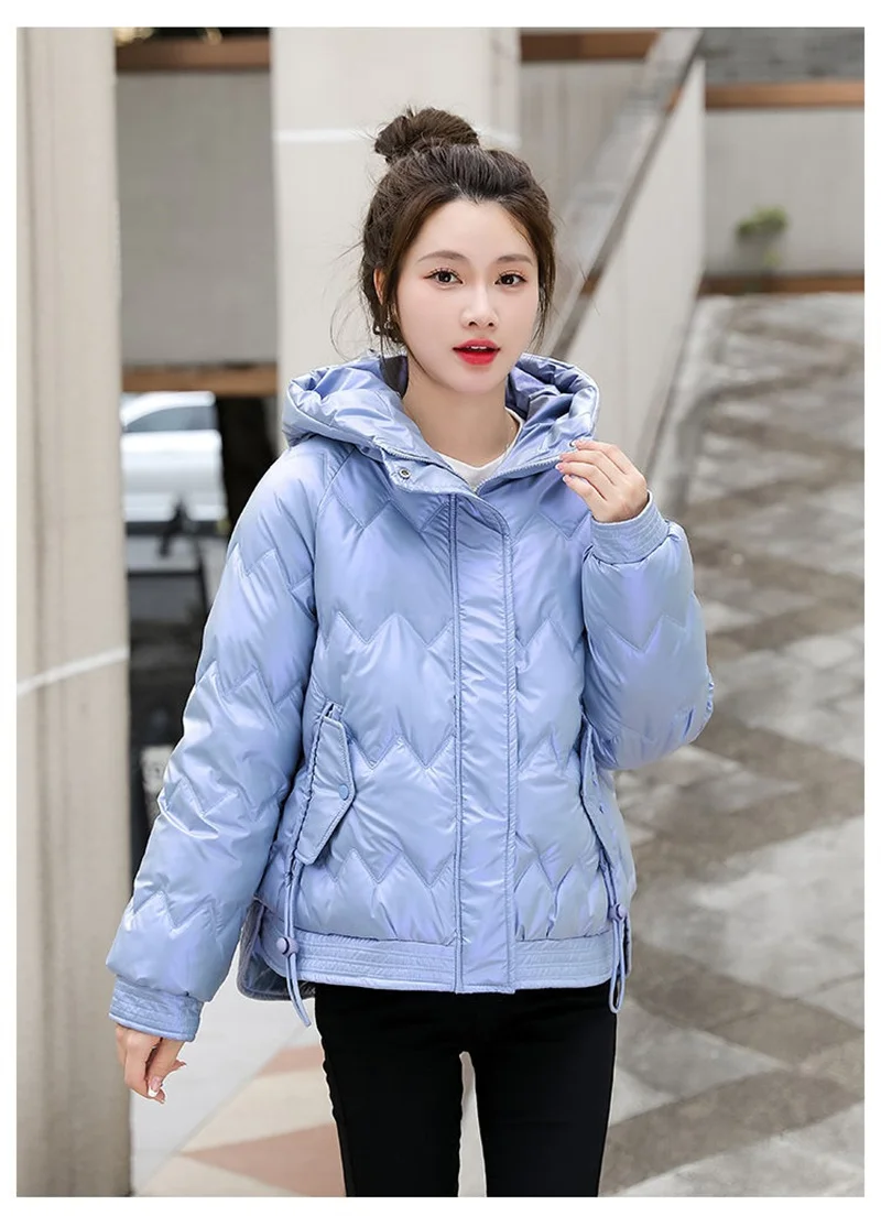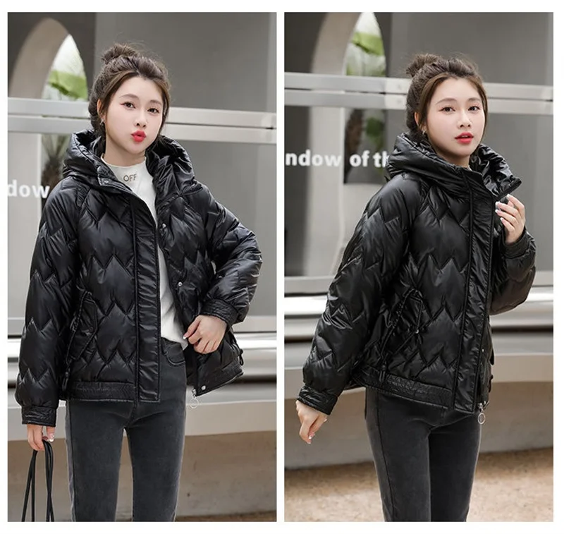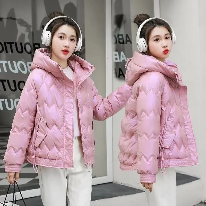 2023 New Winter Women Short Parkas Hooded Down Cotton Padded Jacket Female Overcoat Thick Warm Glossy Outwear Lady Outerwear