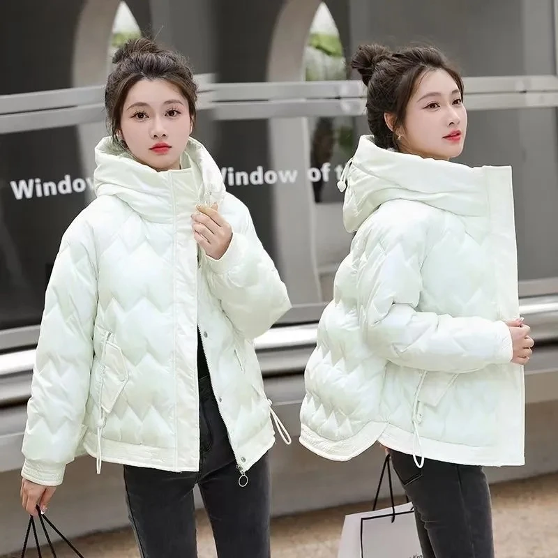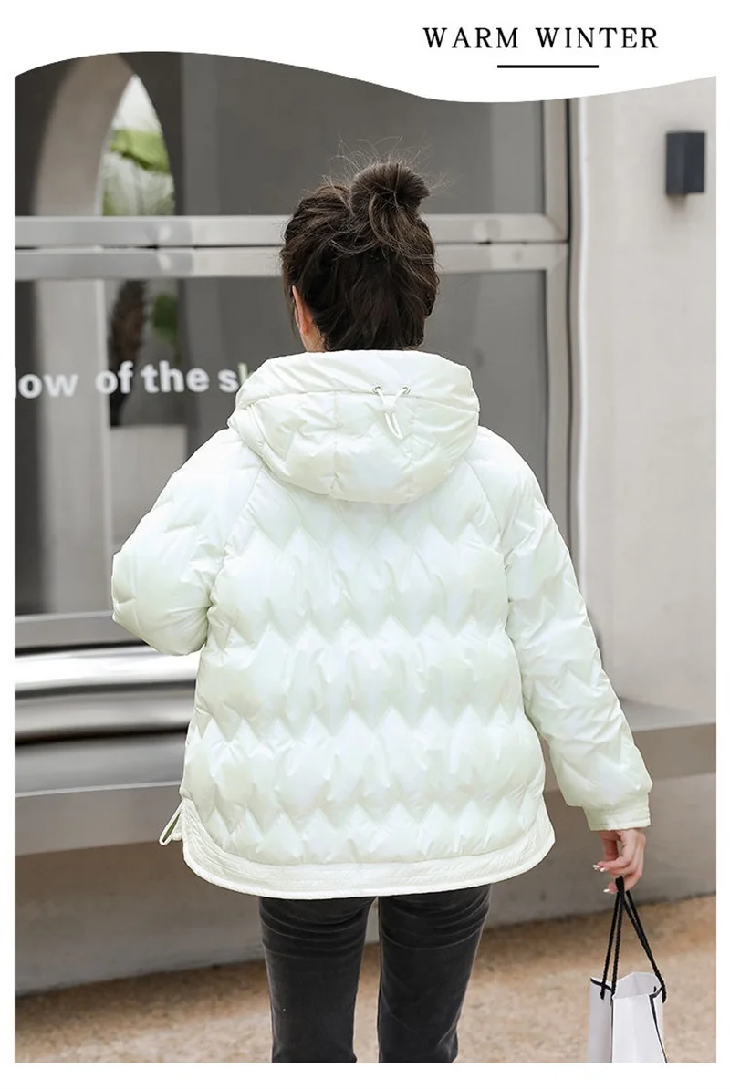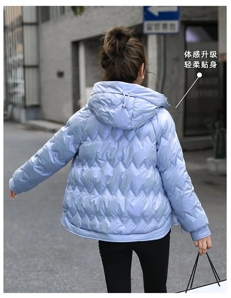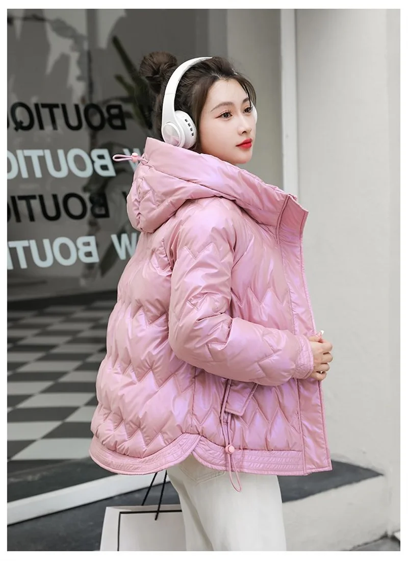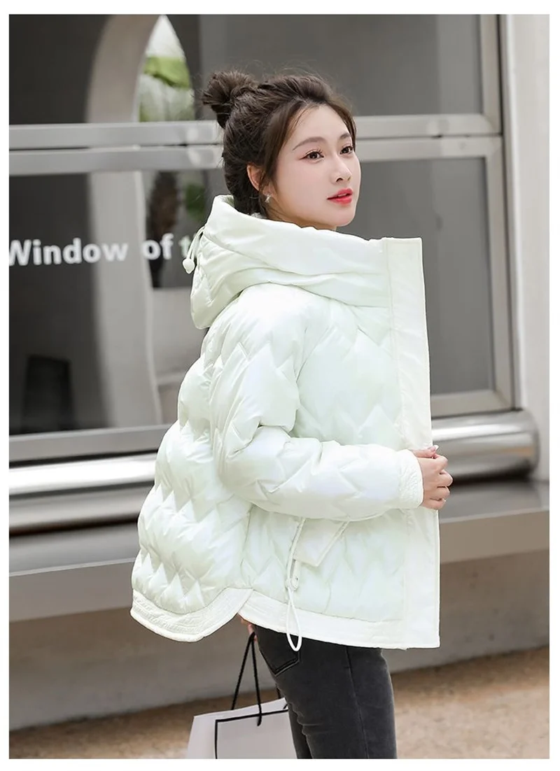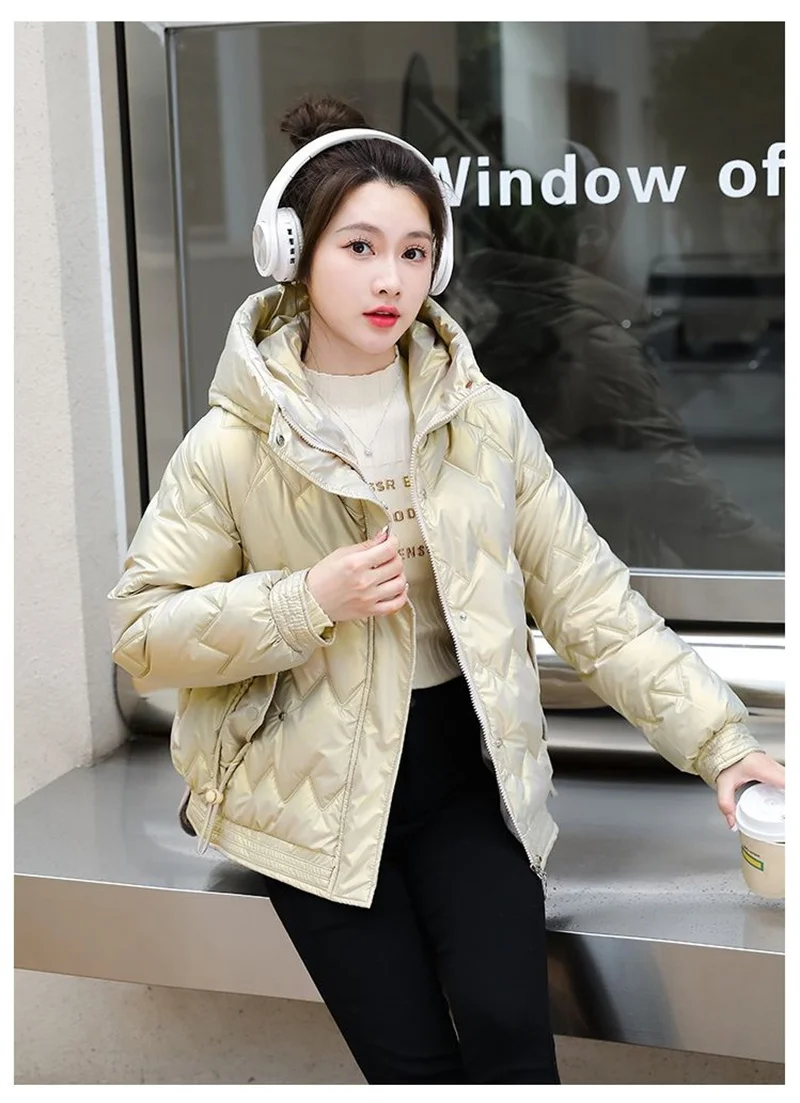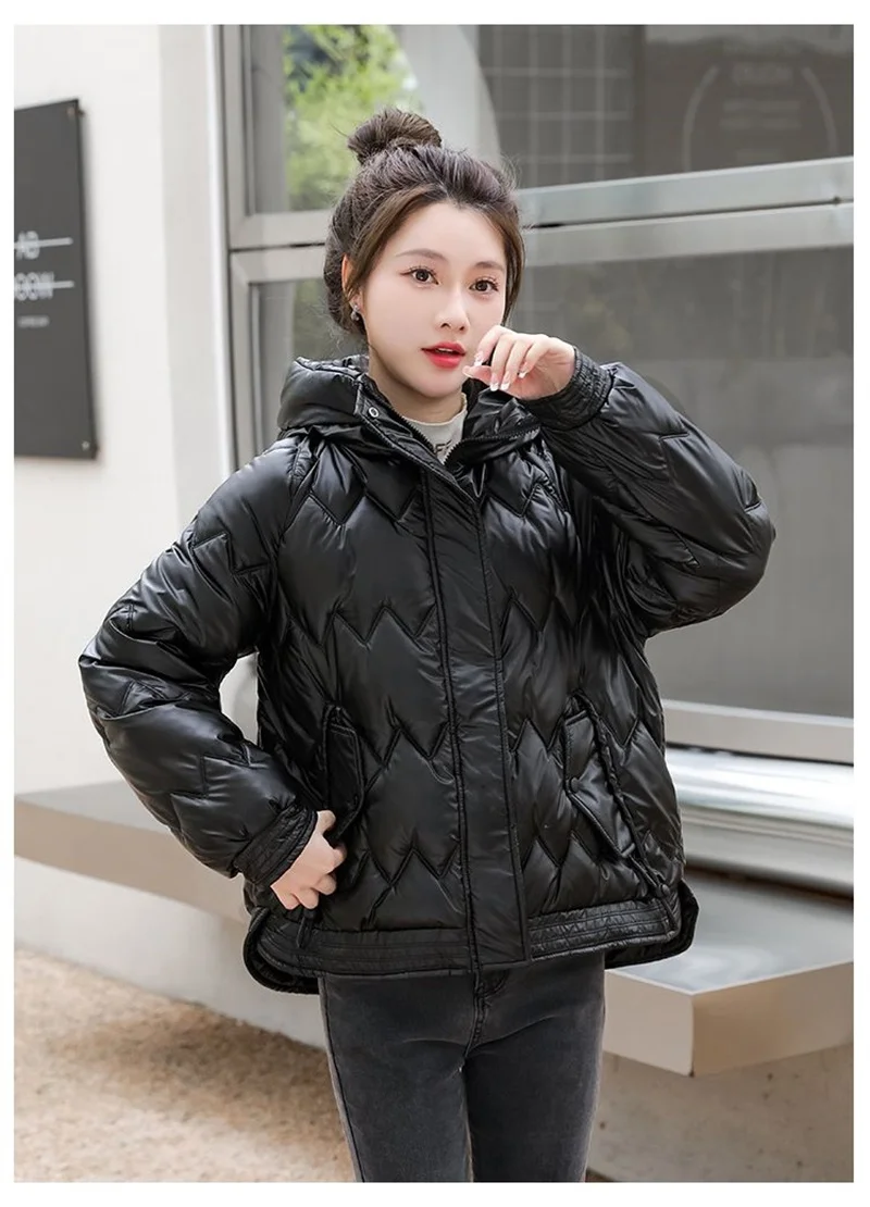 2023 New Winter Women Short Parkas Hooded Down Cotton Padded Jacket Female Overcoat Thick Warm Glossy Outwear Lady Outerwear