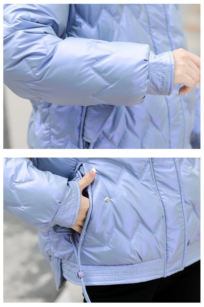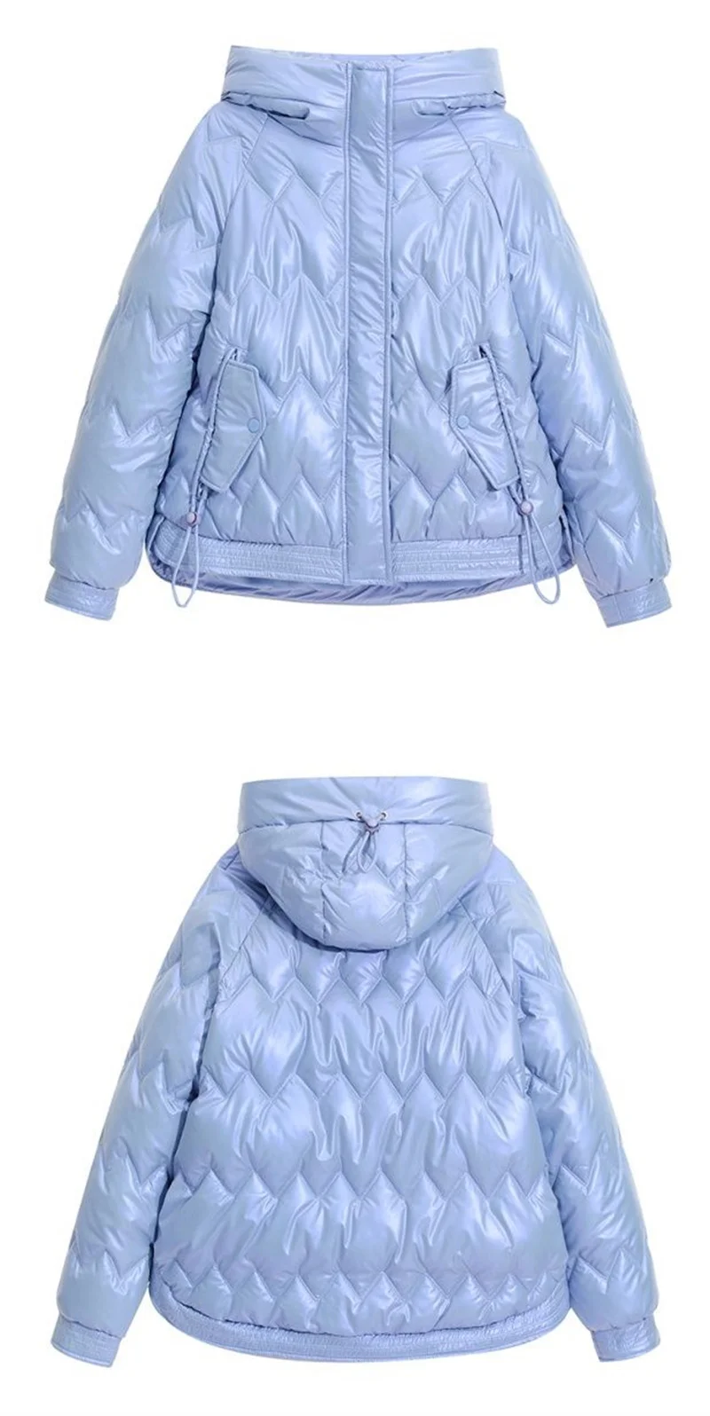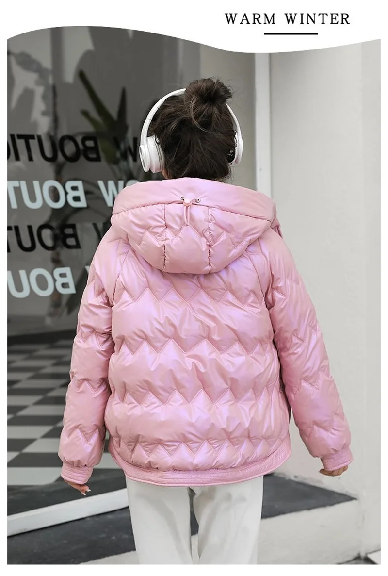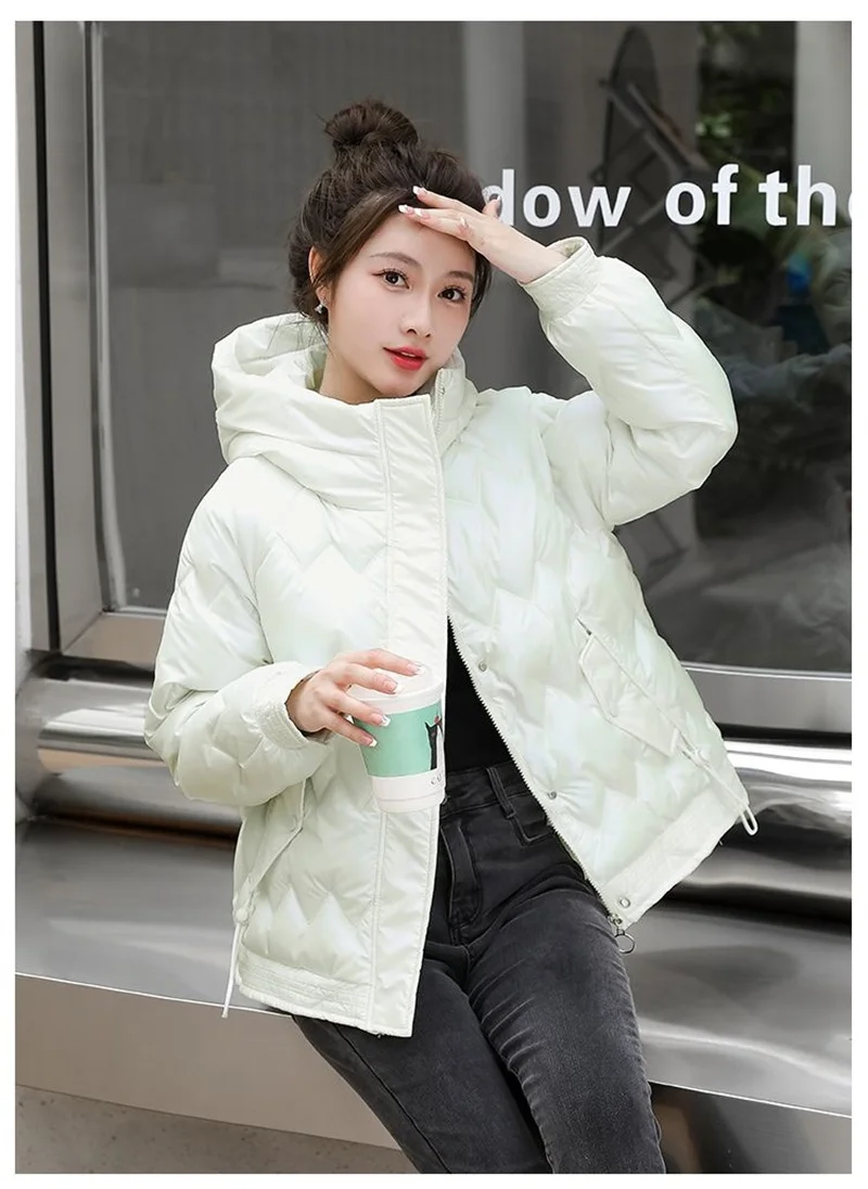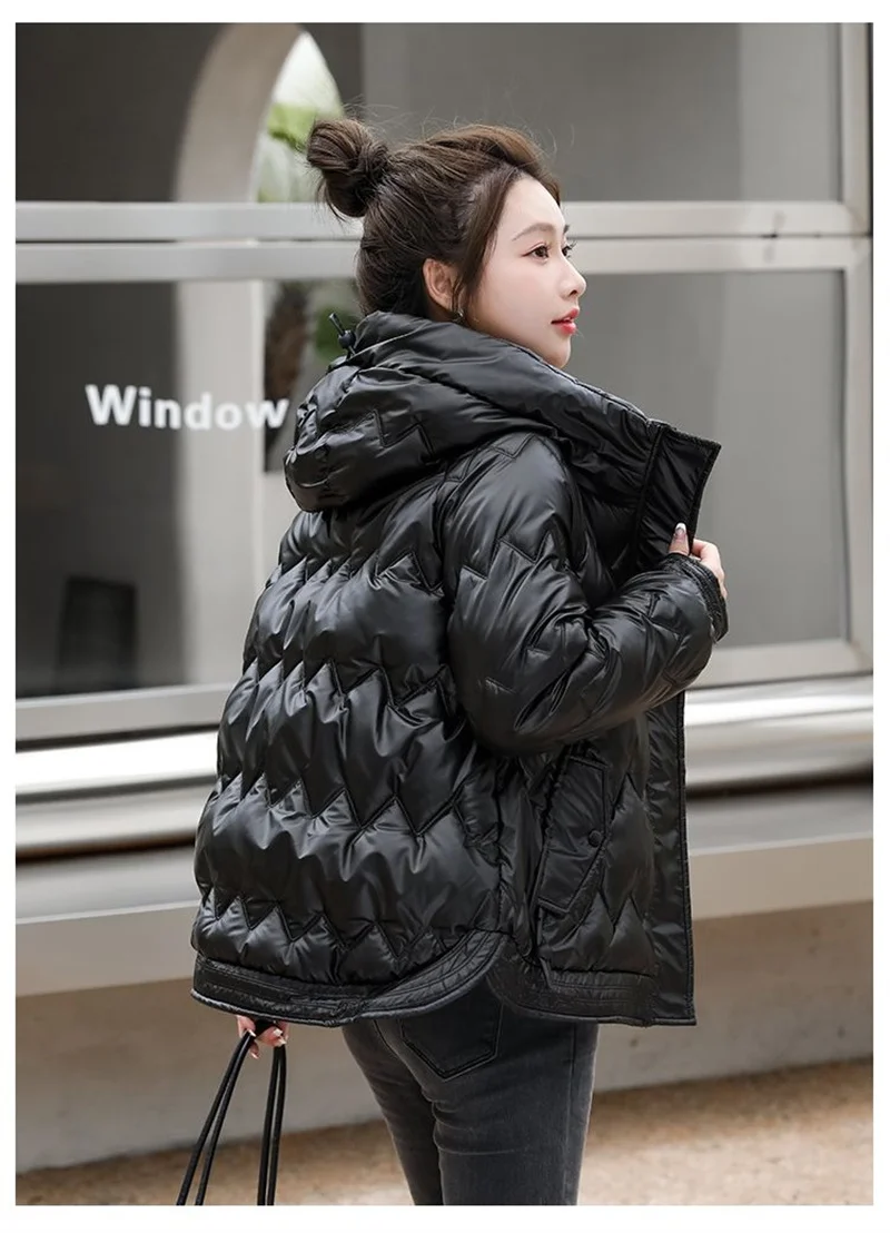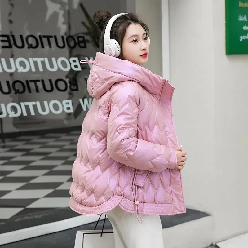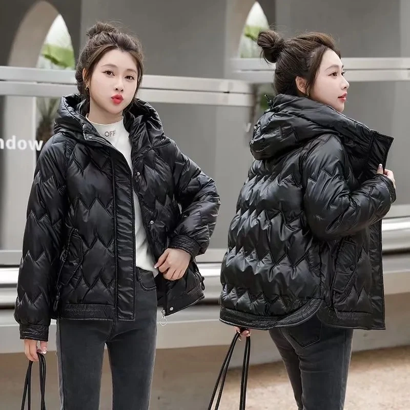 2023 New Winter Women Short Parkas Hooded Down Cotton Padded Jacket Female Overcoat Thick Warm Glossy Outwear Lady Outerwear