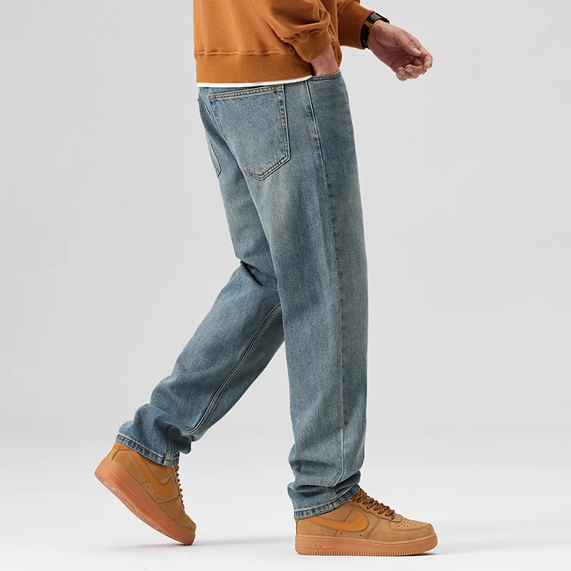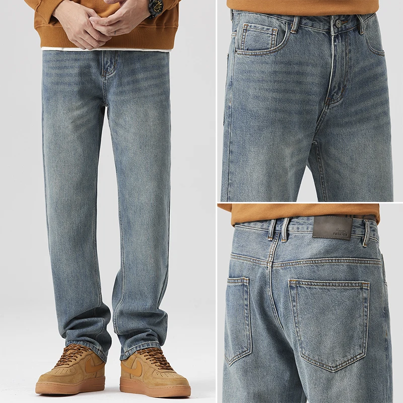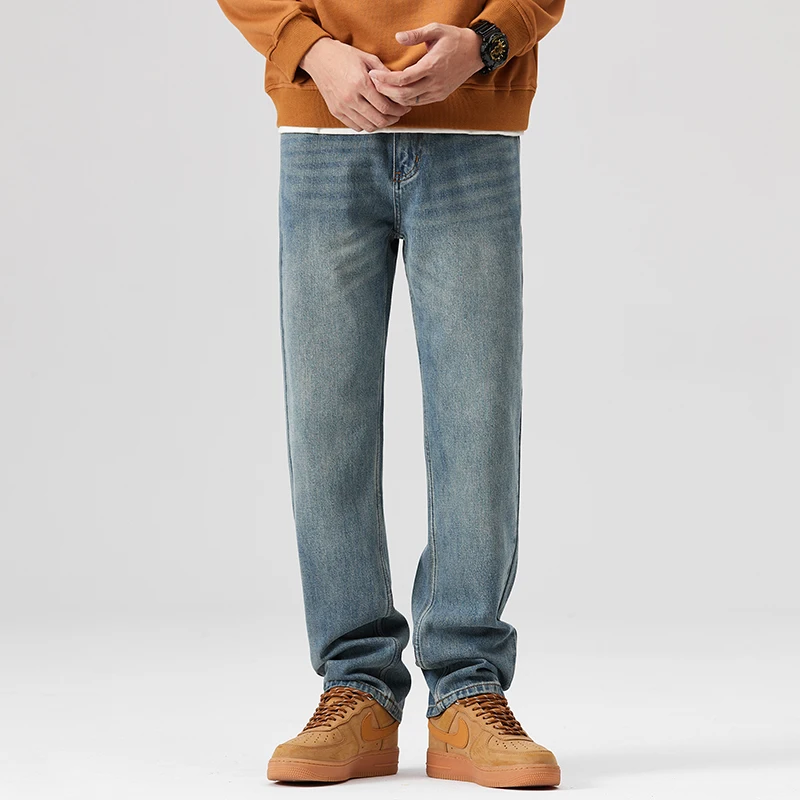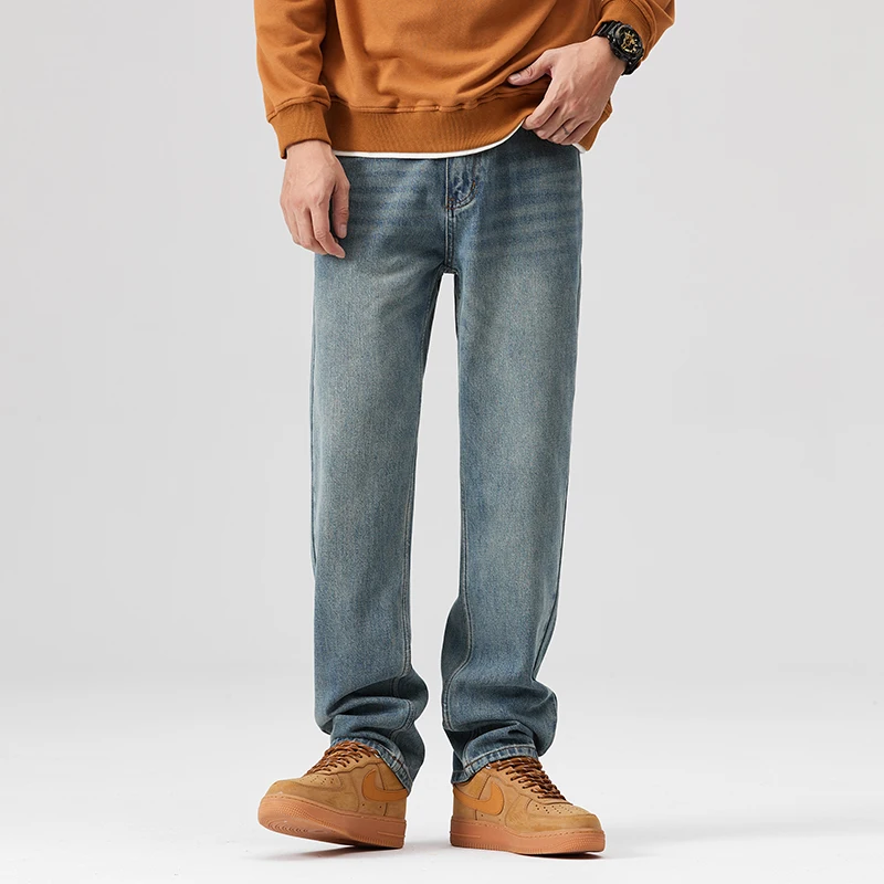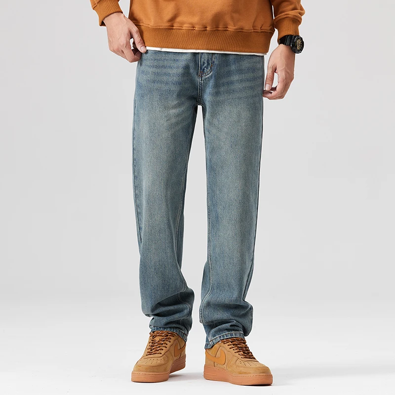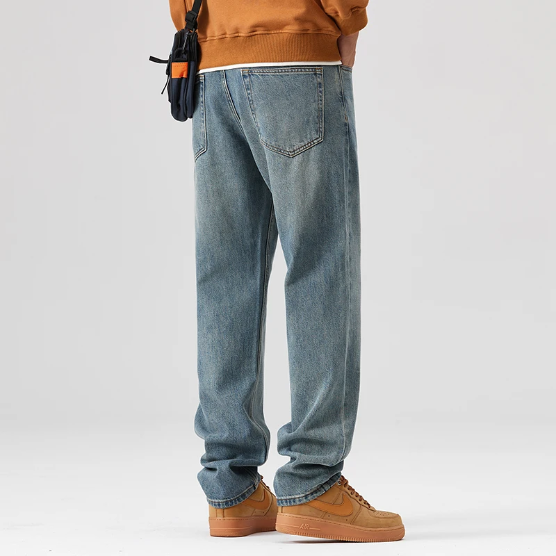 2023 Nostalgic Blue Baggy Casual Jeans Men’s Straight Loose Korean Versatile Student Yougth Pants