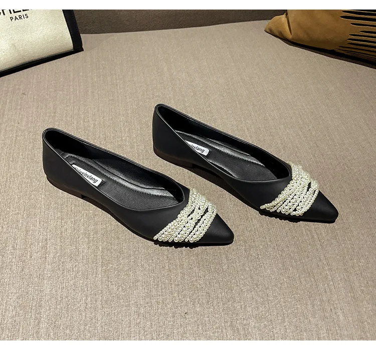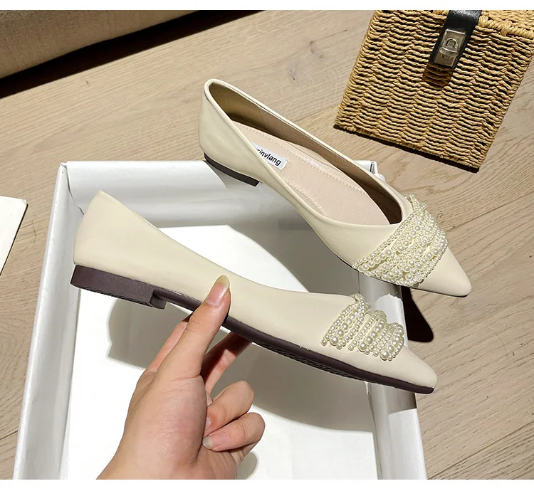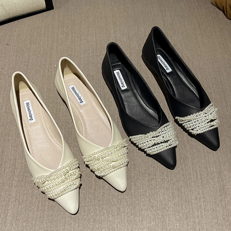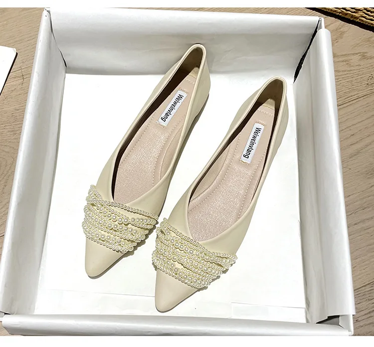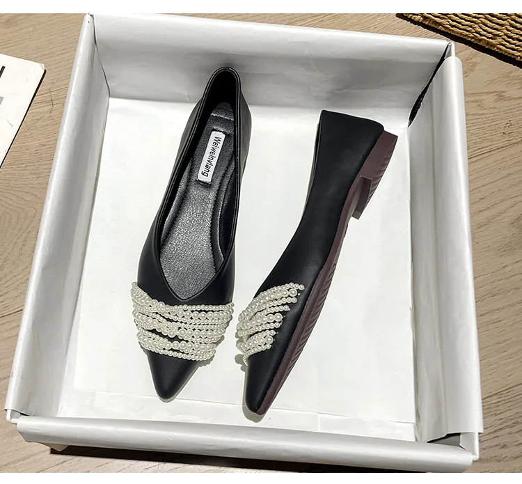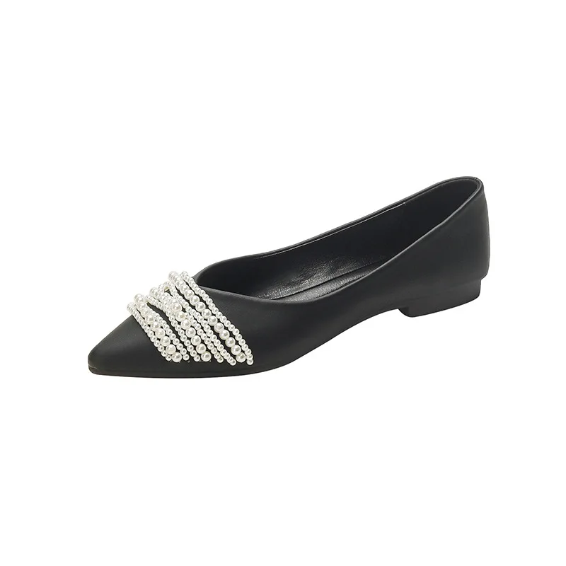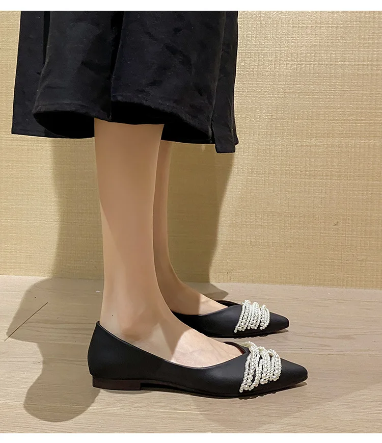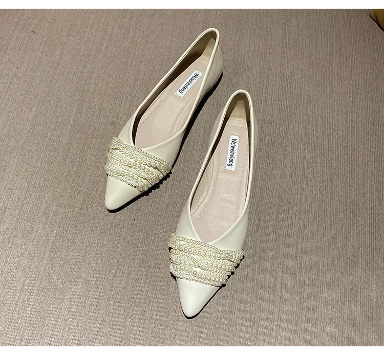 Soft Bottomed Flats Shoes Women Pearl Beaded Shoes Casual Slip On Ballerinas