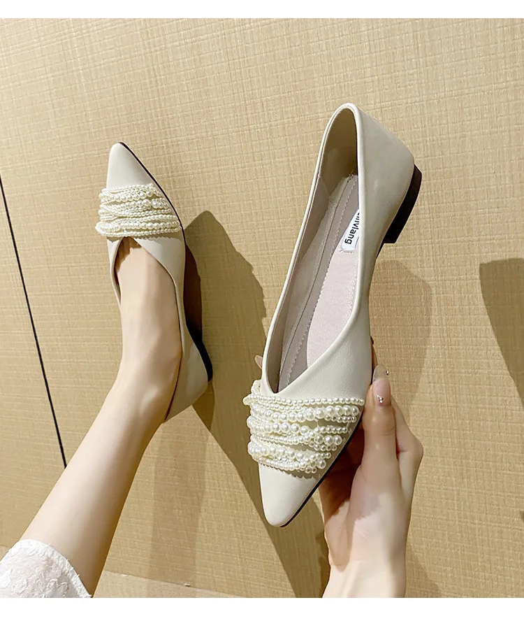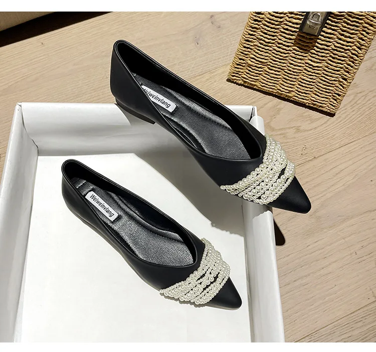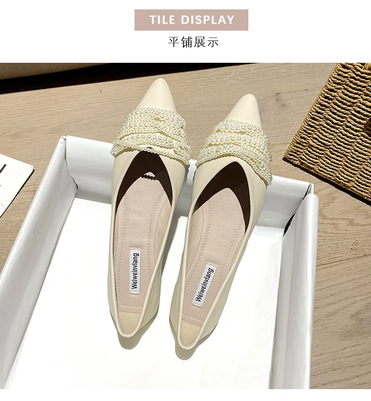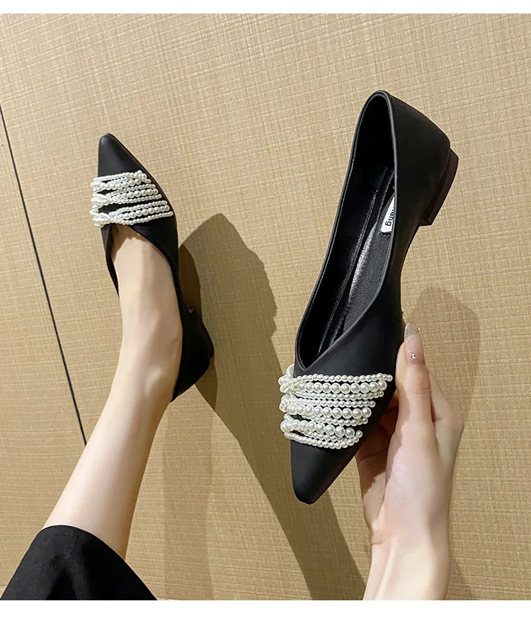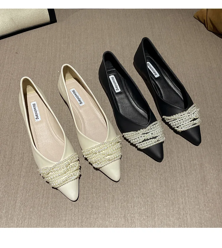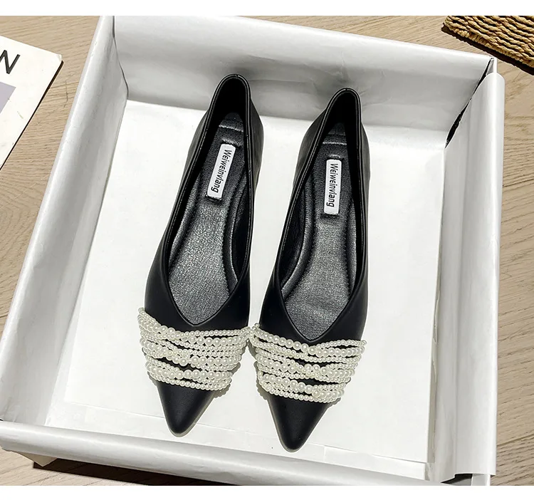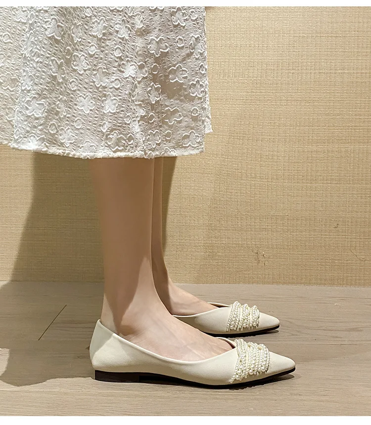 Soft Bottomed Flats Shoes Women Pearl Beaded Shoes Casual Slip On Ballerinas