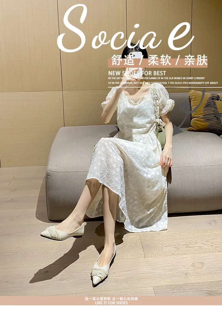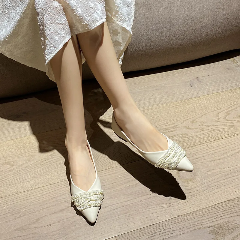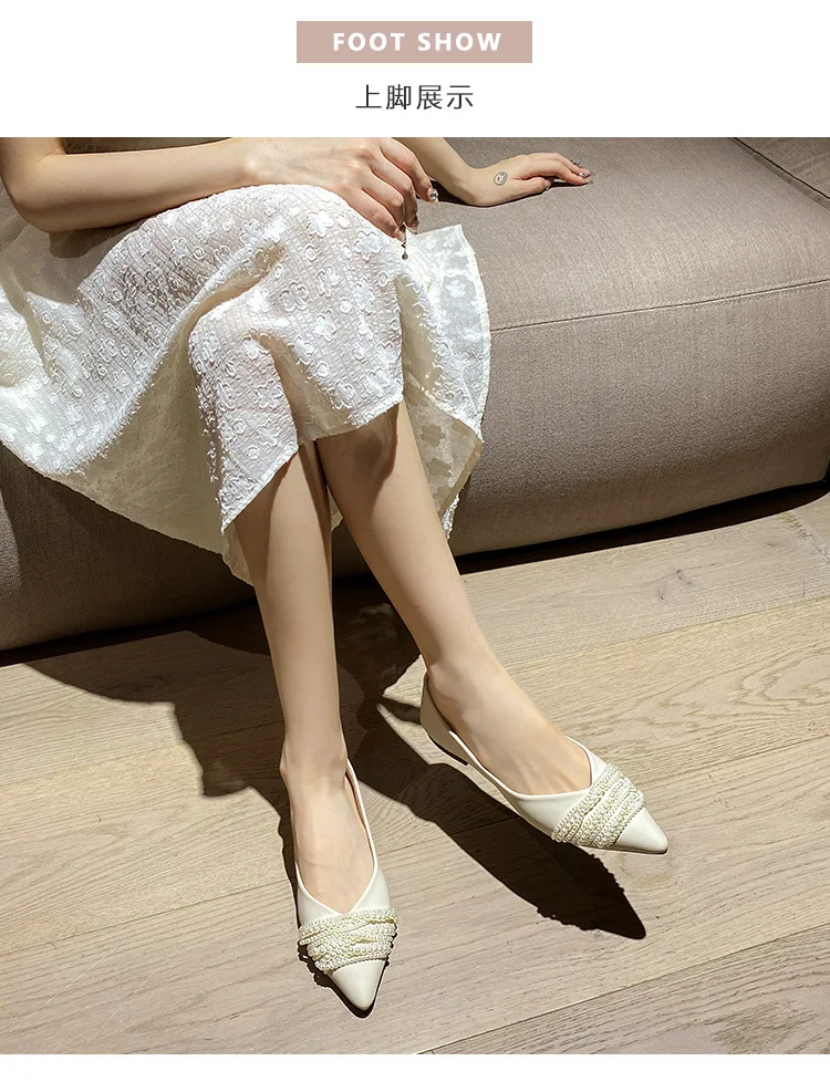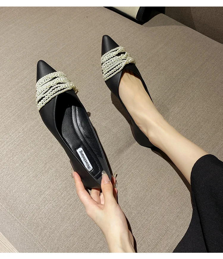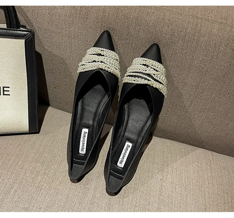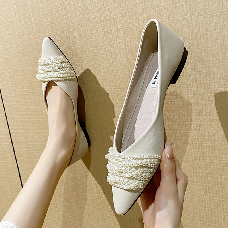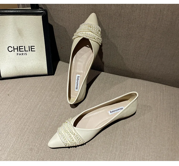 Soft Bottomed Flats Shoes Women Pearl Beaded Shoes Casual Slip On Ballerinas