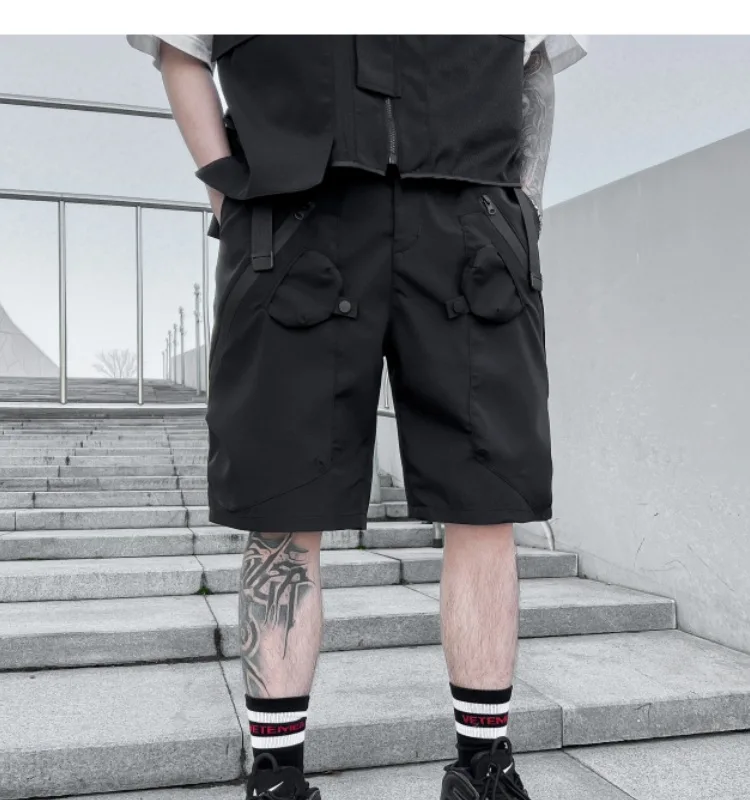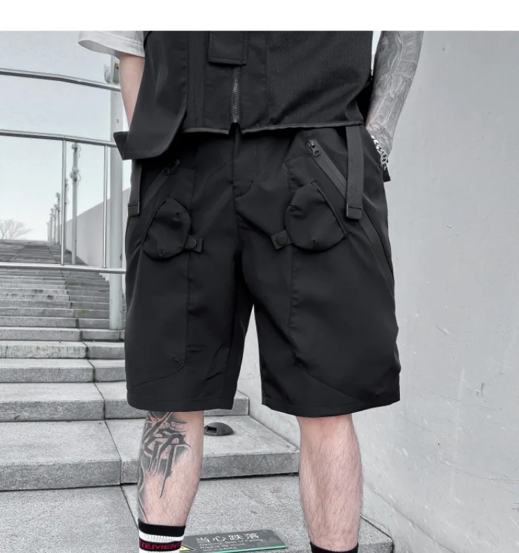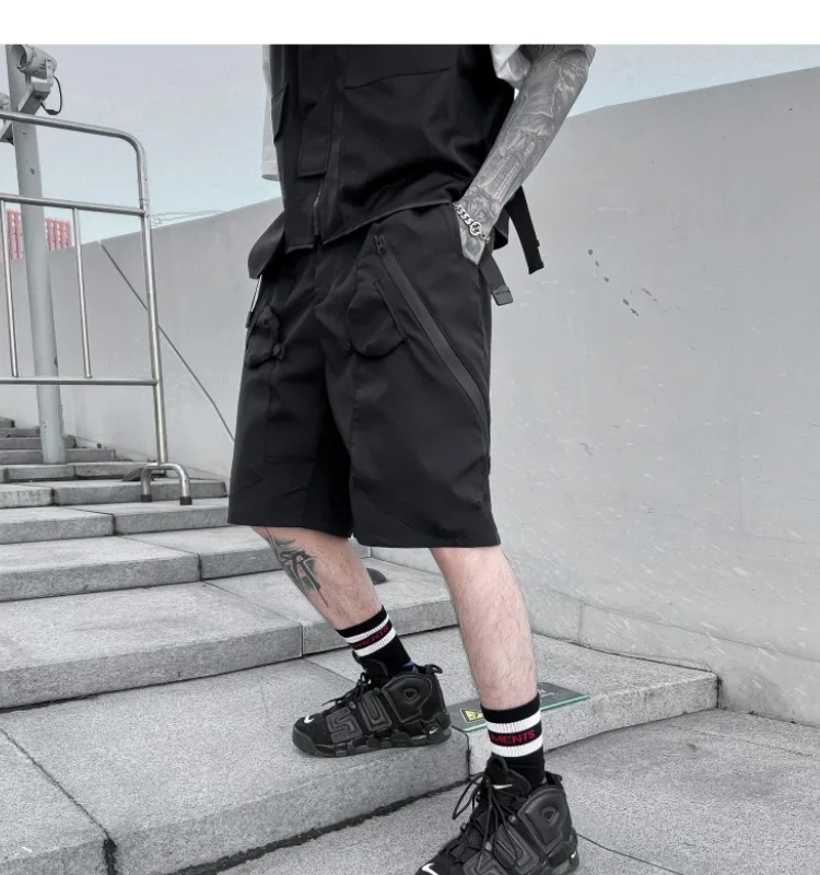 2023 summer cool Zipper decoration Straight cargo shorts men casual loose Elastic waist work shorts for men size M-XXL