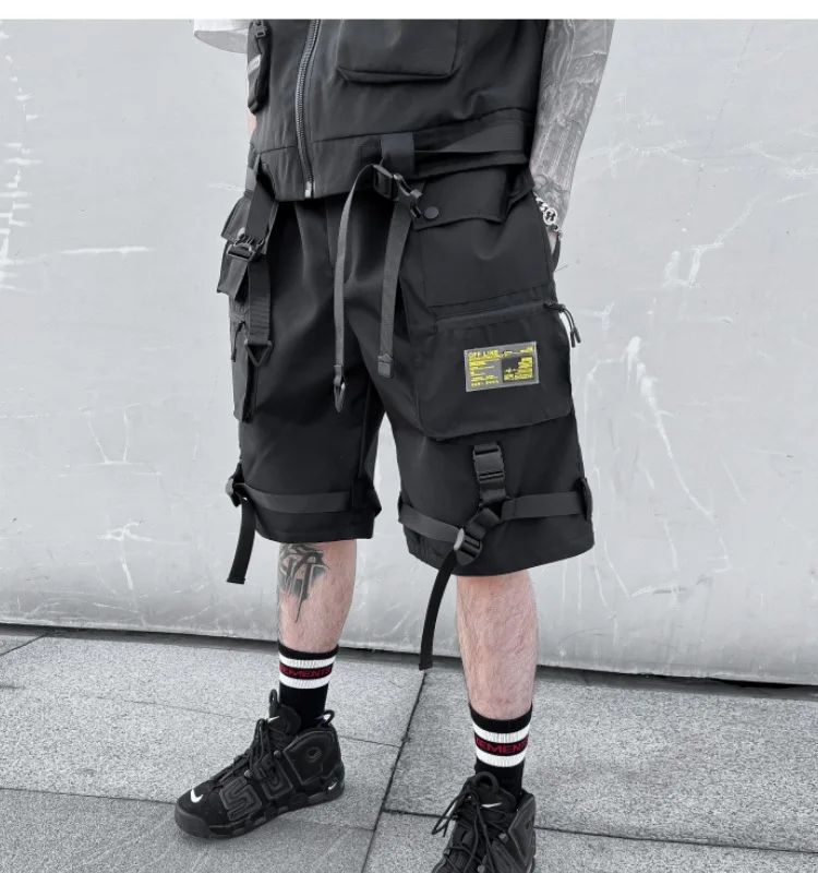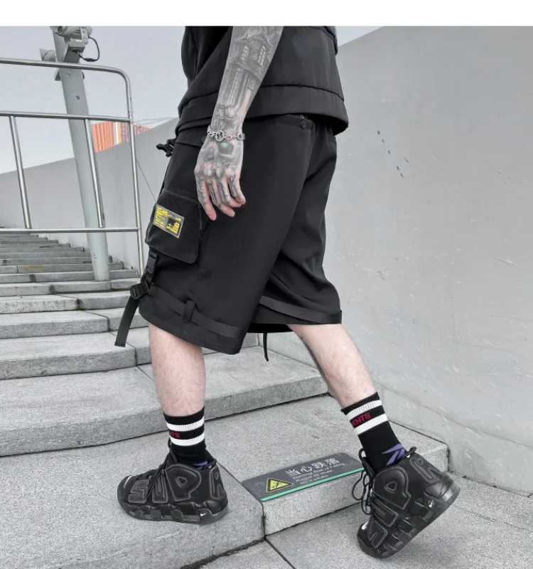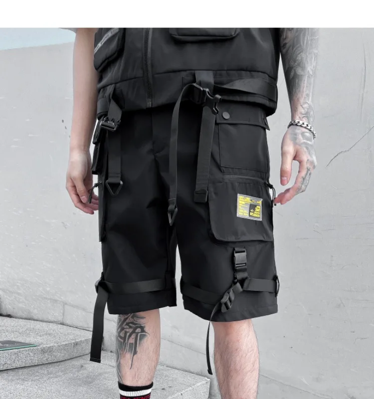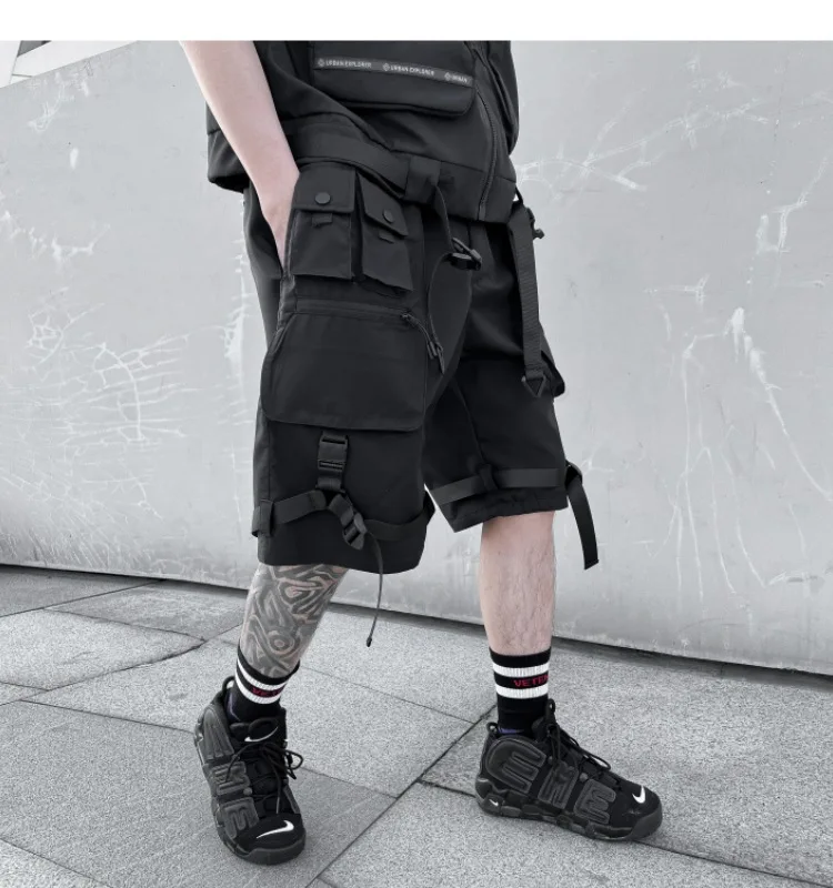 2023 summer Korean style Multiple pocket design cargo shorts men casual loose Elastic waist tooling shorts for men size M-XXL