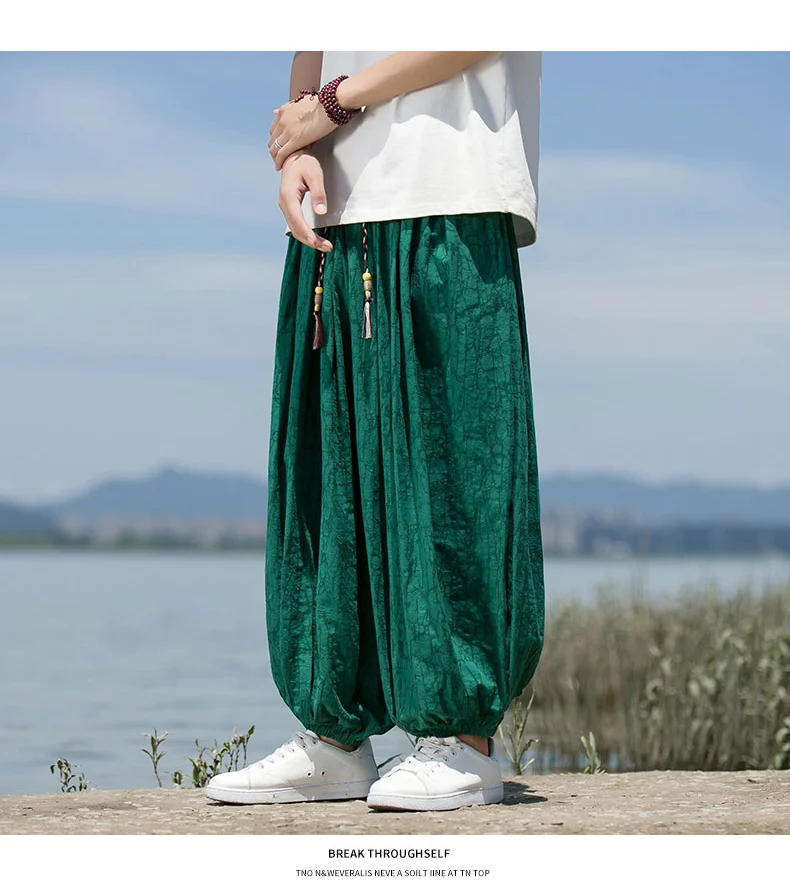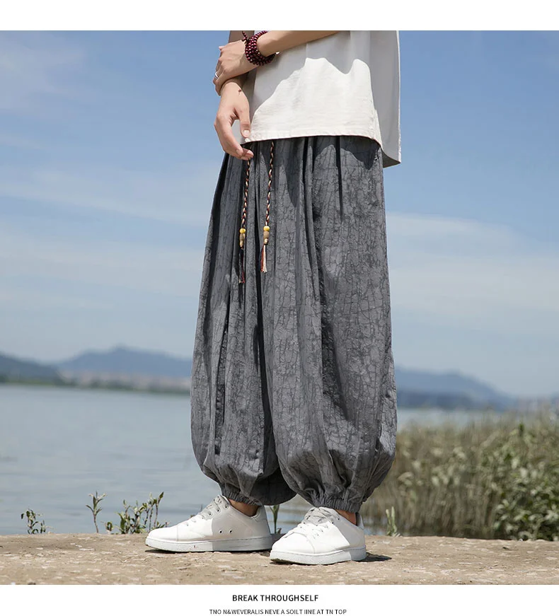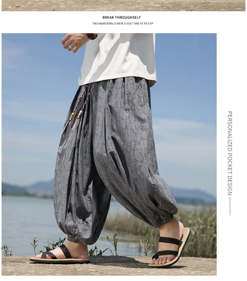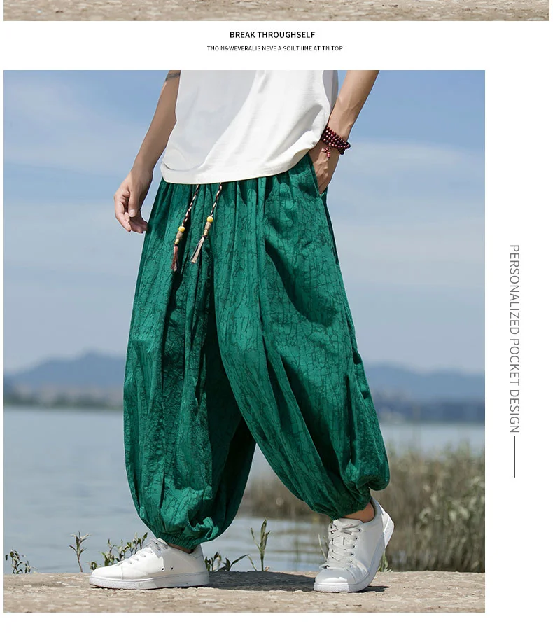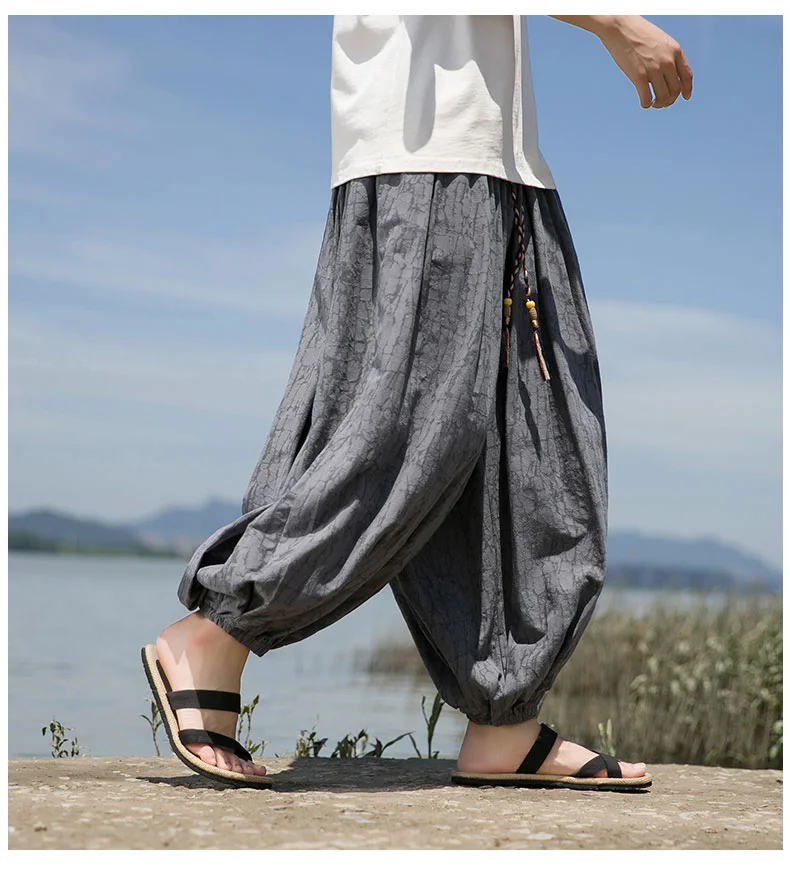 2023 summer Men Casual Pants Baggy Cotton Hip Hop Joggers Streetwear Loose Drop Crotch Trousers Harem Pants Pantalon Hombre