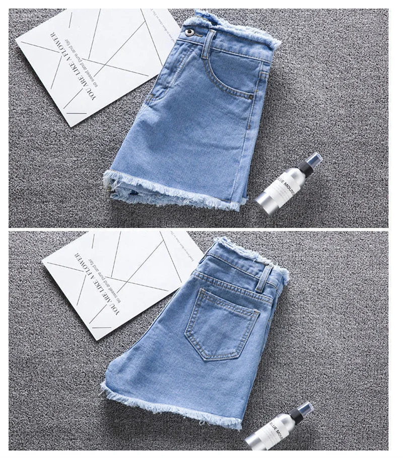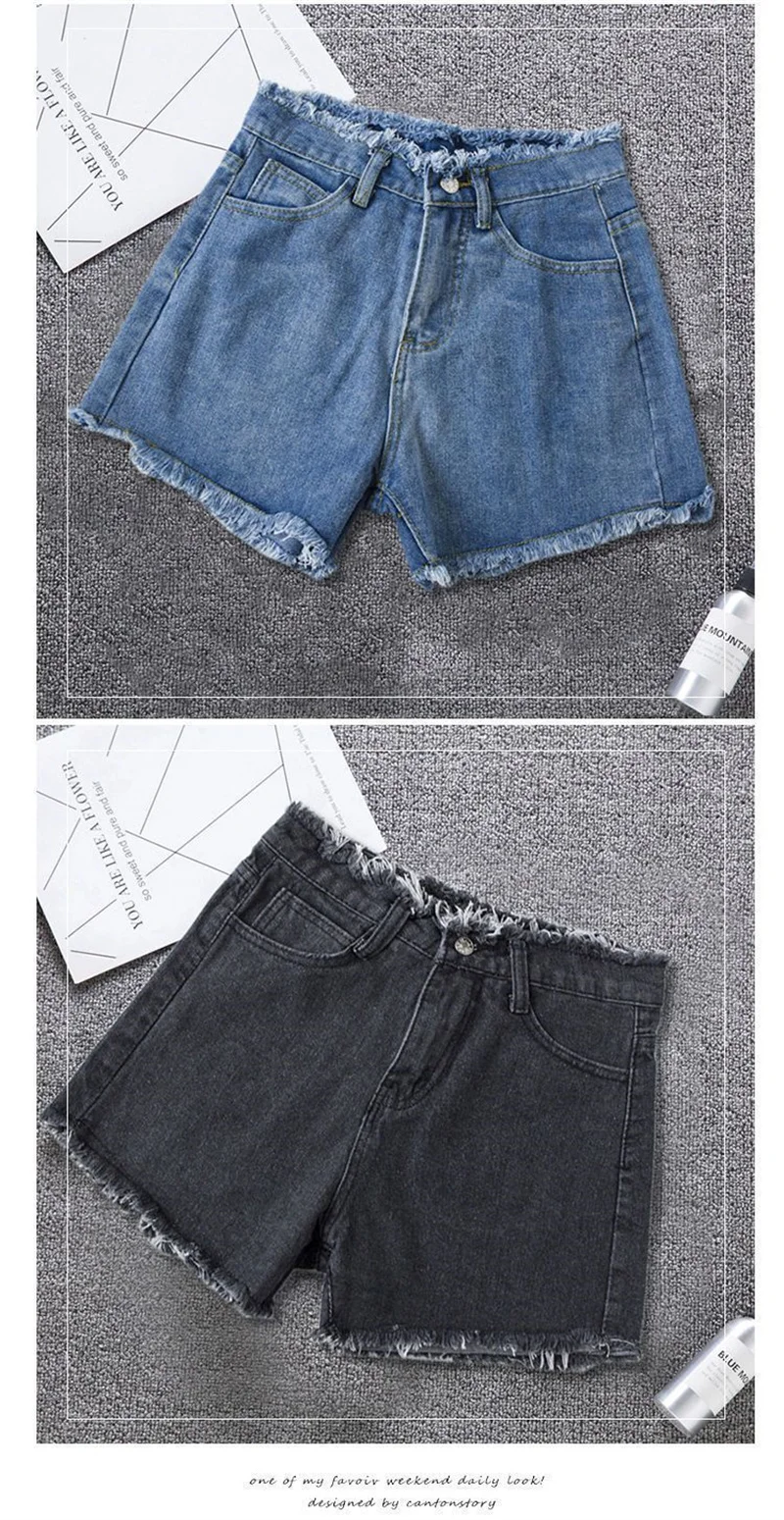 2023 Summer Woman High Haist Jeans Shorts Fashion Rough-edges Denim Short Pants Schoolgirl Casual Pants Blue Black White Jeans
