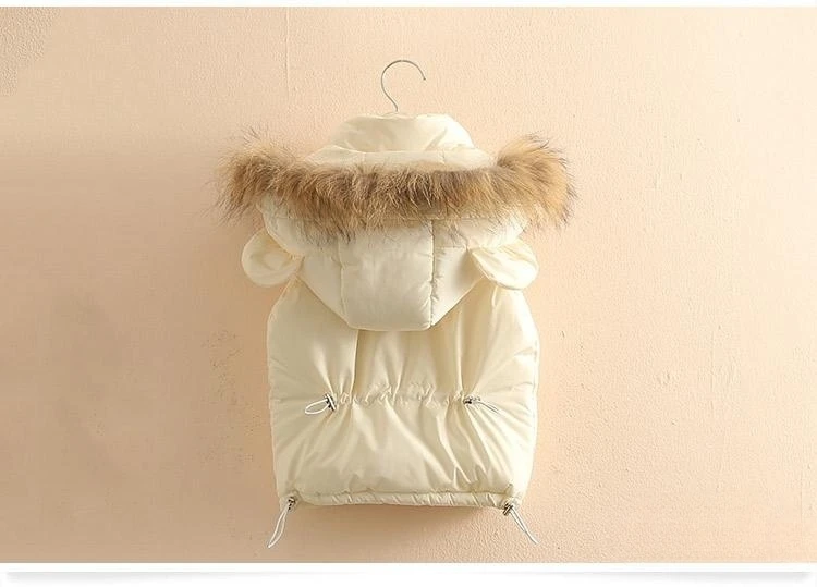 2023 Winter 2-10 Years Animal Ear Faux Fur Hat Solid Color Thickening Plus Velet Outwear Kids Baby Girl Hooded Vests Waistcoats