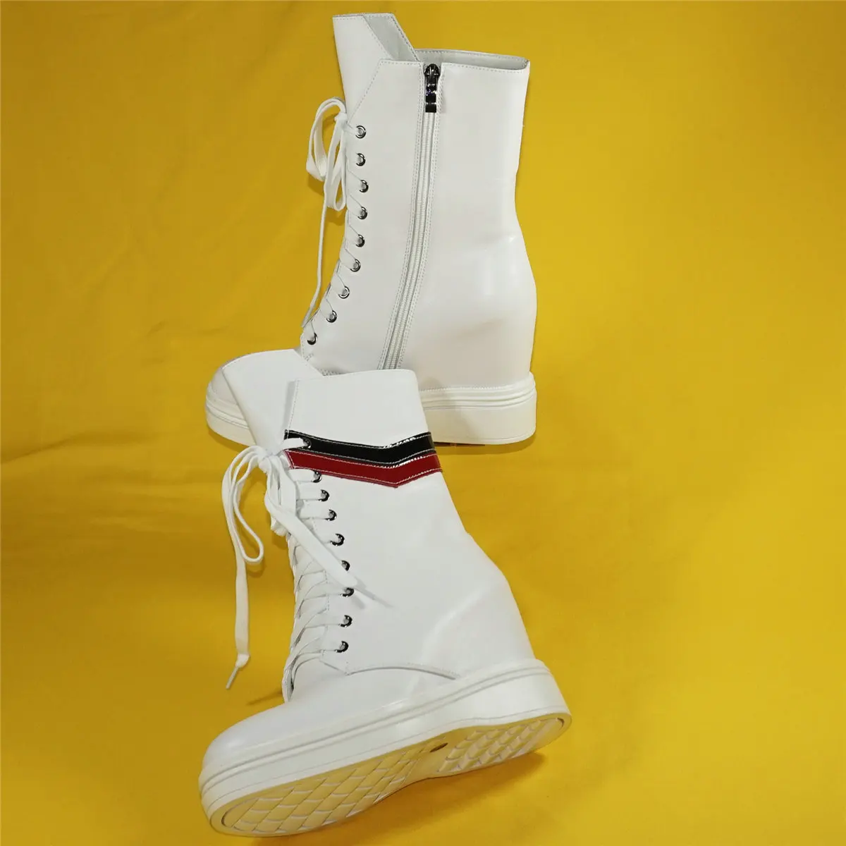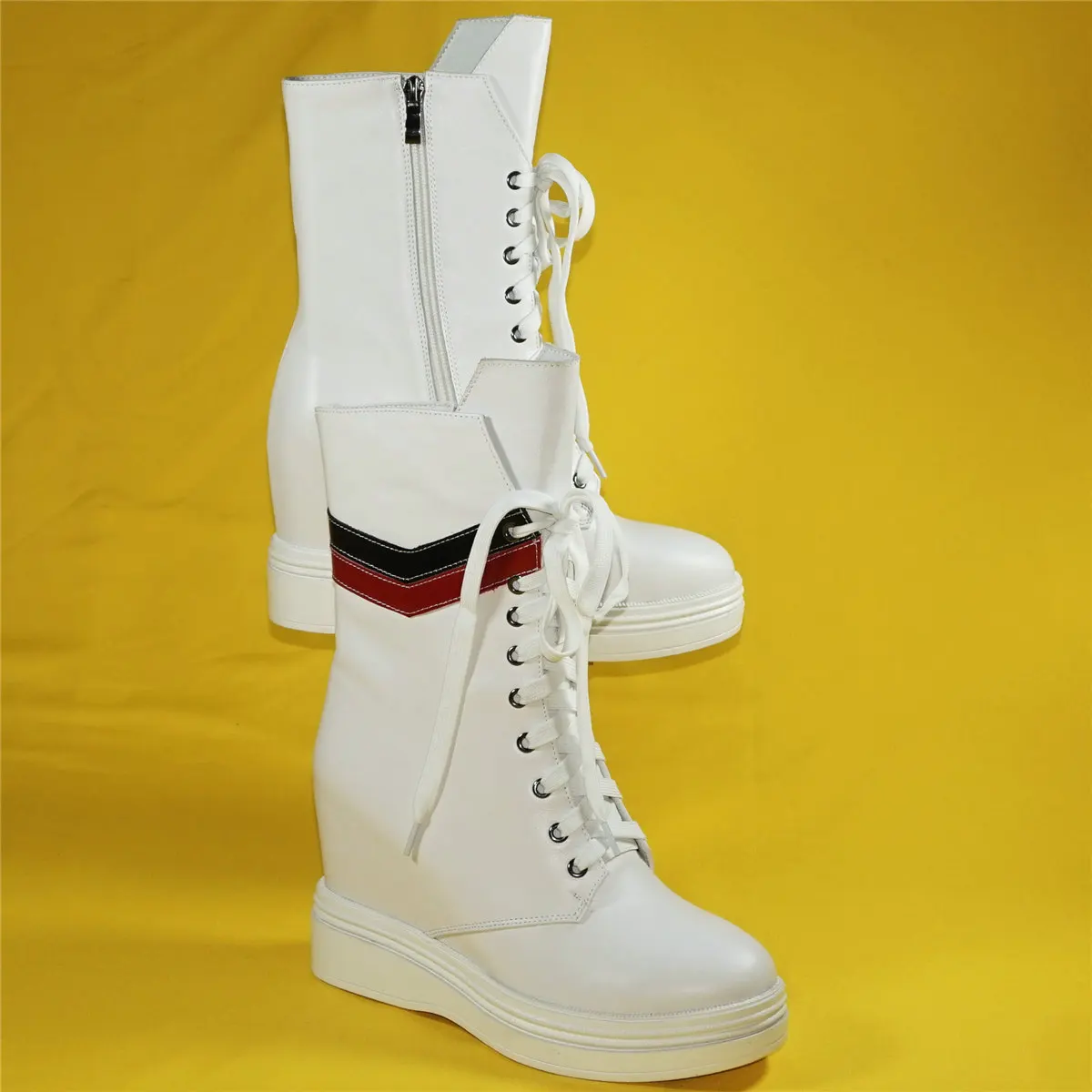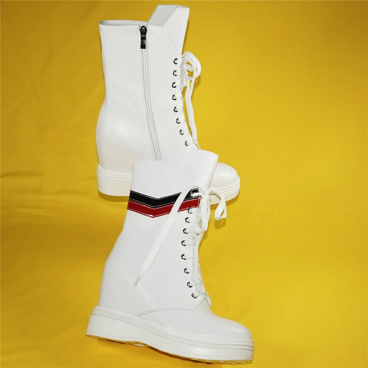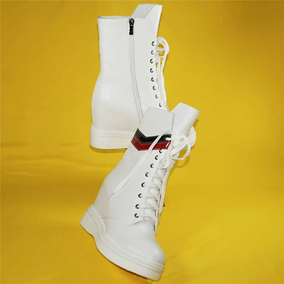 2023 Winter Fashion Sneakers Women Lace Up Genuine Leather High Heel Military Boots Female Round Toe Platform Pumps Casual Shoes