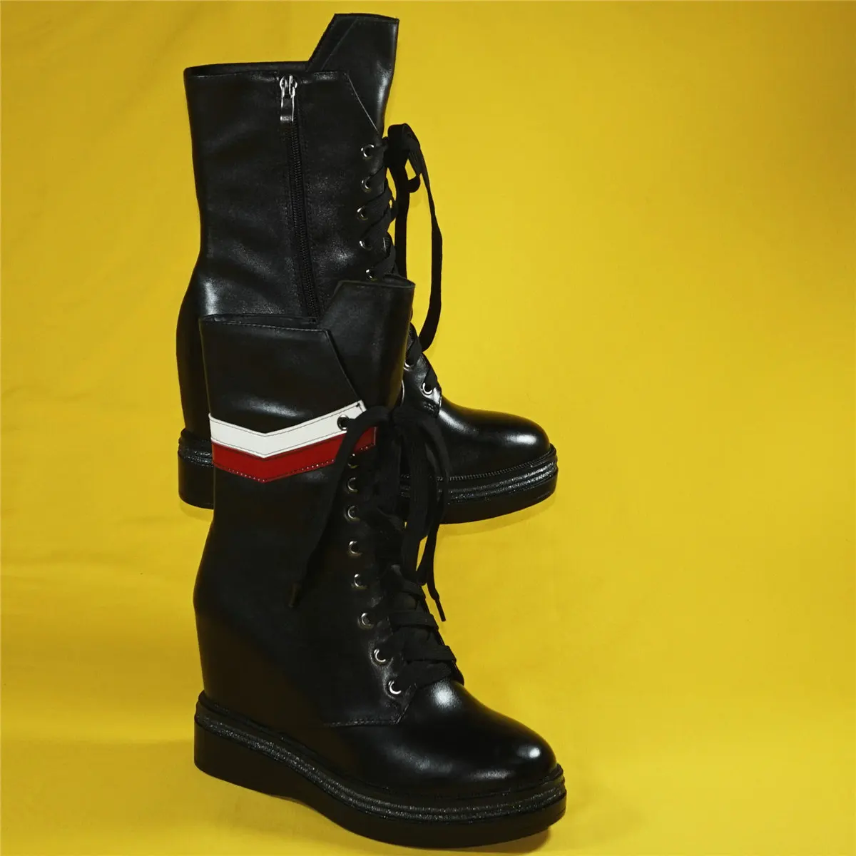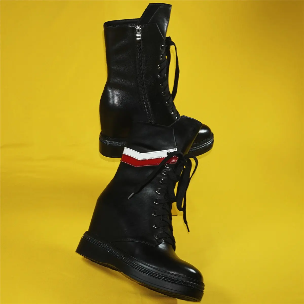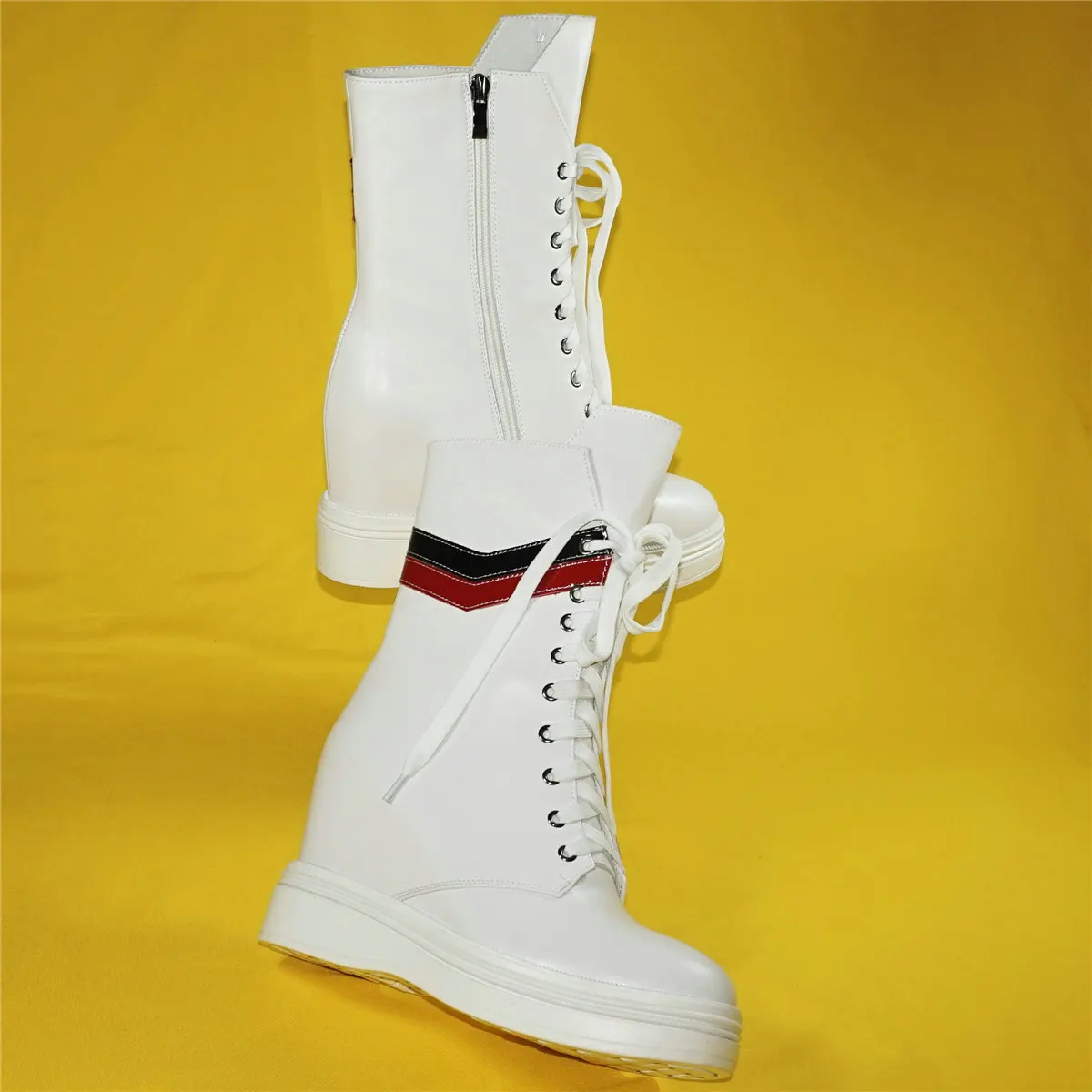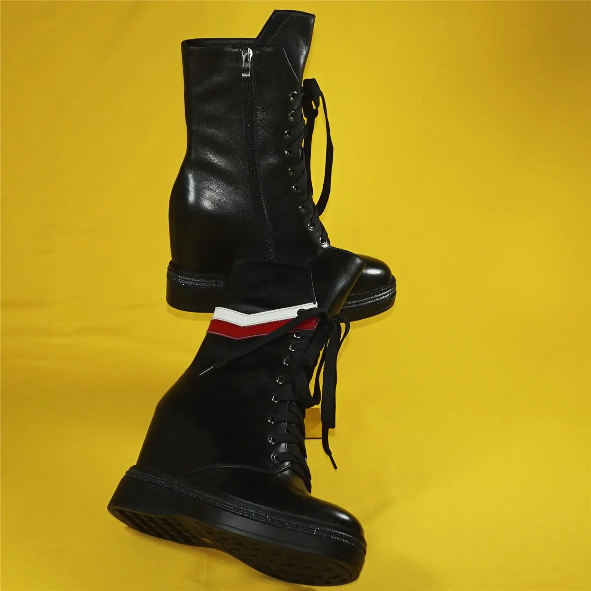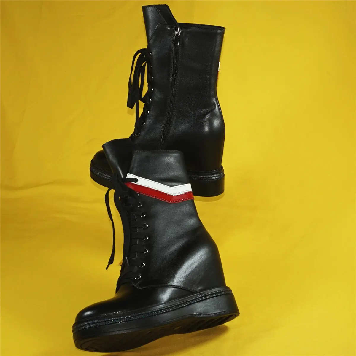 2023 Winter Fashion Sneakers Women Lace Up Genuine Leather High Heel Military Boots Female Round Toe Platform Pumps Casual Shoes