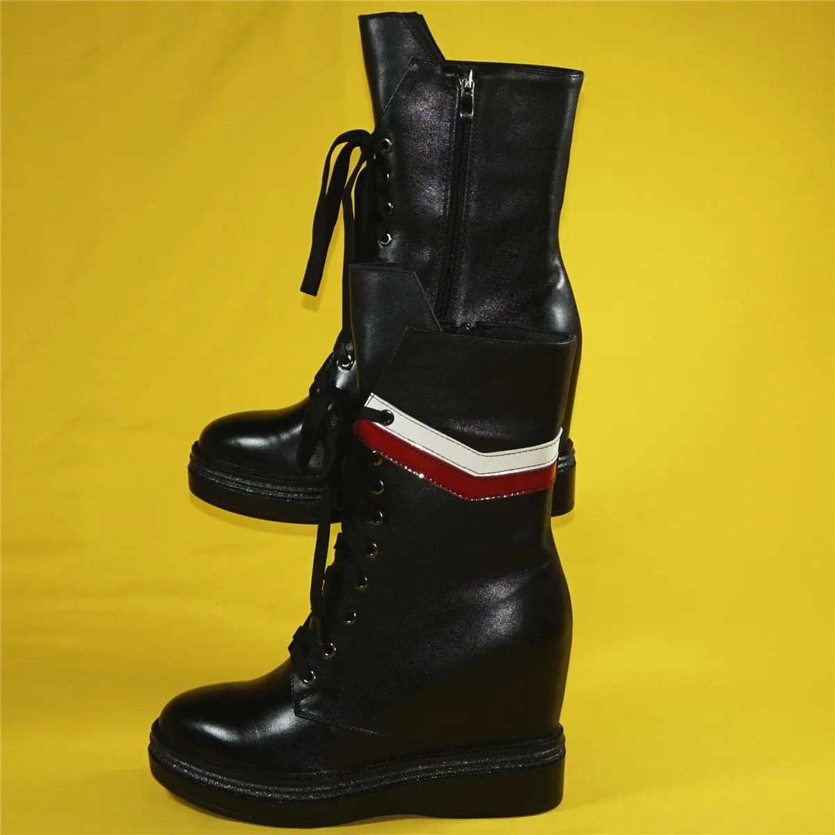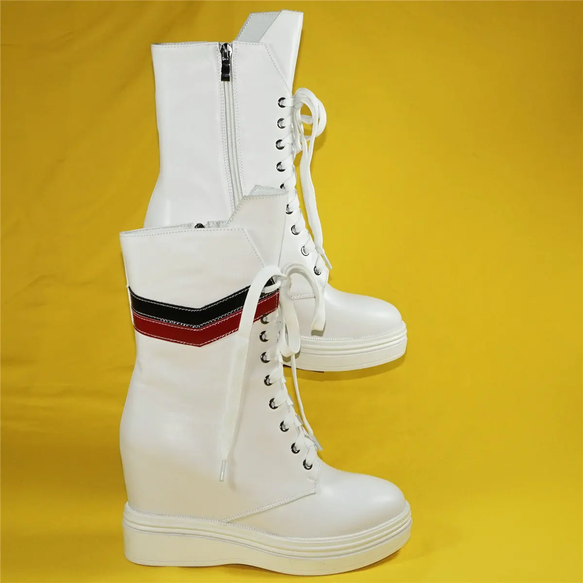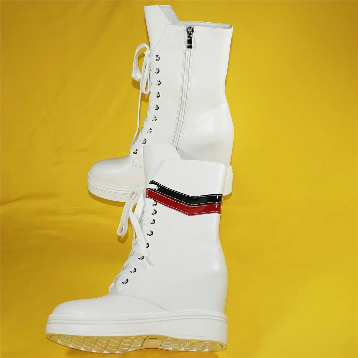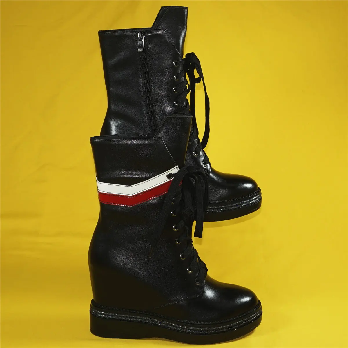 2023 Winter Fashion Sneakers Women Lace Up Genuine Leather High Heel Military Boots Female Round Toe Platform Pumps Casual Shoes
