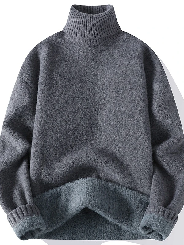2023 Winter Men Warm Turtleneck Sweaters Mens Knitted High Neck Thick Pullovers Autumn Male Solid Color Casual Knitwear Sweaters