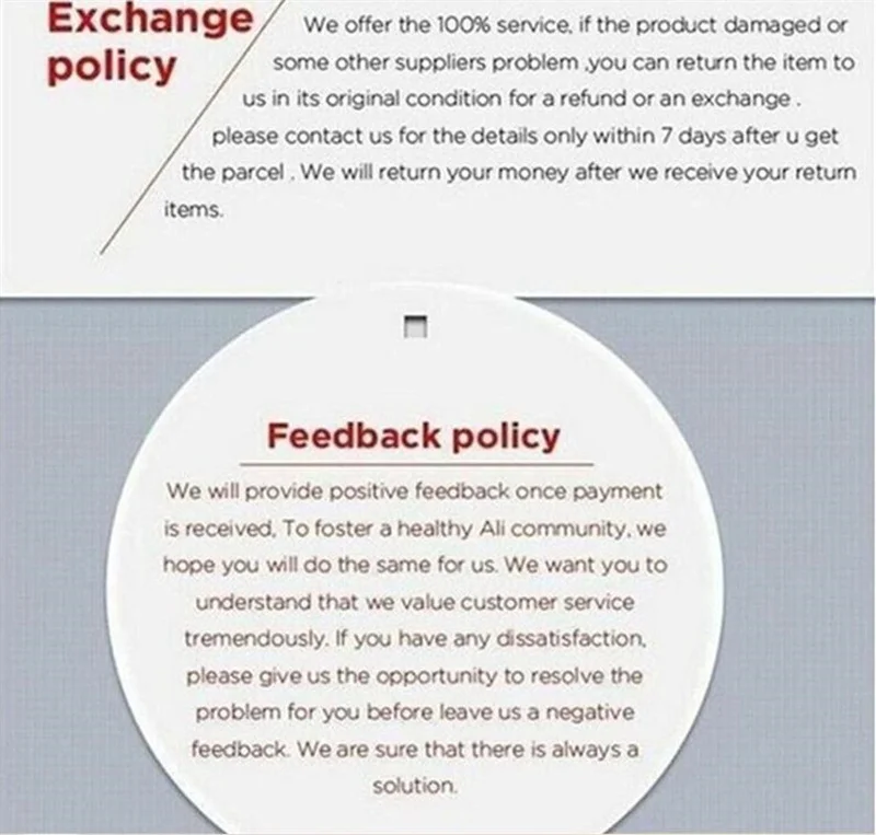 • If you did not receive the product within the guaranteed time( 45 days not including 2-5 day processing) you can request a refund or a reshipment.