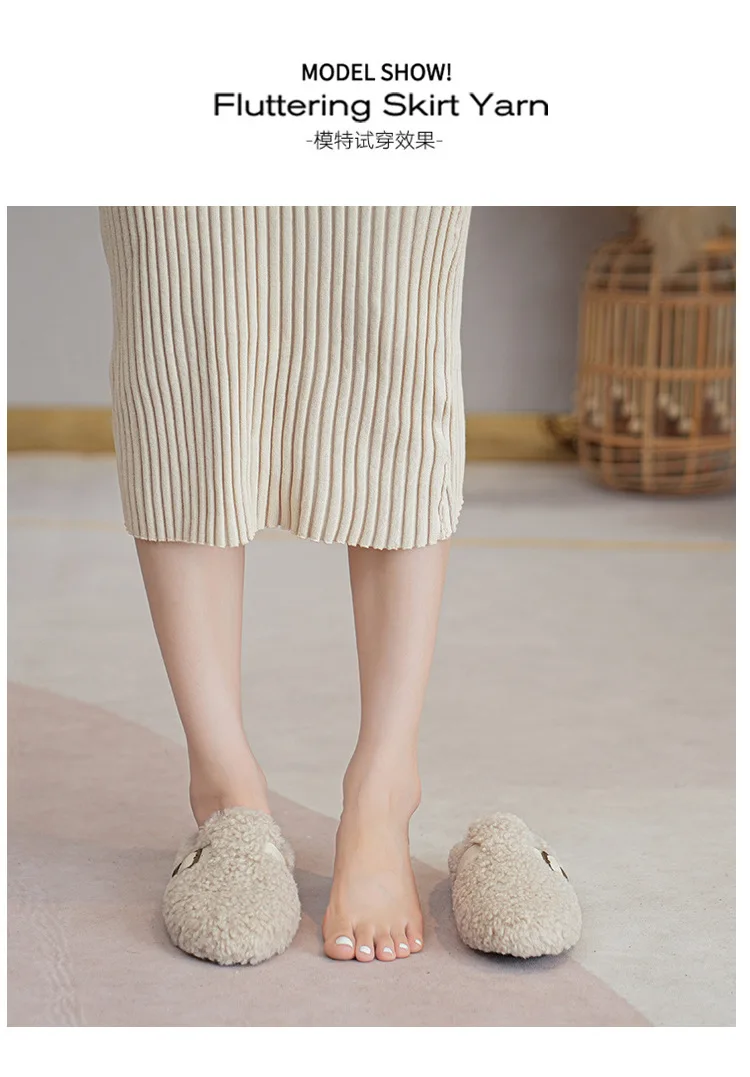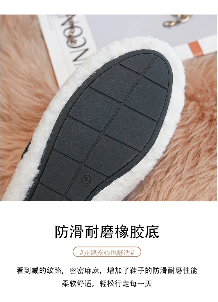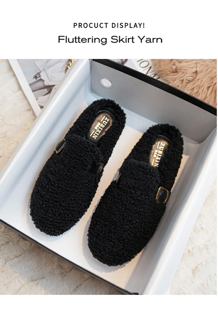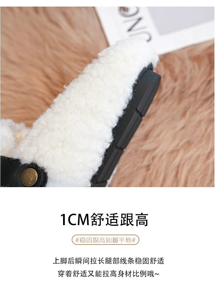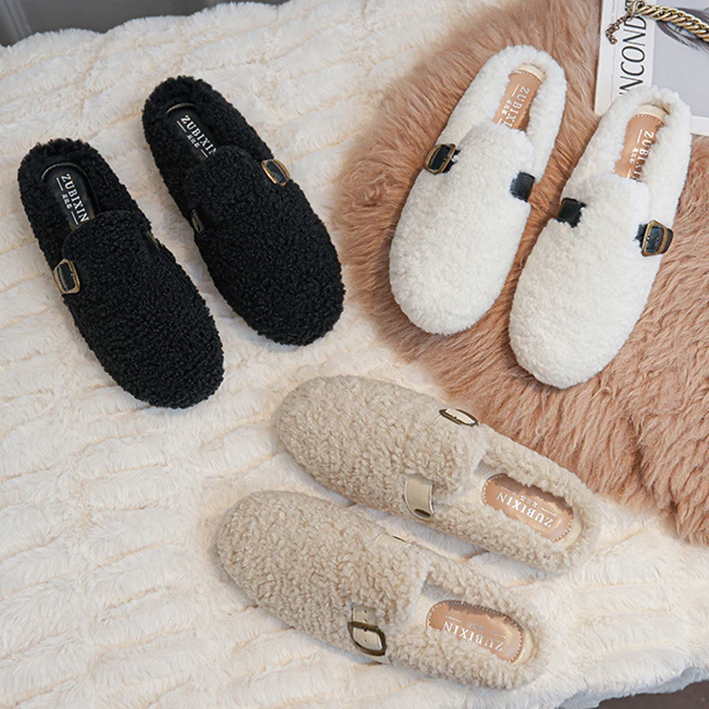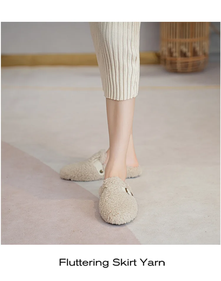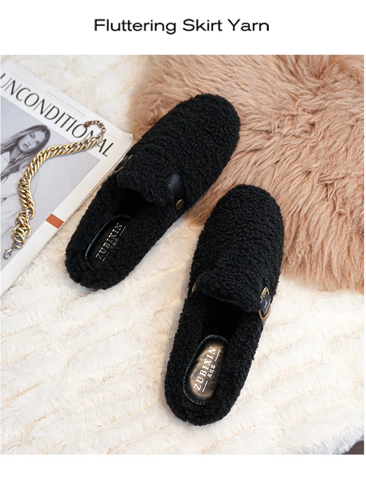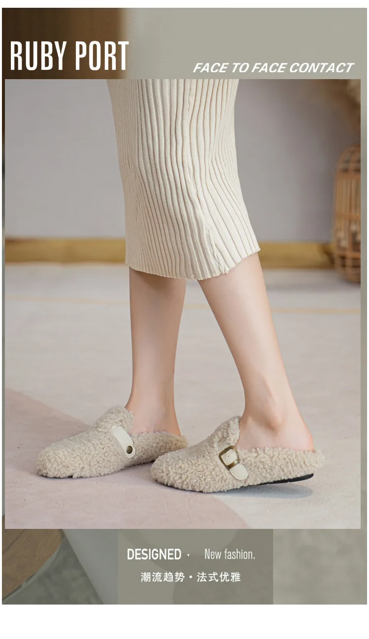 2023 Women Belt Buckle Wool Pantuflas Shoes Flats Slip On Sheep Fur Slippers Ladies Home Slides Femmes Cotton Lambswool Mules