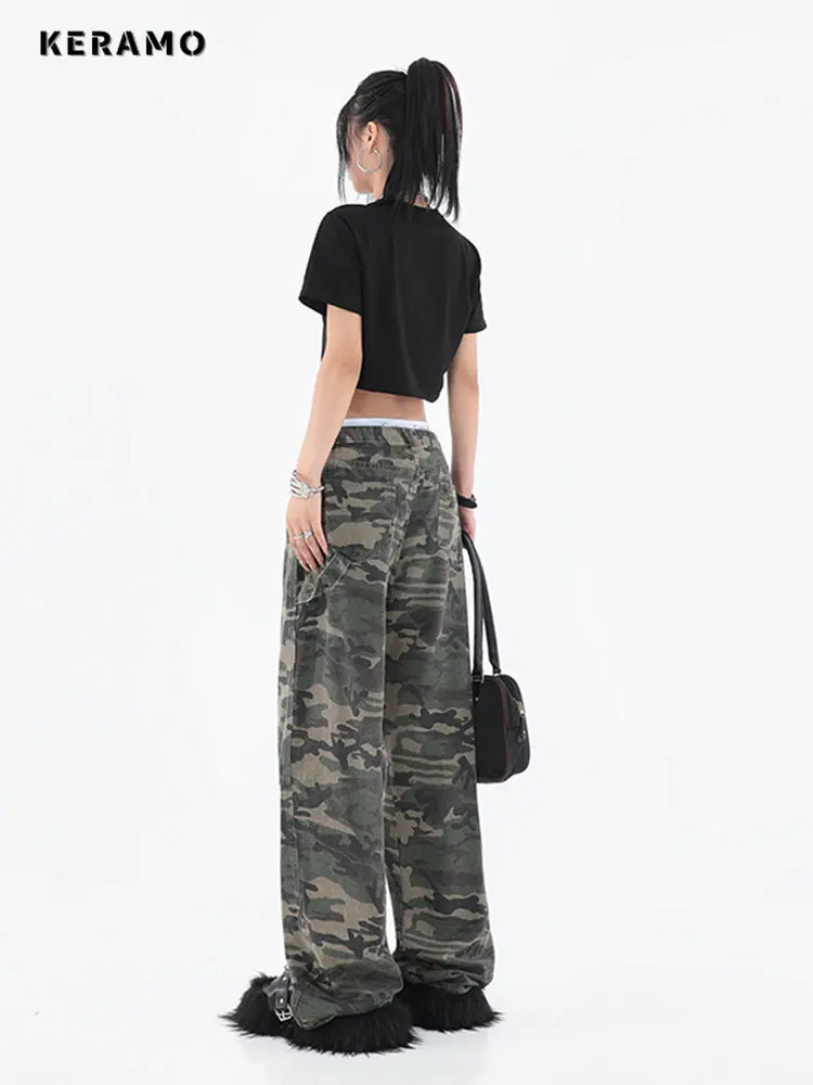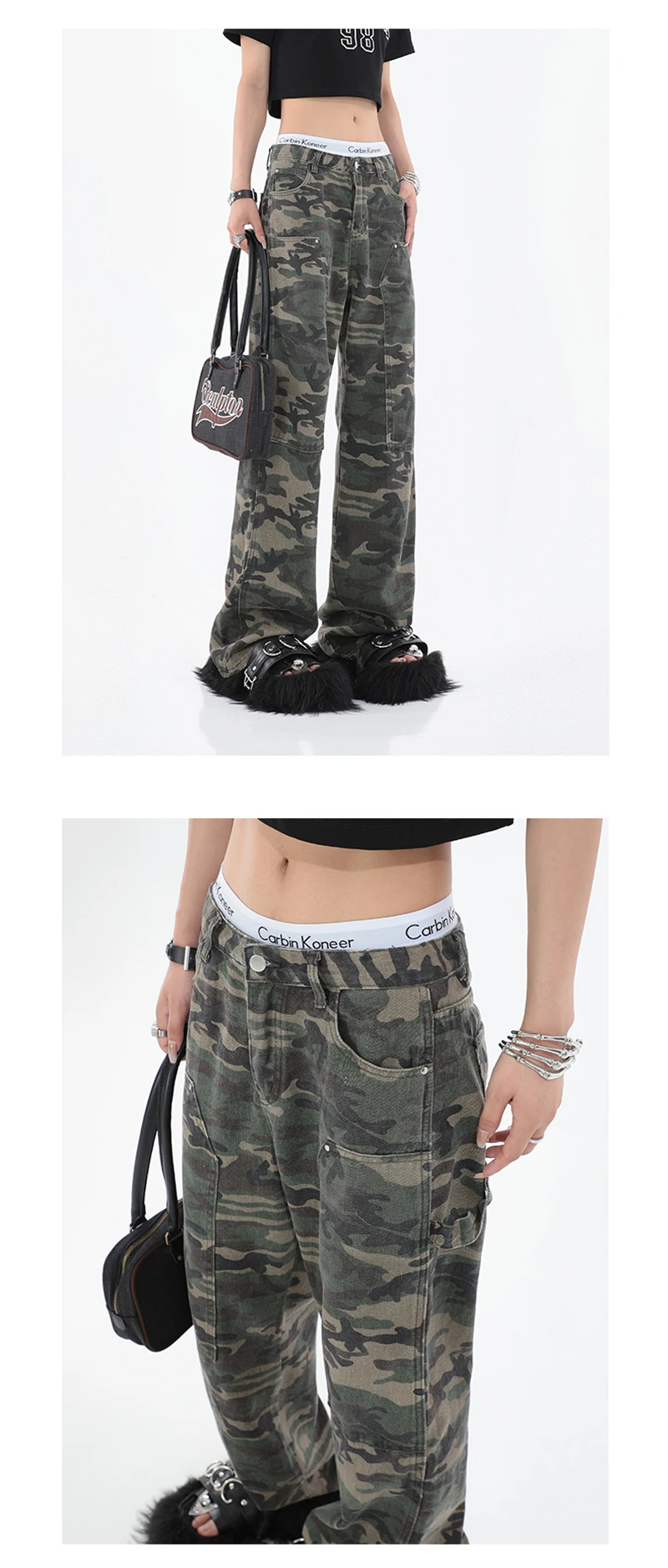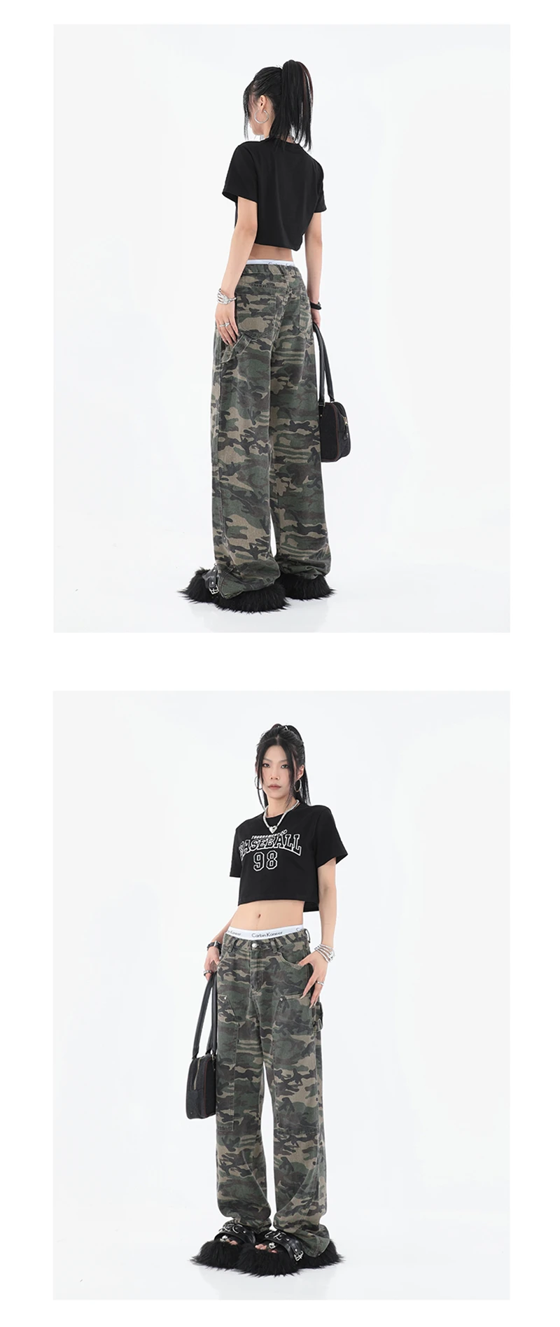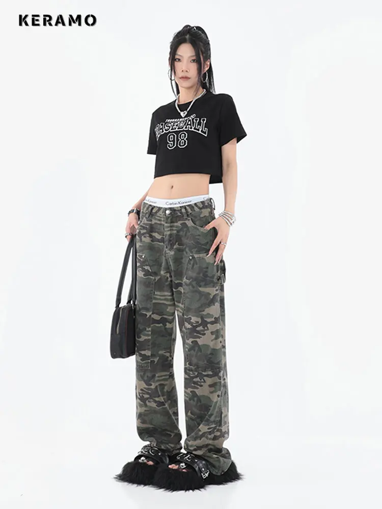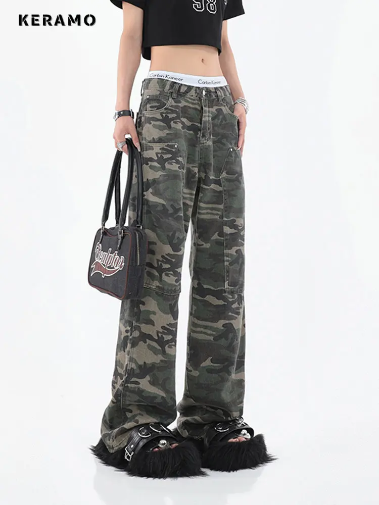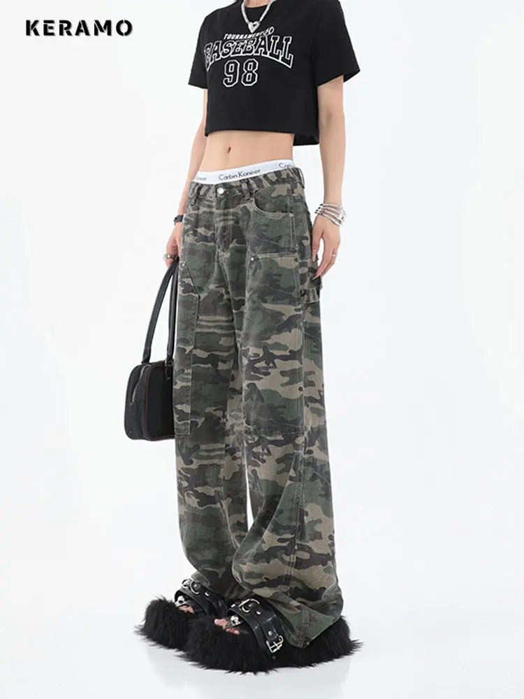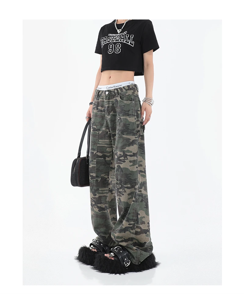 2023 Women Fashion Camouflage Jeans Loose High Waist Cargo Pants Straight Jeans Baggy Pants Casual Denim Trousers Feamle Y2k