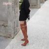 Product Name:2022 Brown Stretch Thigh Boots Women’s Luxury Pointed Toe Sexy Free Shipping Patent Leather Thin High Heel Party Sexy Shoes