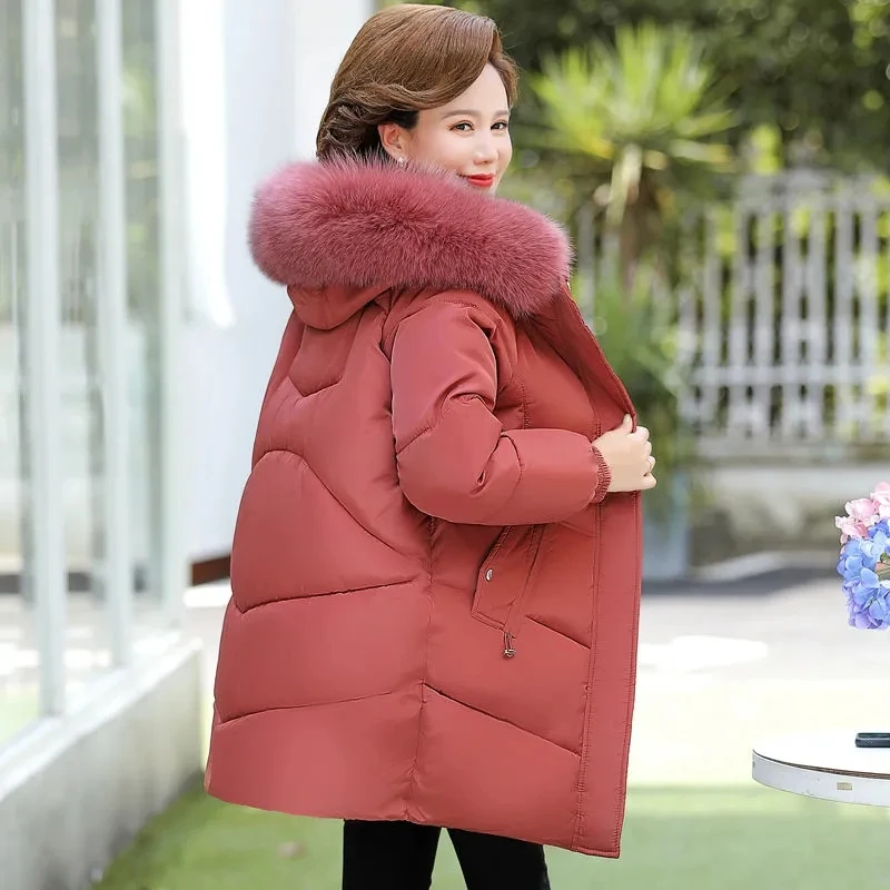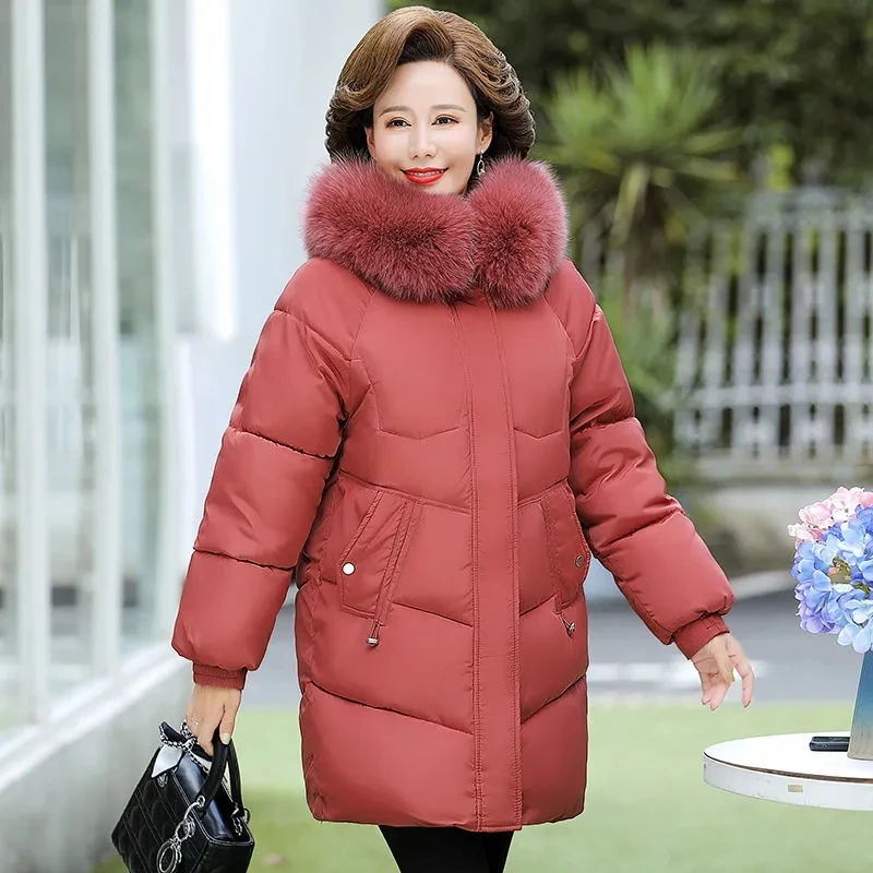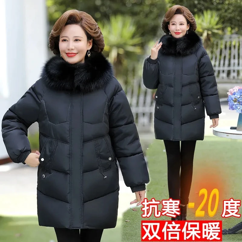 2024 Middle-Aged Mother Down Cotton-Padded Jacket Elderly Women’s Warm Winter Coat With Hooded Plus Velvet Thick Parkas Women