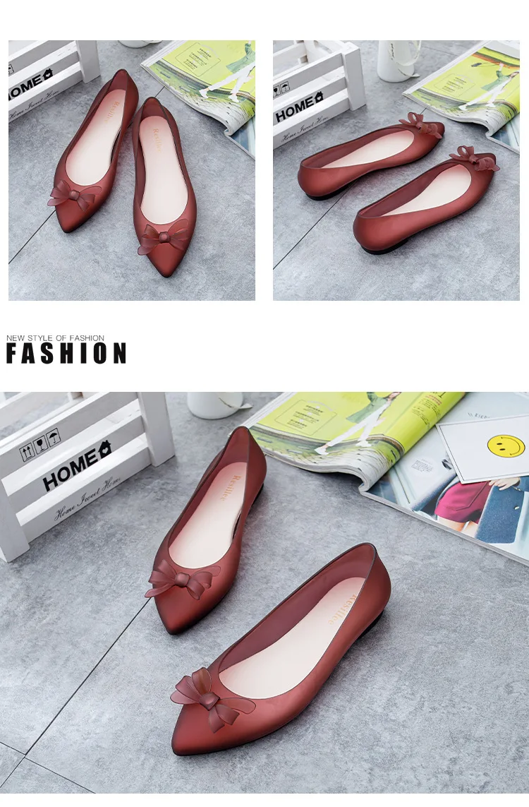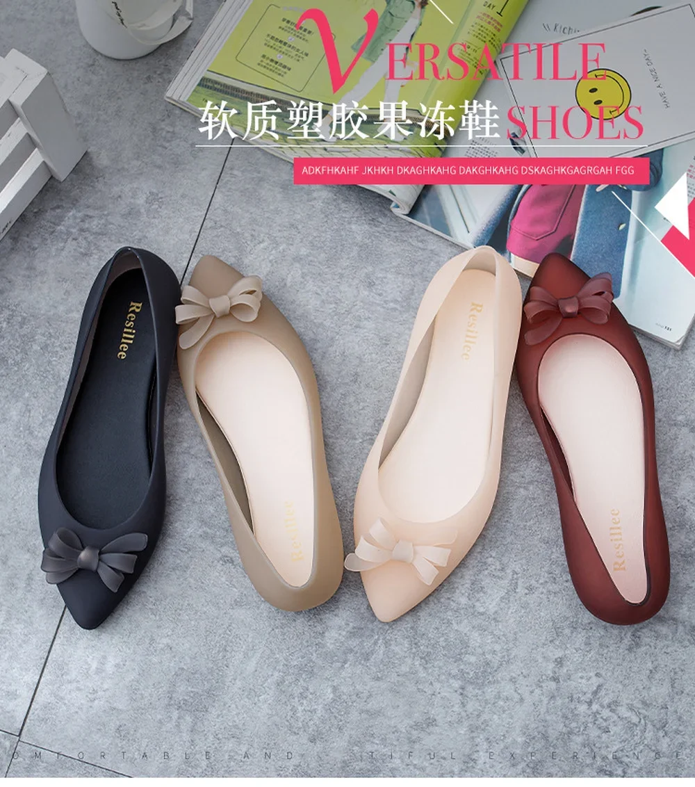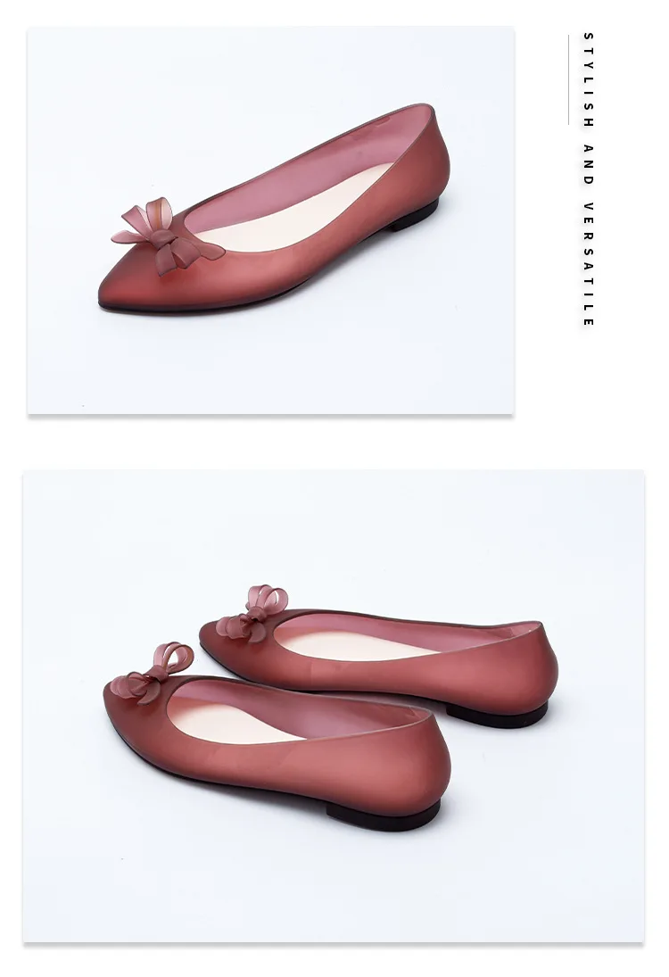 2024 new flat heel pointed jelly rain boots women’s shallow mouth soft bottom beach shoes waterproof non-slip single shoes women