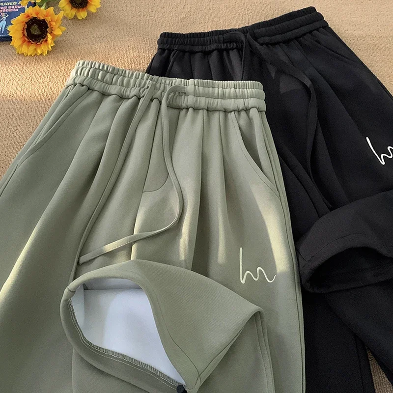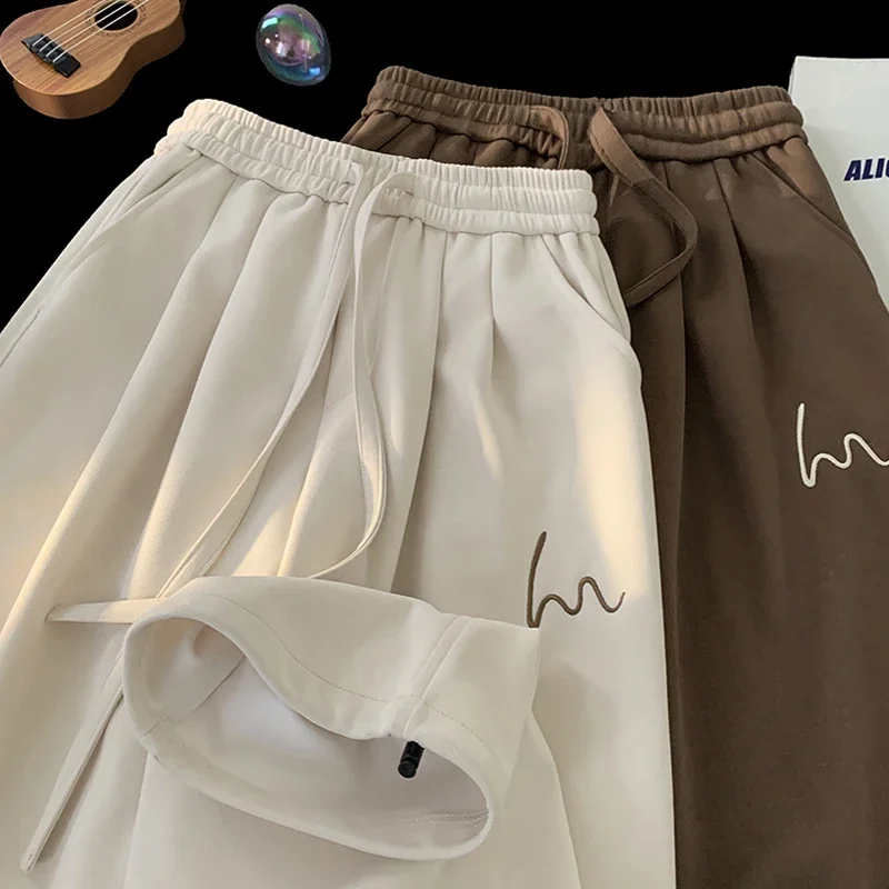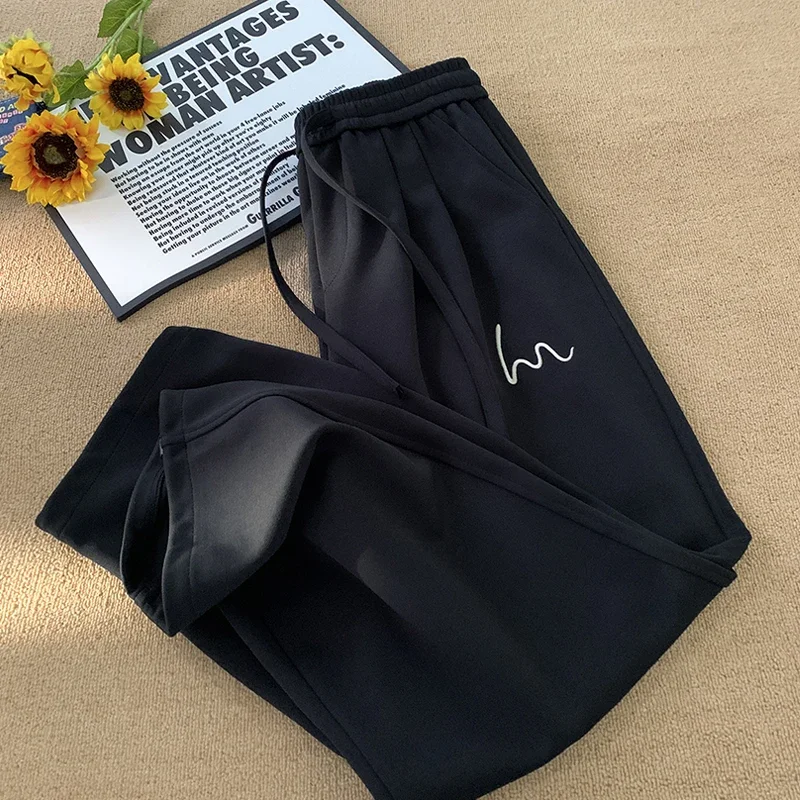 2024 New Men’s Casual Pants Korean Street Wave Pattern Embroidery Loose Sweatpants Daily Sports Trousers Unisex