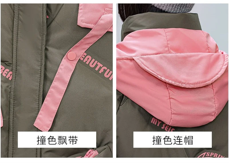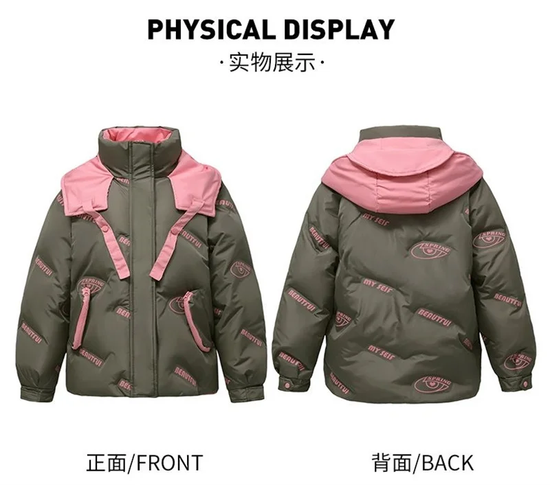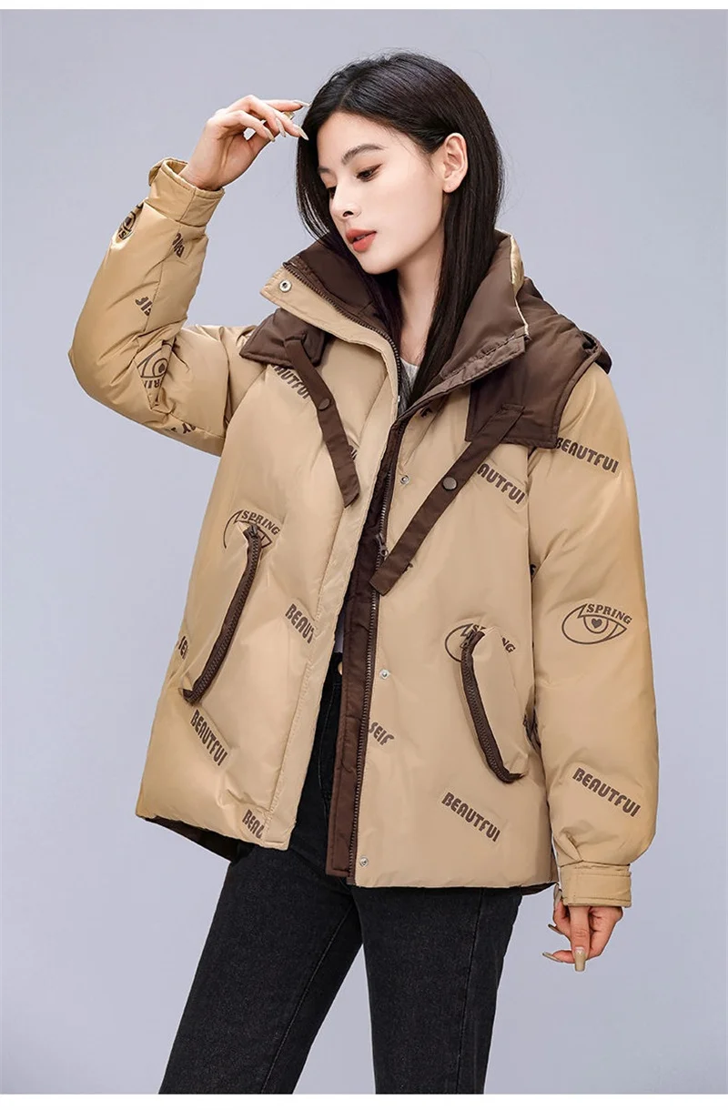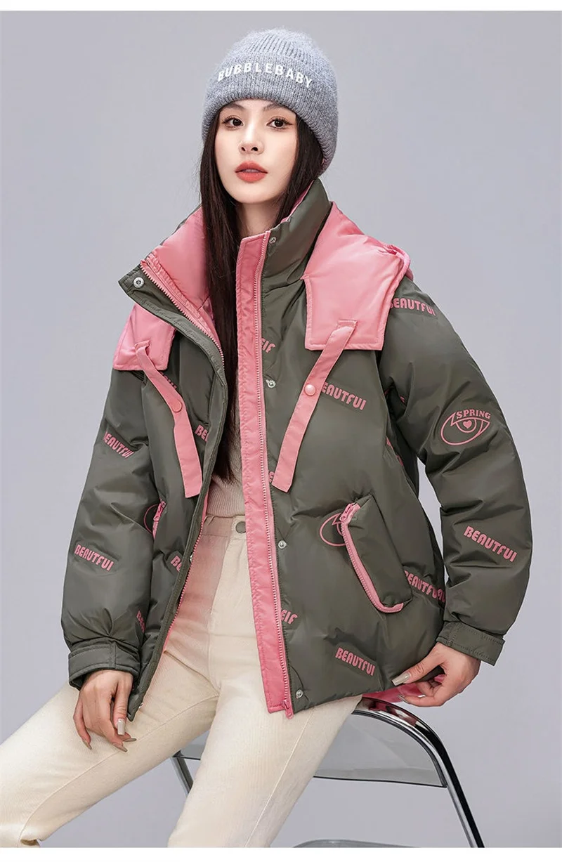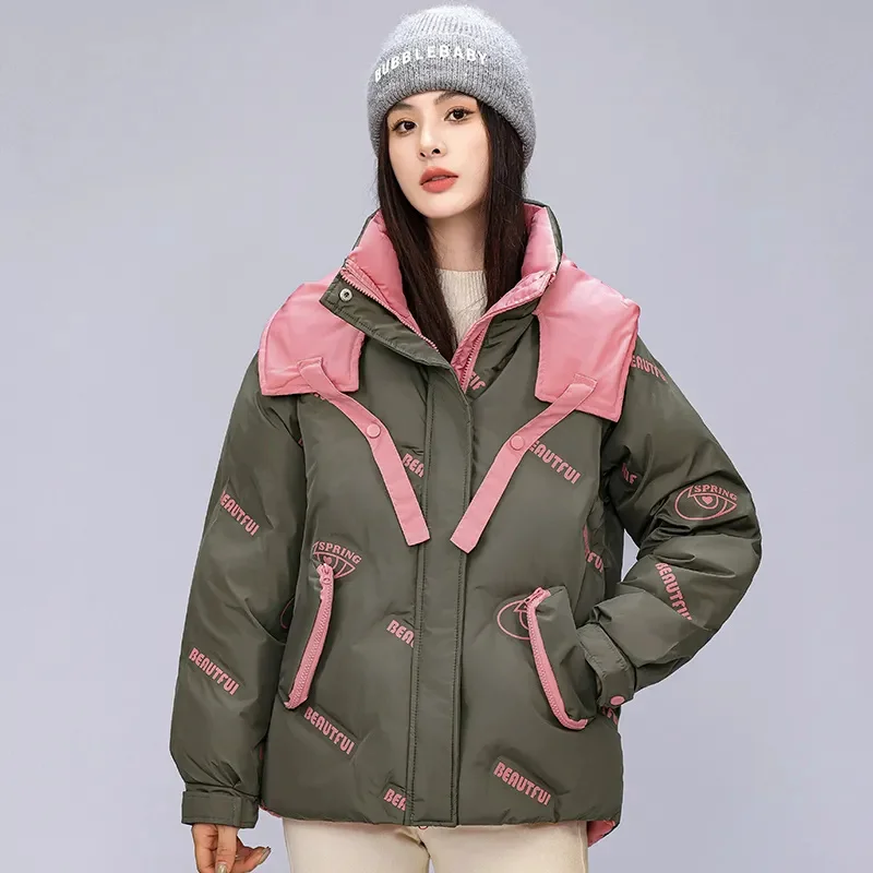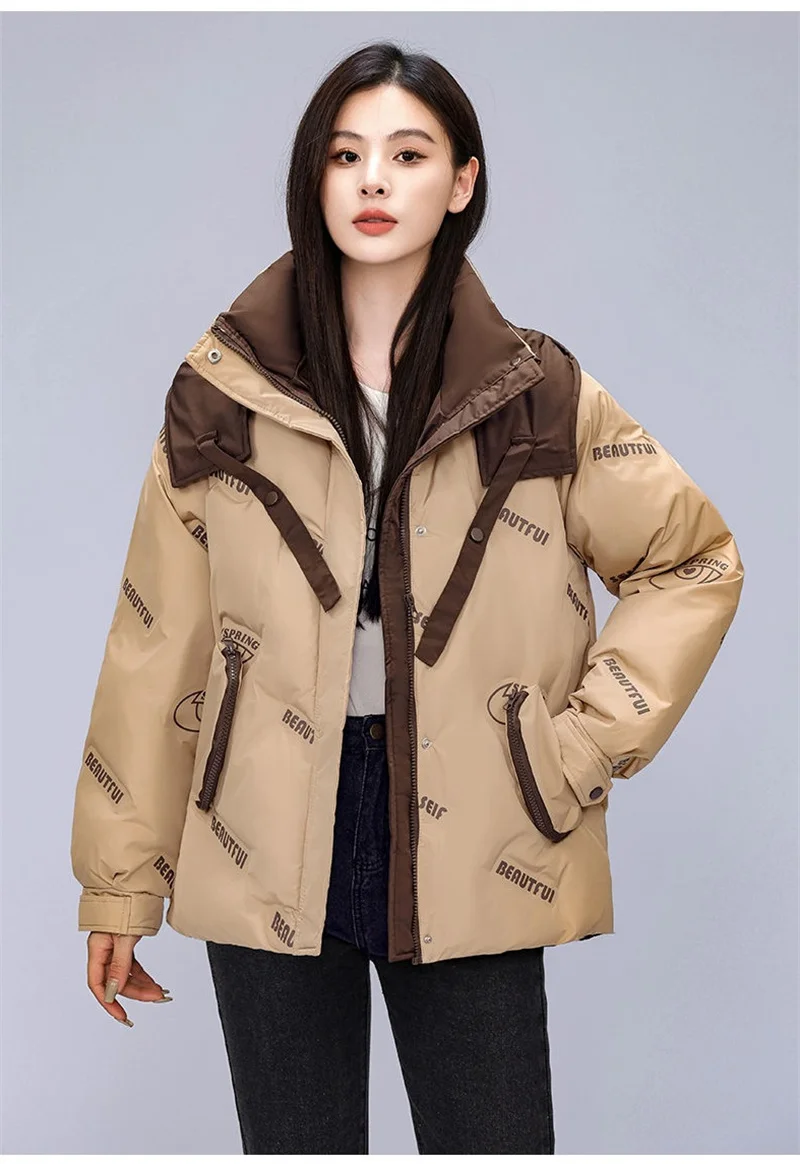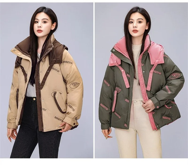 2024 New Winter Printed letters Down Cotton Padded Jacket Women Loose Warm Thicken Bread Coat Hooded Jacket Women Parkas Tops