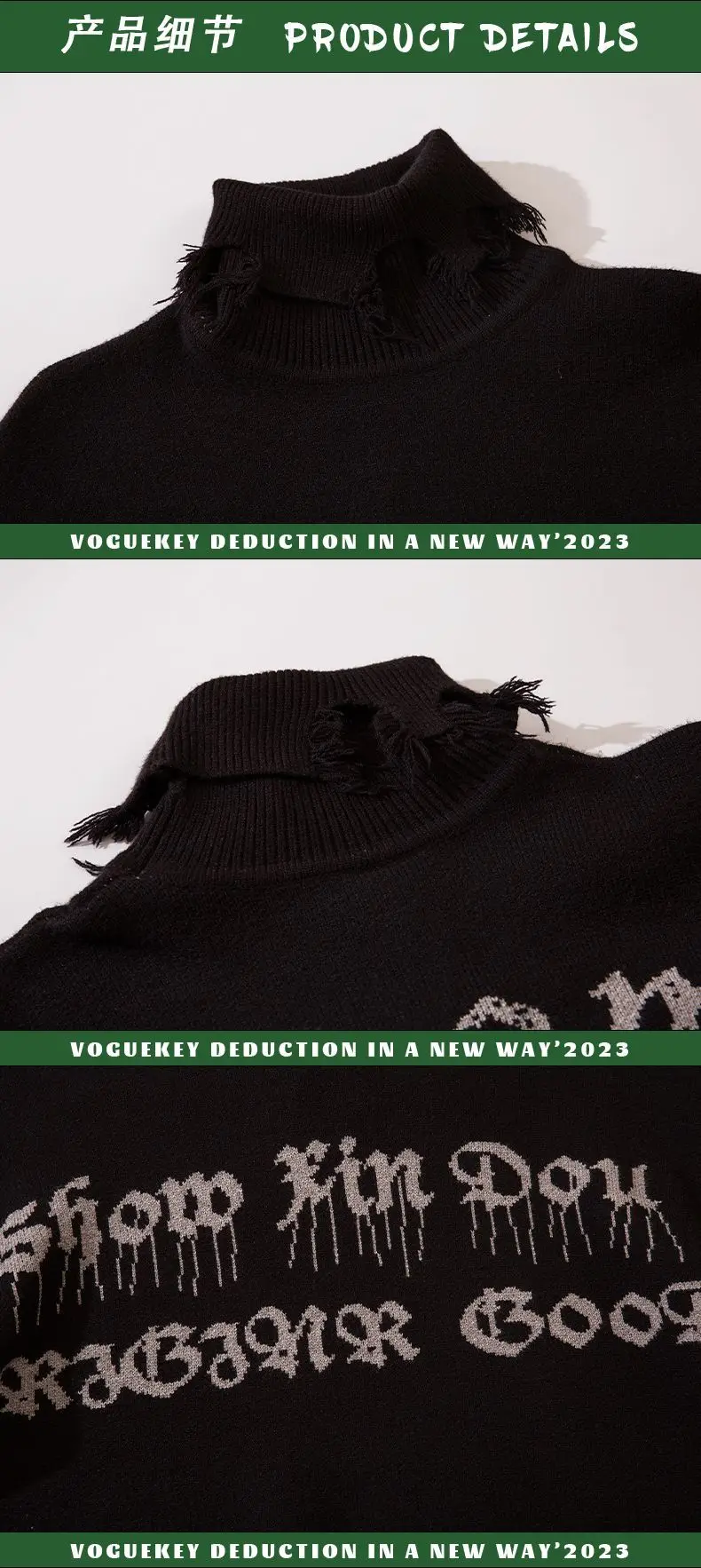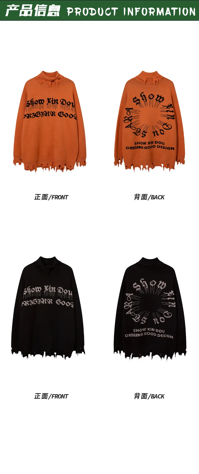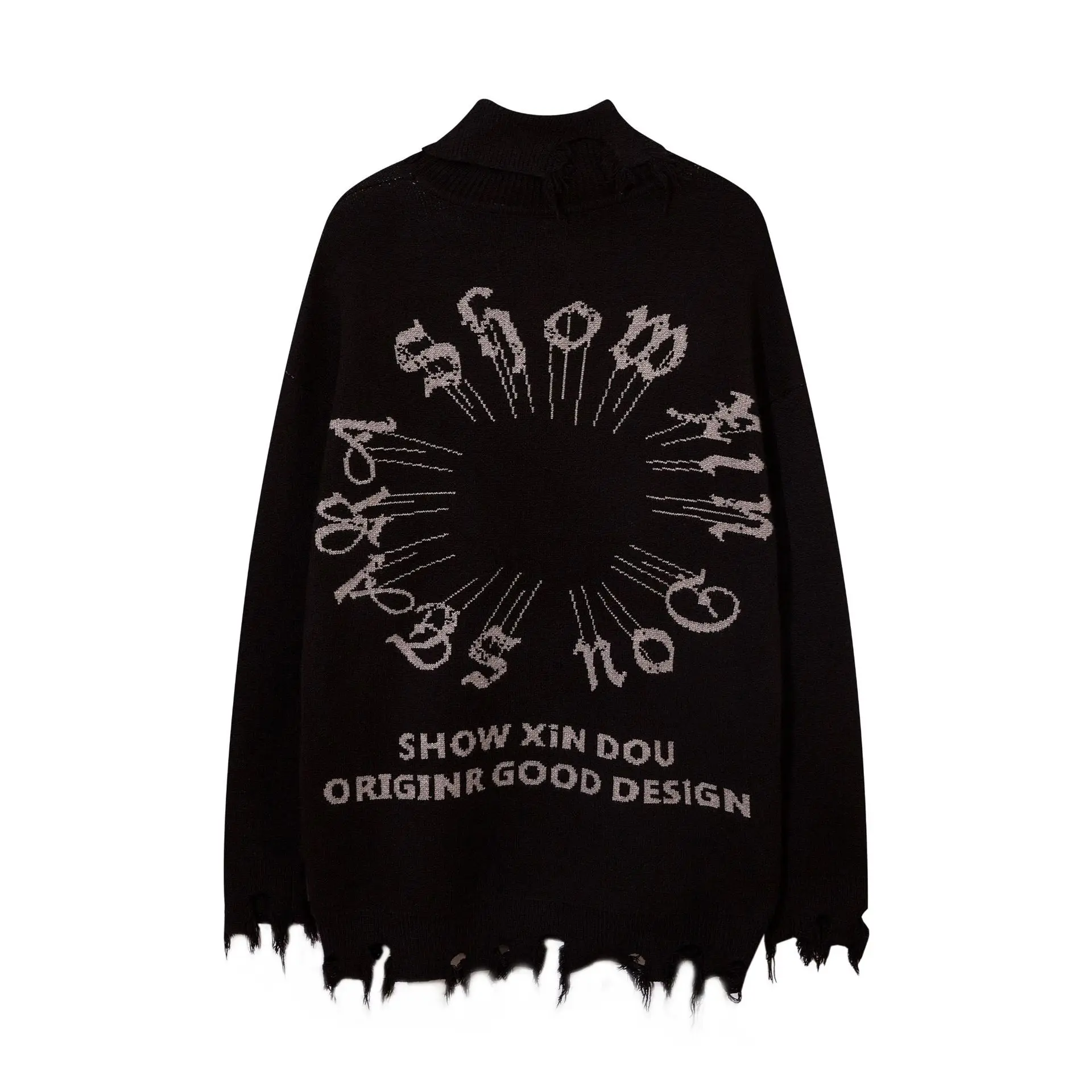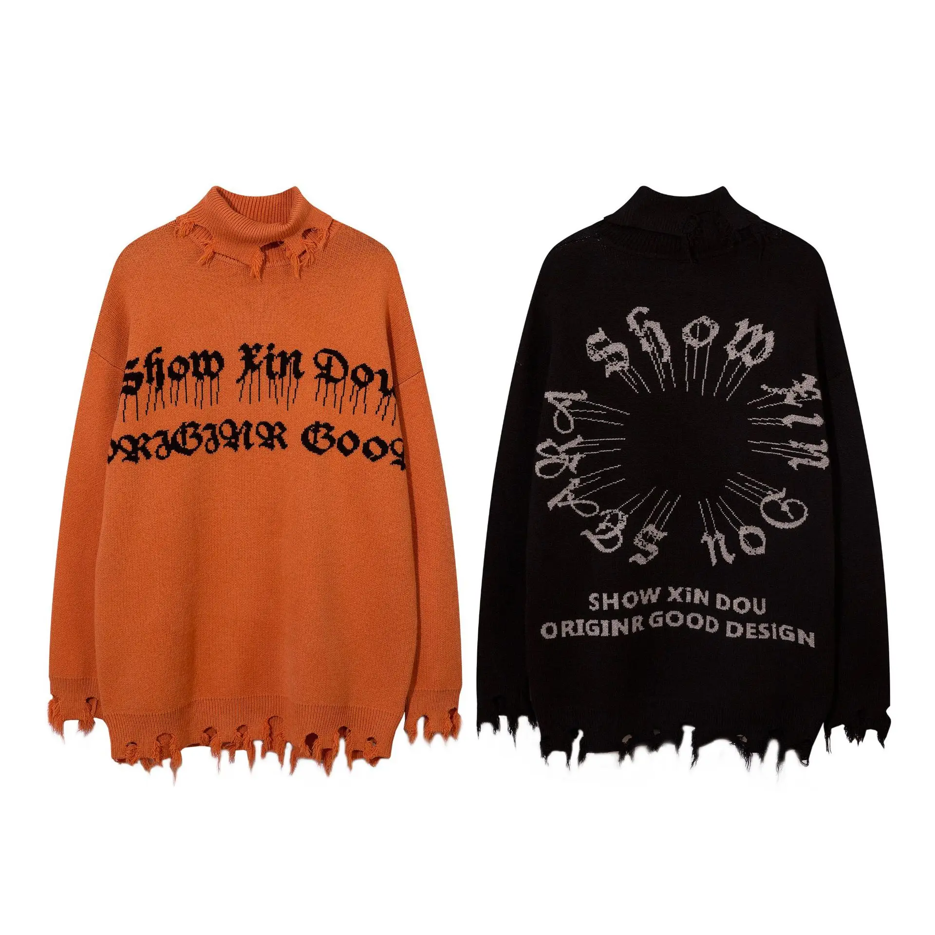 2024 Ripped Hole Hip Hop Punk Pullover Sweater Men Women Orange Black Gothic Vintage Turtleneck Knitwear