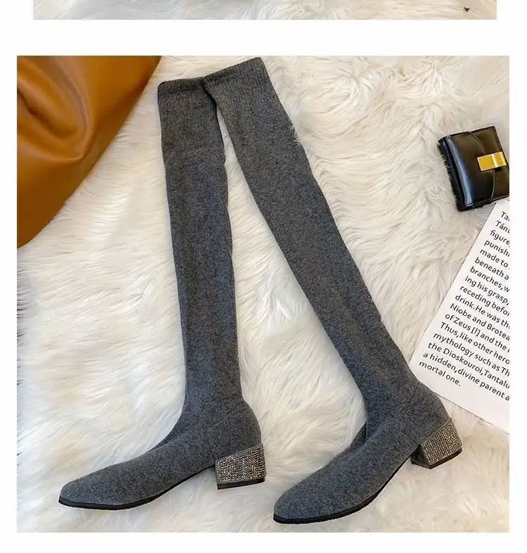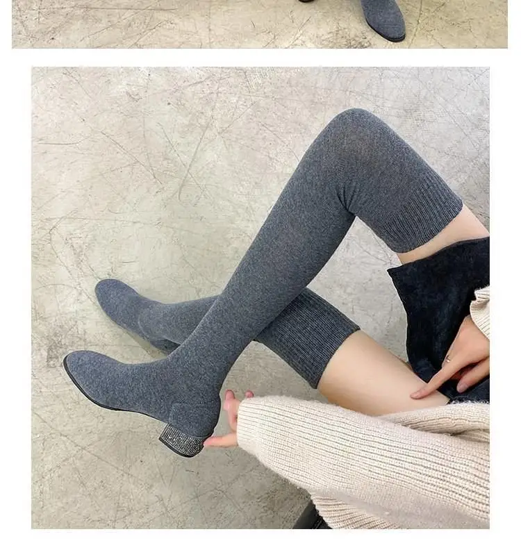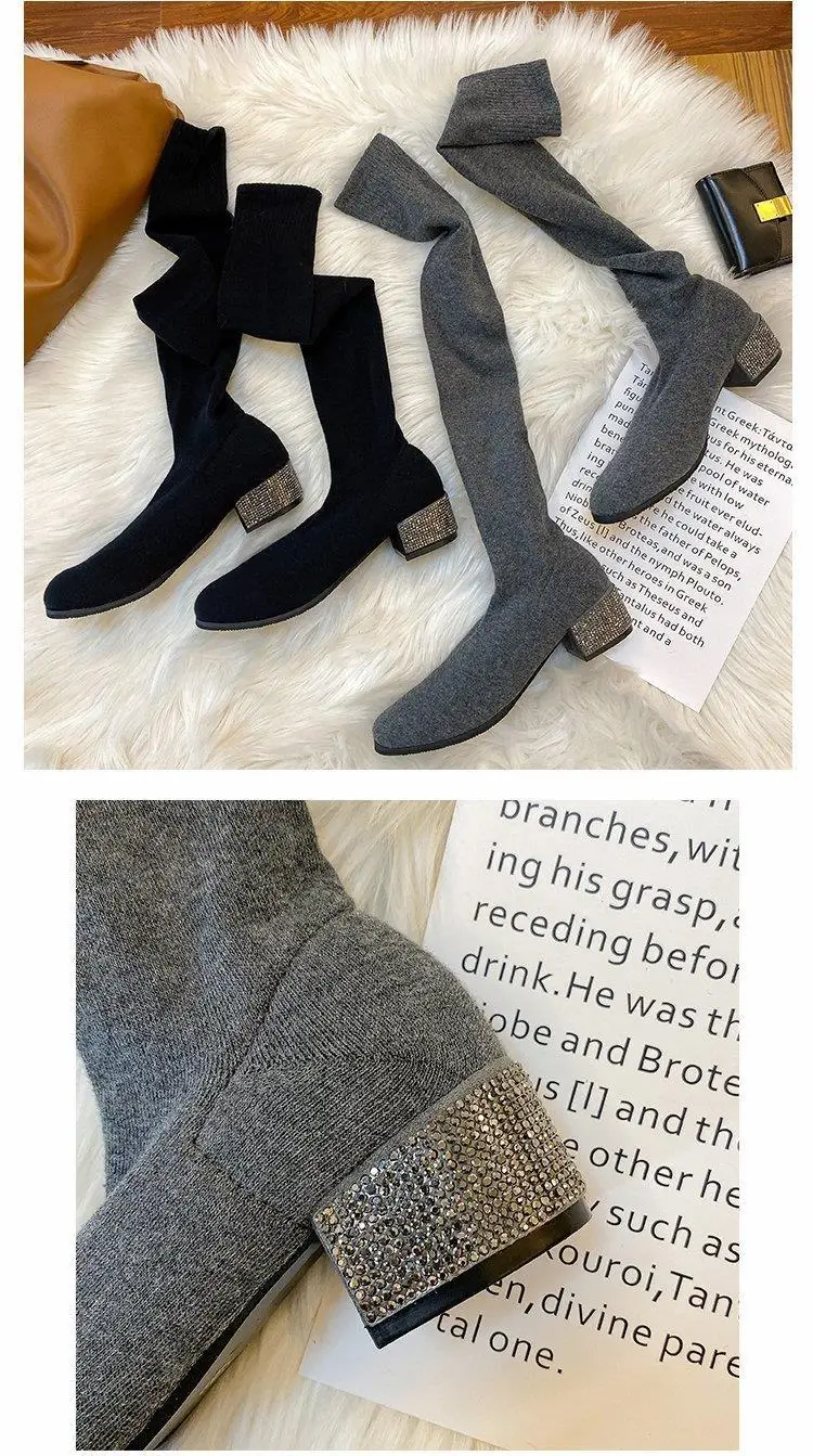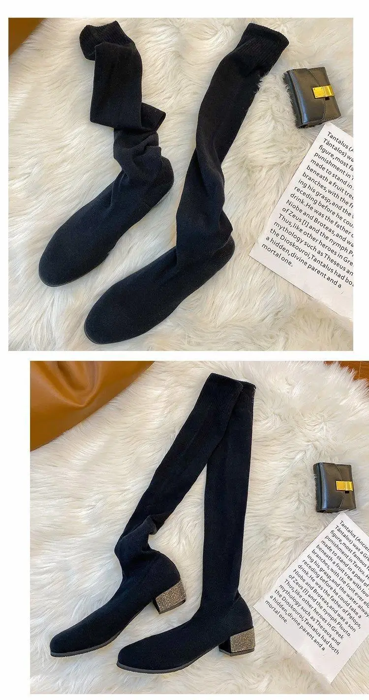 2024 Spring And Autumn Over Knee Women’s Boots Fashion Beautiful Elastic Woven Rhinestone With Round Head Long Boots Socks Boots