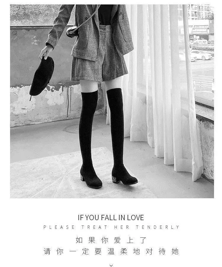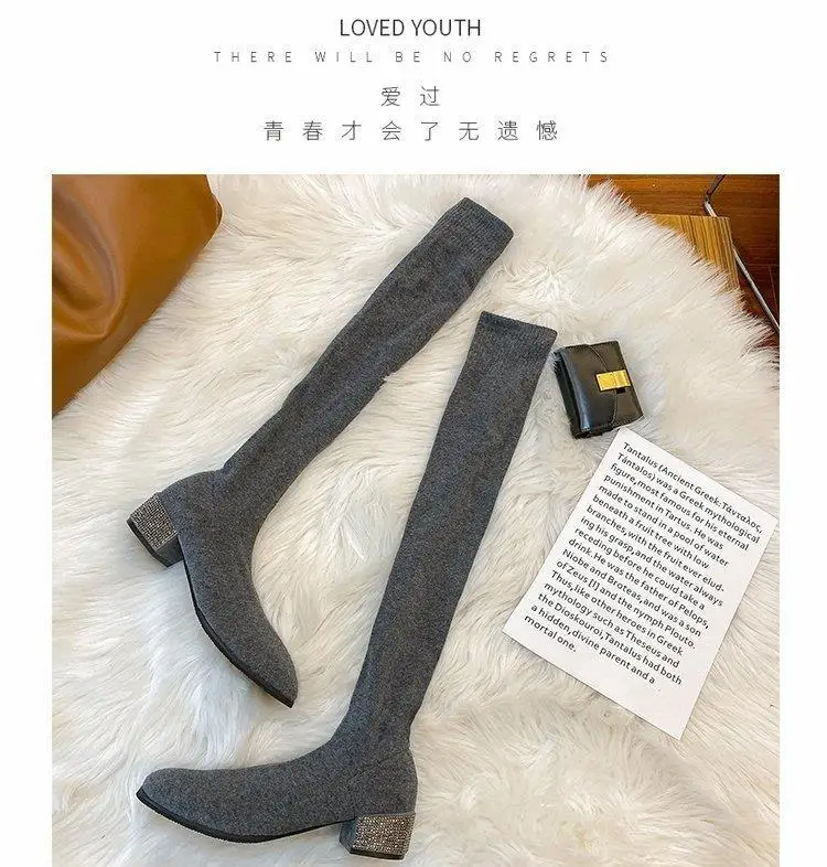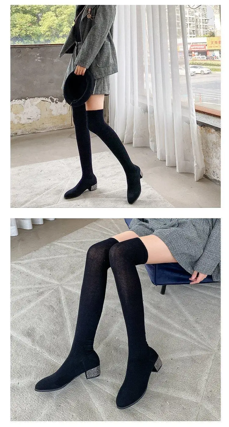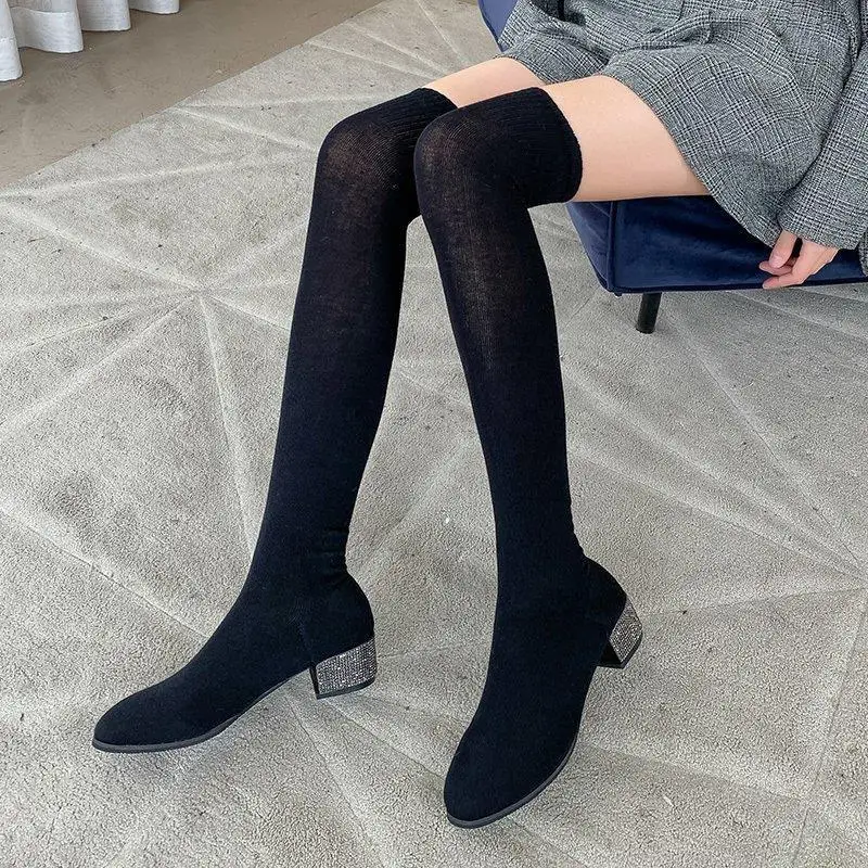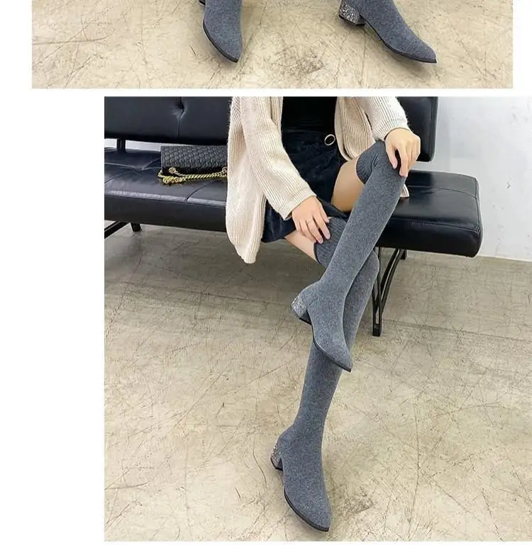 2024 Spring And Autumn Over Knee Women’s Boots Fashion Beautiful Elastic Woven Rhinestone With Round Head Long Boots Socks Boots