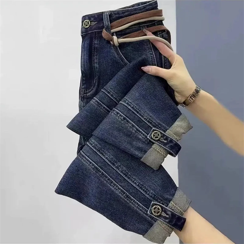 2024 Spring Autumn New High Waist Comfortable Women Jeans Loose Fit Stretch Haren Denim Pants Ladies Temperament Jeans Pants