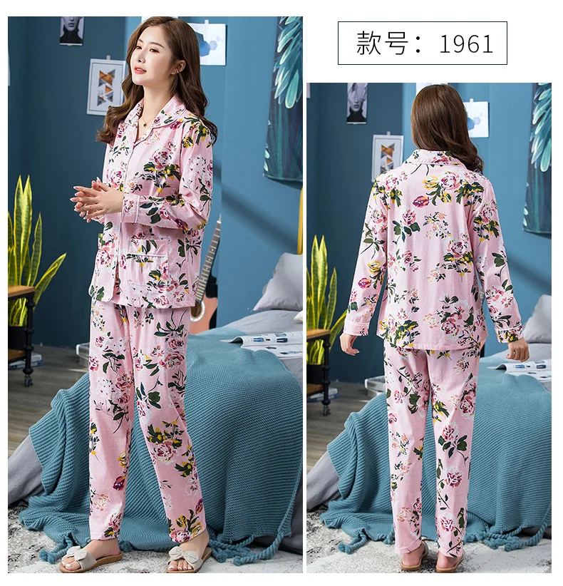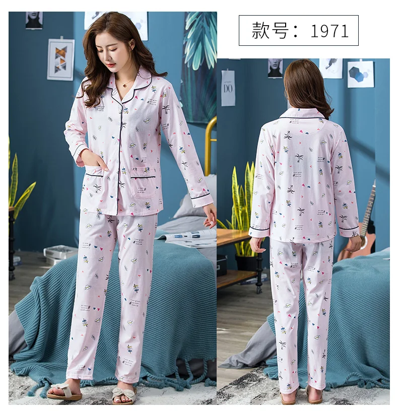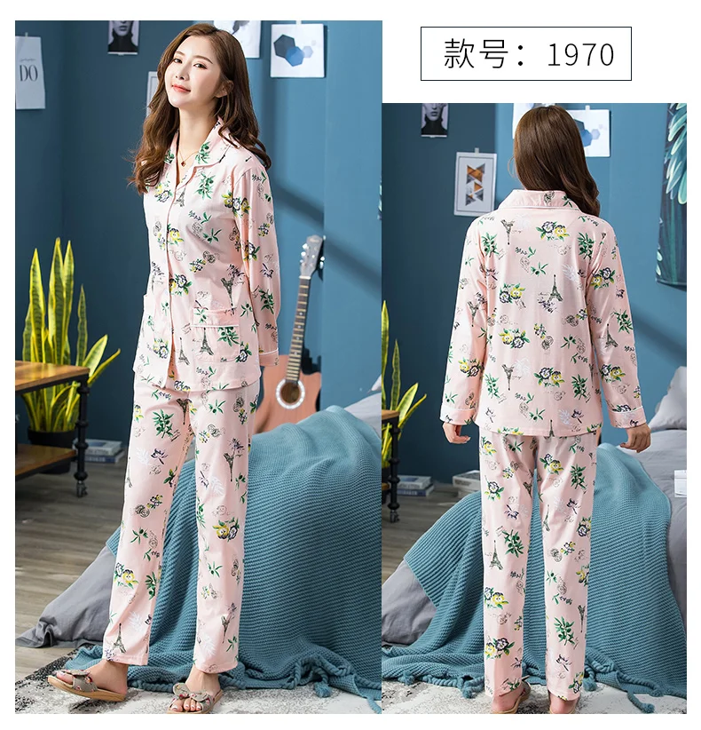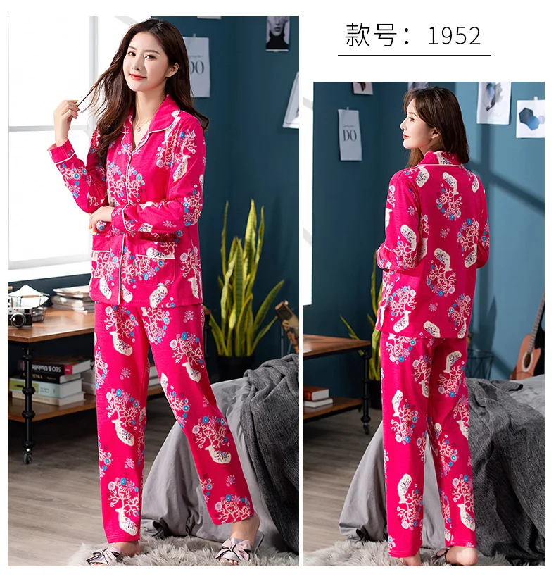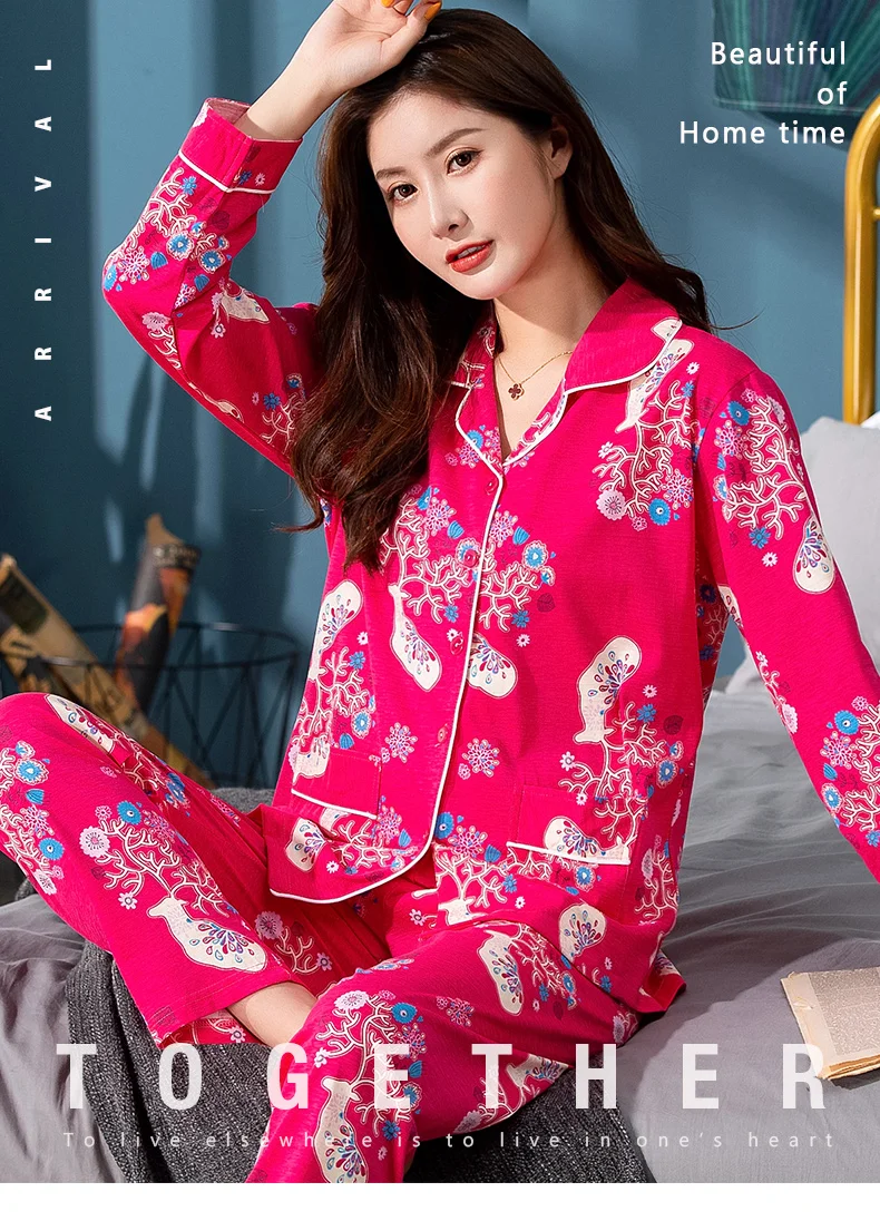 2024 Spring Long Sleeved Women Pajamas Set Fashion Print Homewear Leisure Clothes Women Long Pants Pyjamas Sets Cotton Nightwear