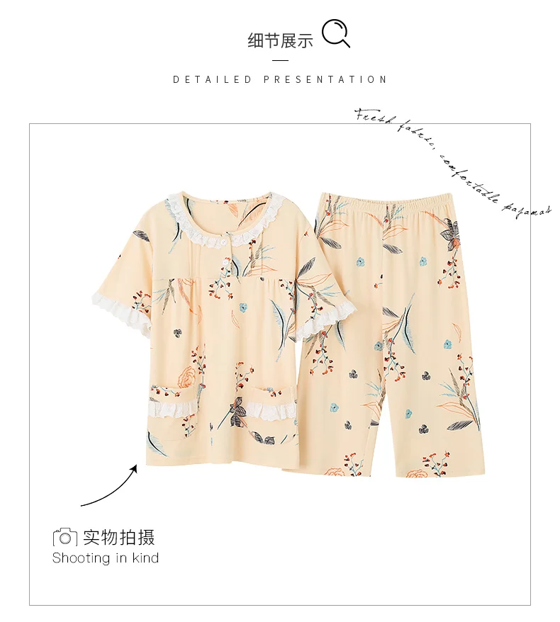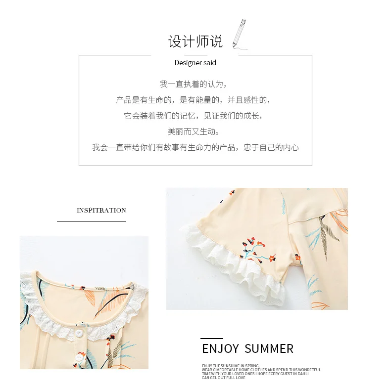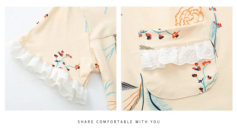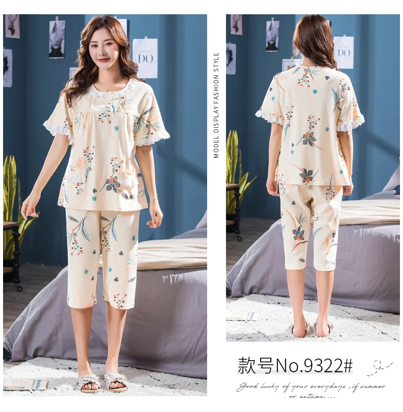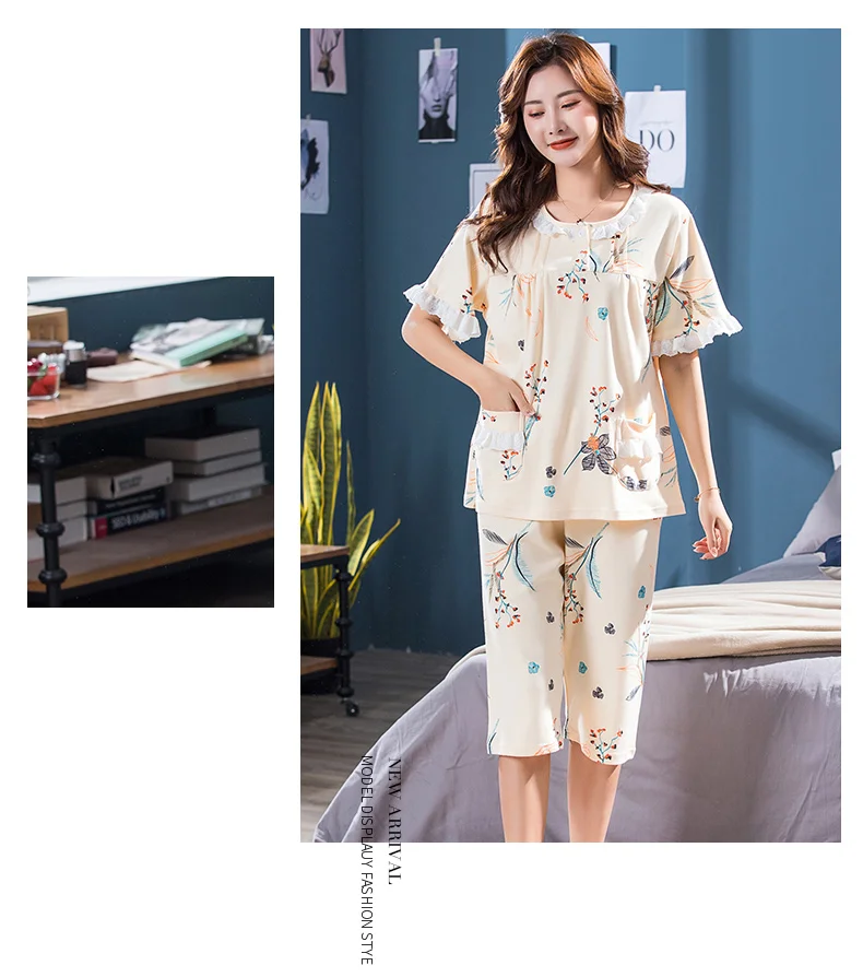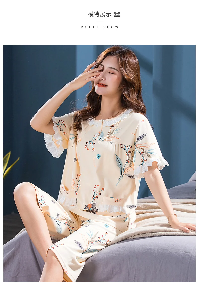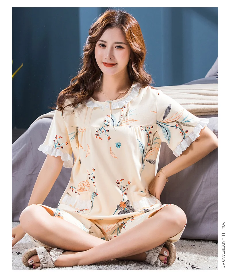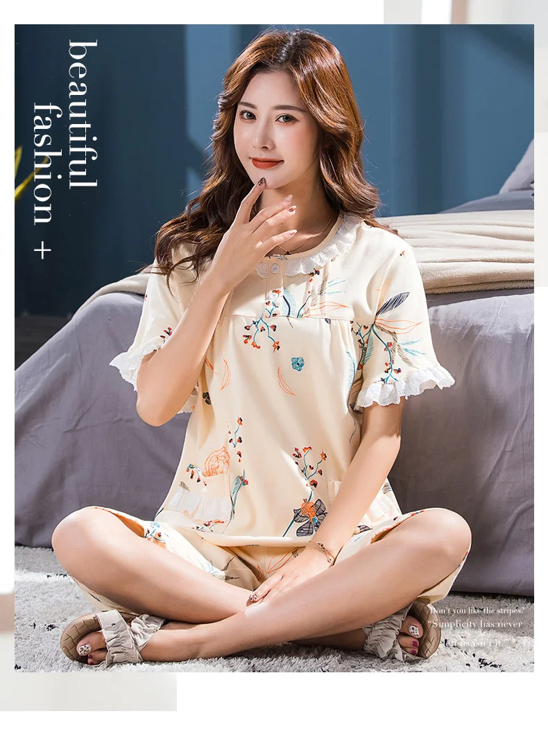 2024 Summer New Arrival Fashion Pajamas With Floral Print For Women Full Pure Cotton Loose And Comfort Good Quality Pajamas Sets