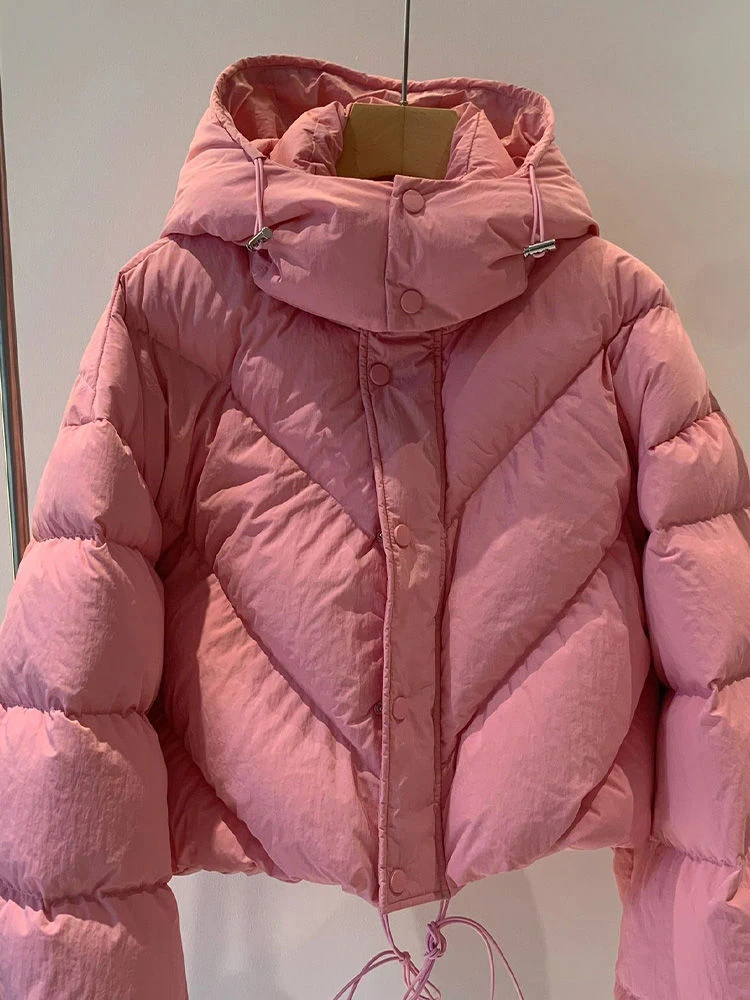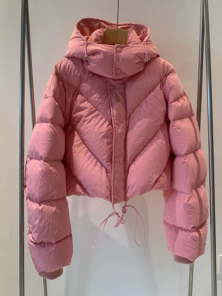 2024 Winter Short Parkas Women Thicken Casual Winter Hooded Coat Korean Style Solid Hooded Coat Outwear