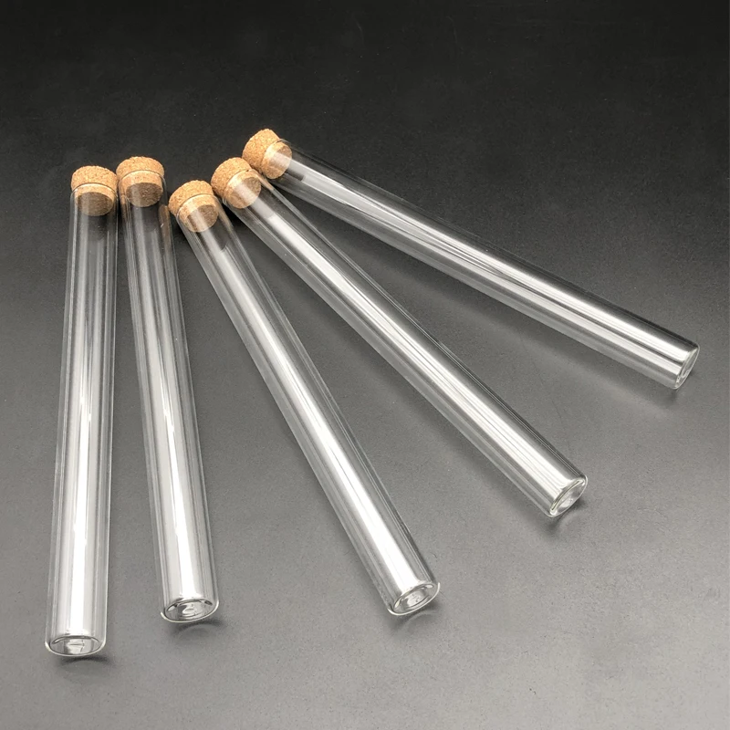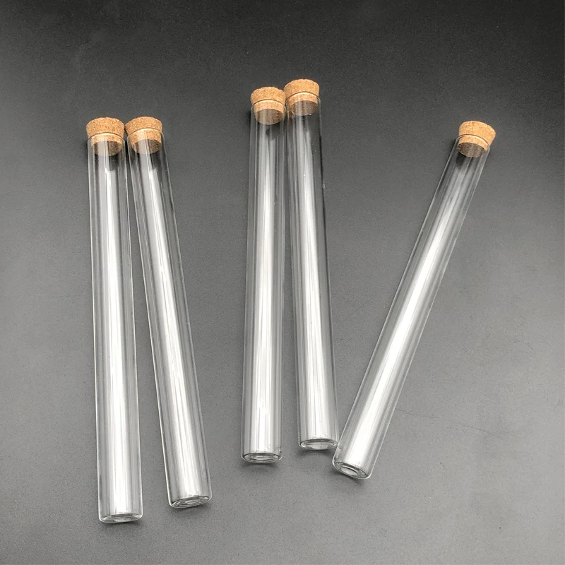 20pcs/Pack 15x150mm Lab Transparent Flat Bottom Glass Test Tubes With Cork Wooden Stoppers for Laboratory Container