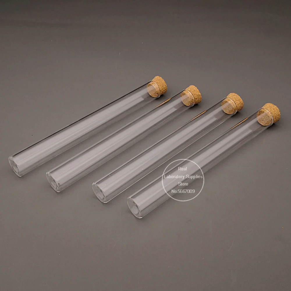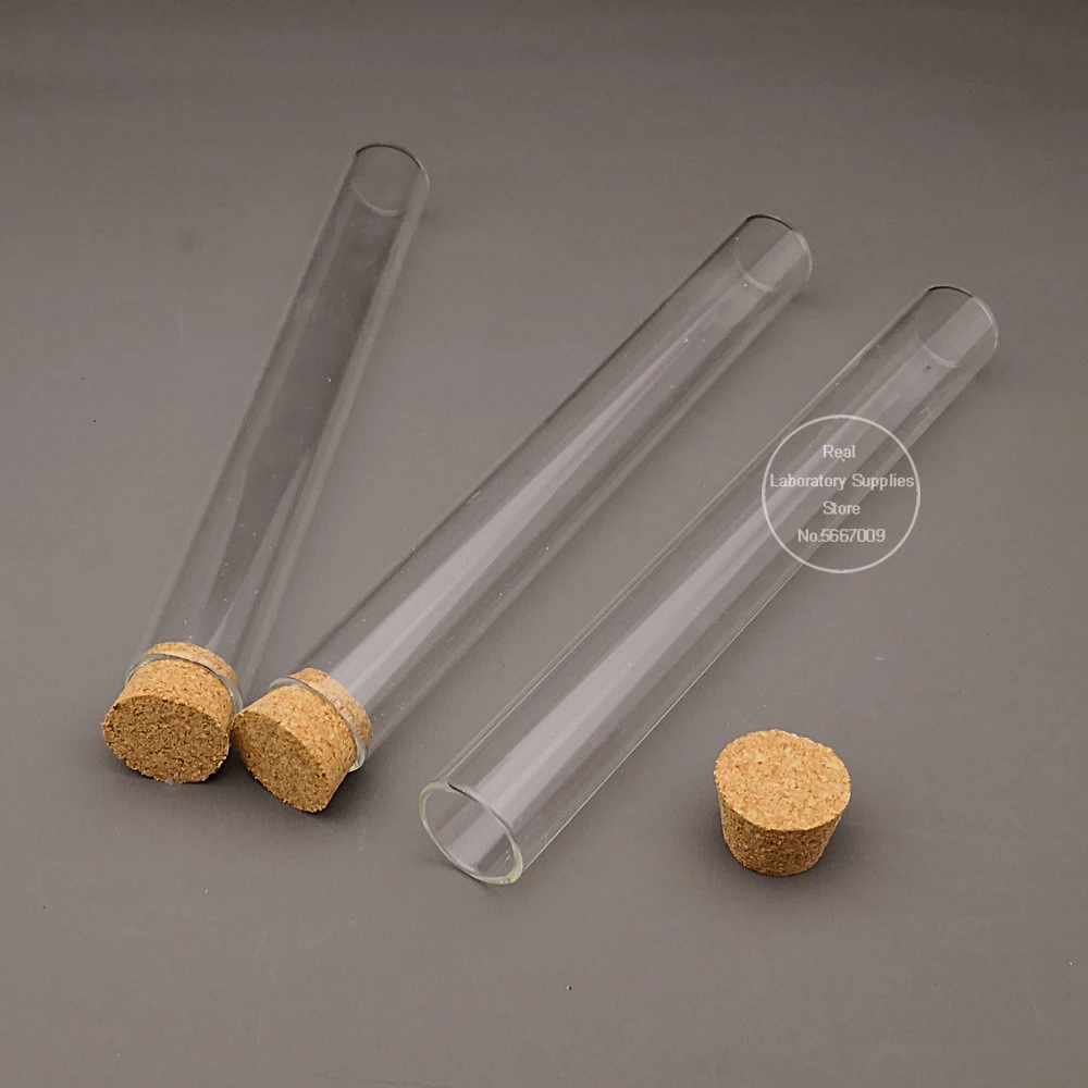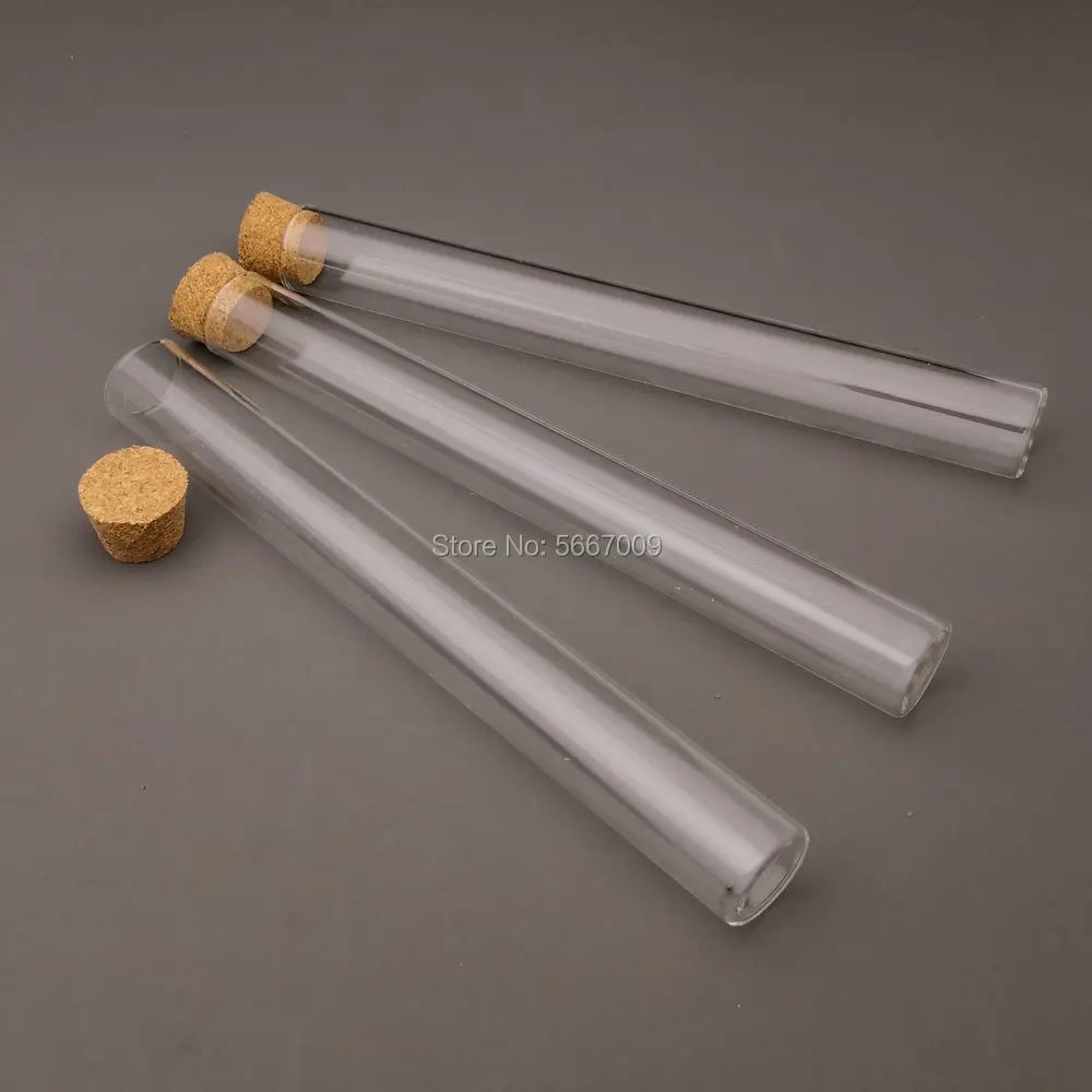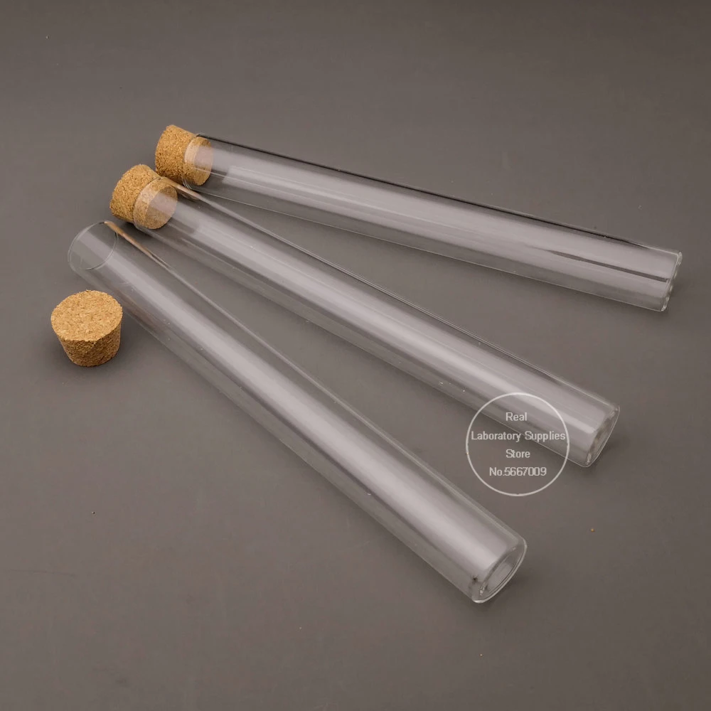 20pcs/pack Lab 18x150mm clear Flat Bottom Glass Test Tubes With Cork Wooden Stoppers for Laboratory Container