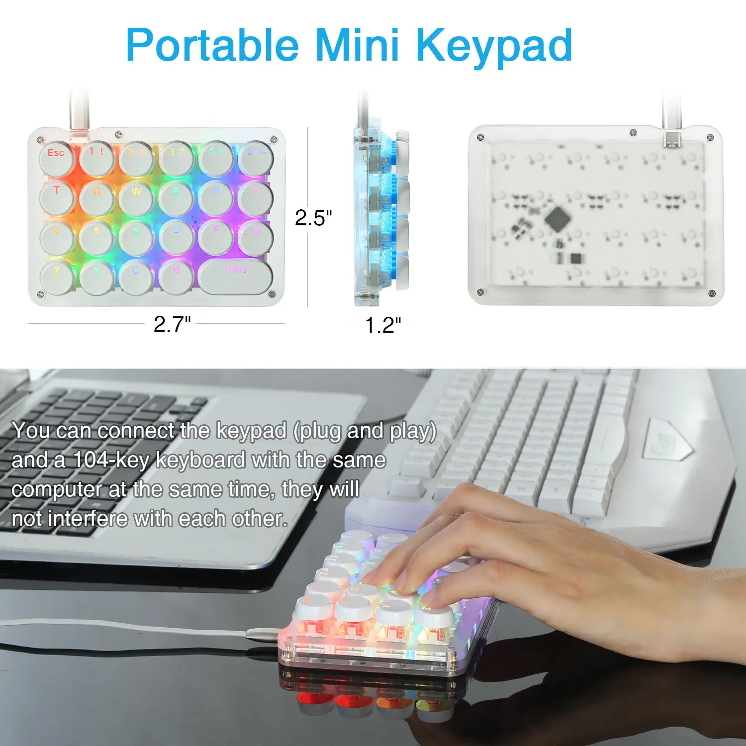 【Portable Mini Keypad】Portable Mini keypad,5″x 3.5″ x 1.2″ ultra-small size, effectively saves desktop space. Detachable USB cable. You can connect the keypad (plug and play) and a 104-key keyboard with the same computer at the same time, they will not interfere with each other.