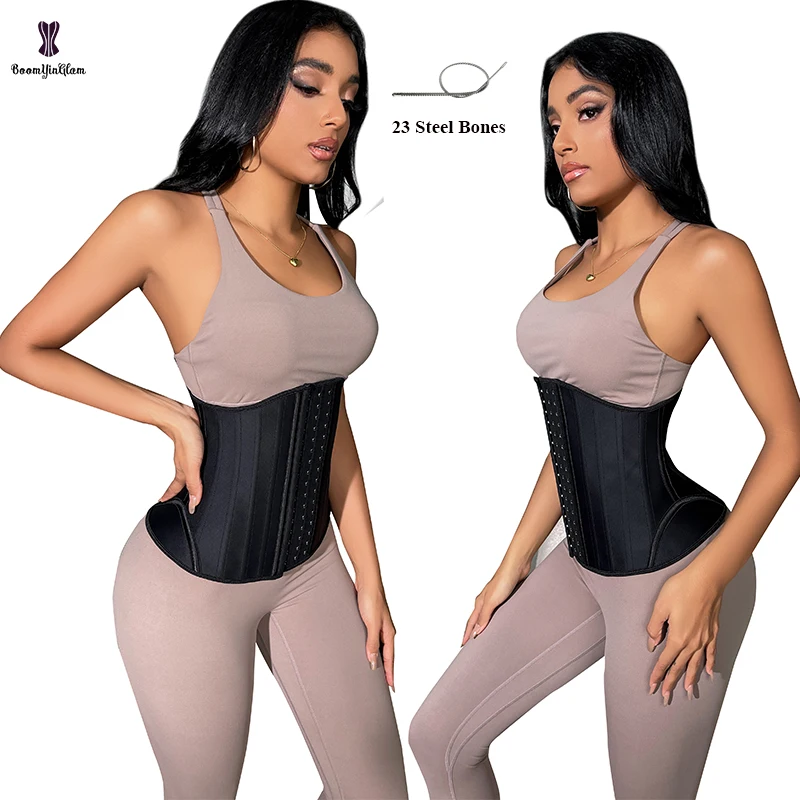 23 Steel Boned Waist Trainer 3 Hooks Waist Cincher Girdle Latex Rubber Super Tight Instant Hourglass Plus Size Low-Cut Corset