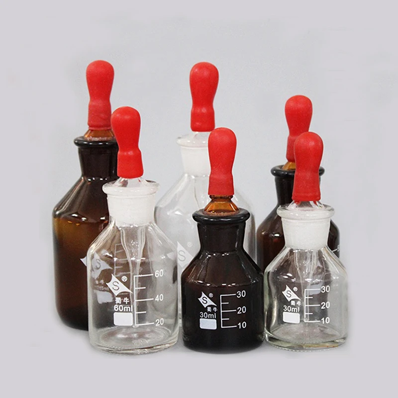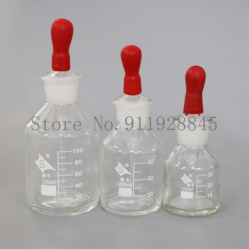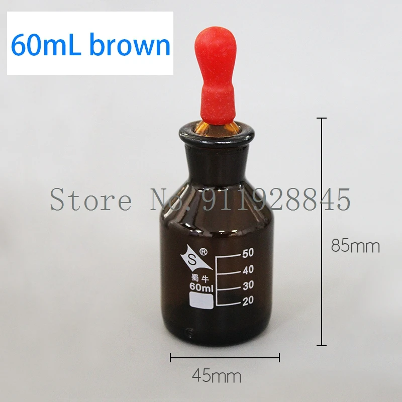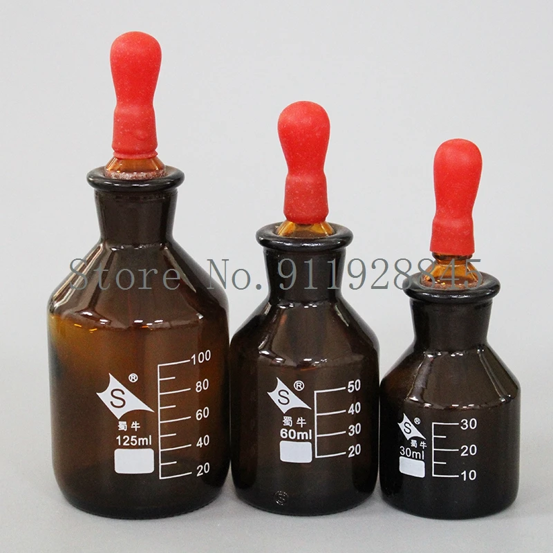 2pcs/lot 30mL 60mL 125mL Lab White Brown Drop Bottle with Rubber Cap Graduated Dropper