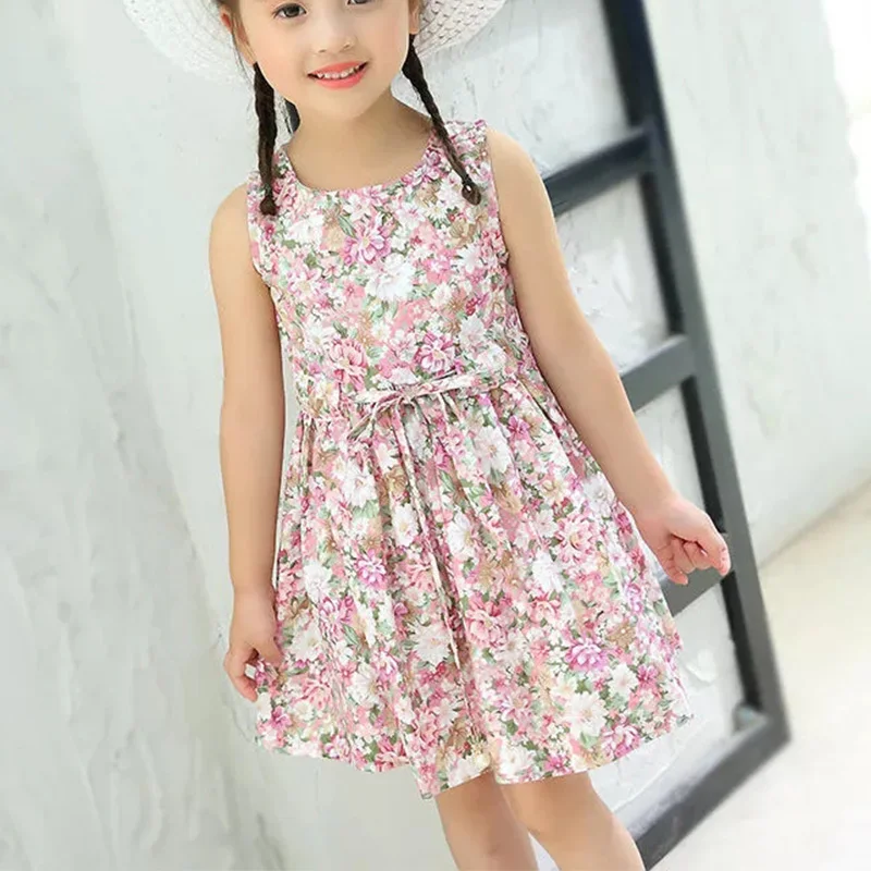 2PCS/Set Girls Dress +Hat Cotton Comfortable Children’s Dress 2021 Summer Dress Floral Girls’ Sleeveless Dress For Children